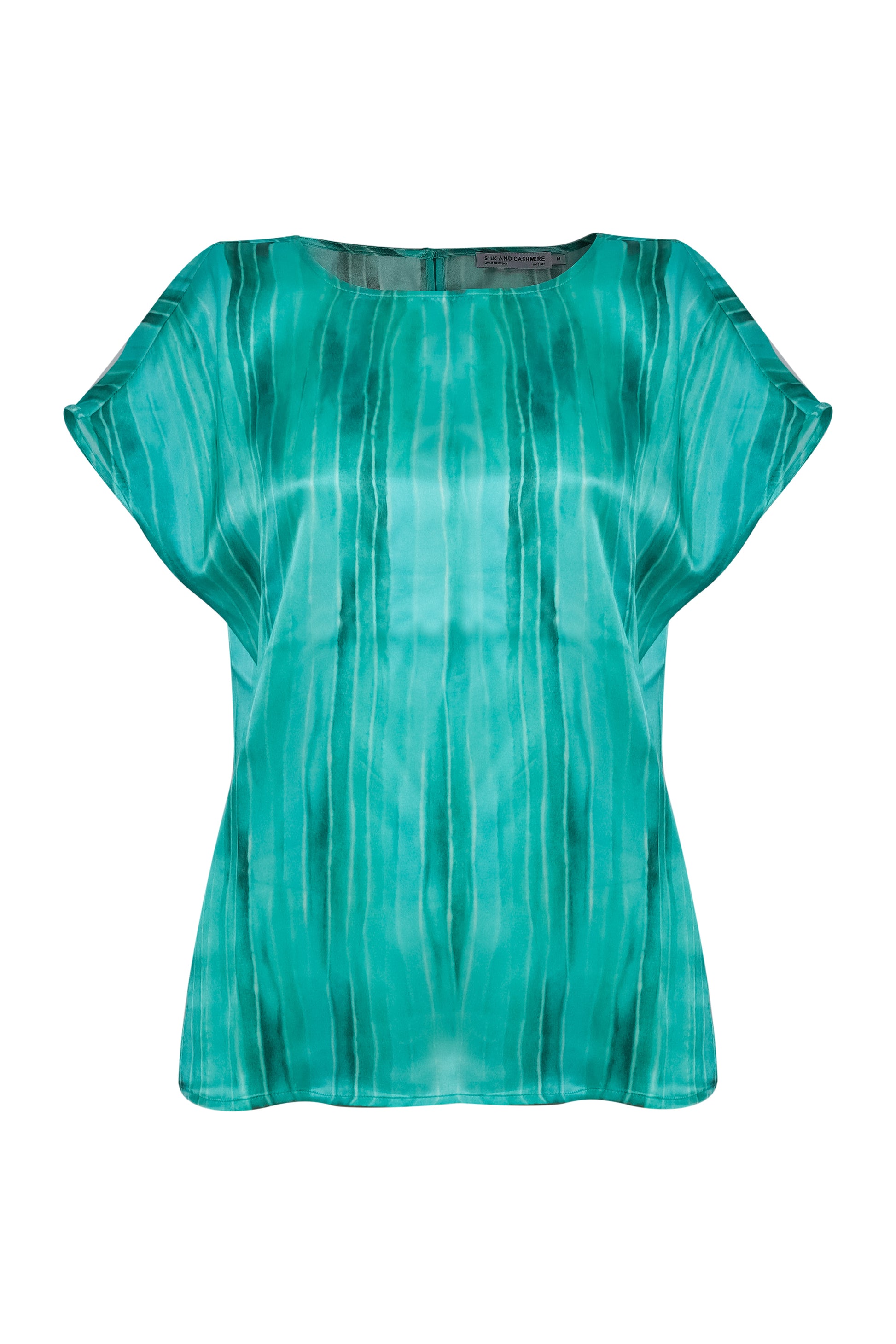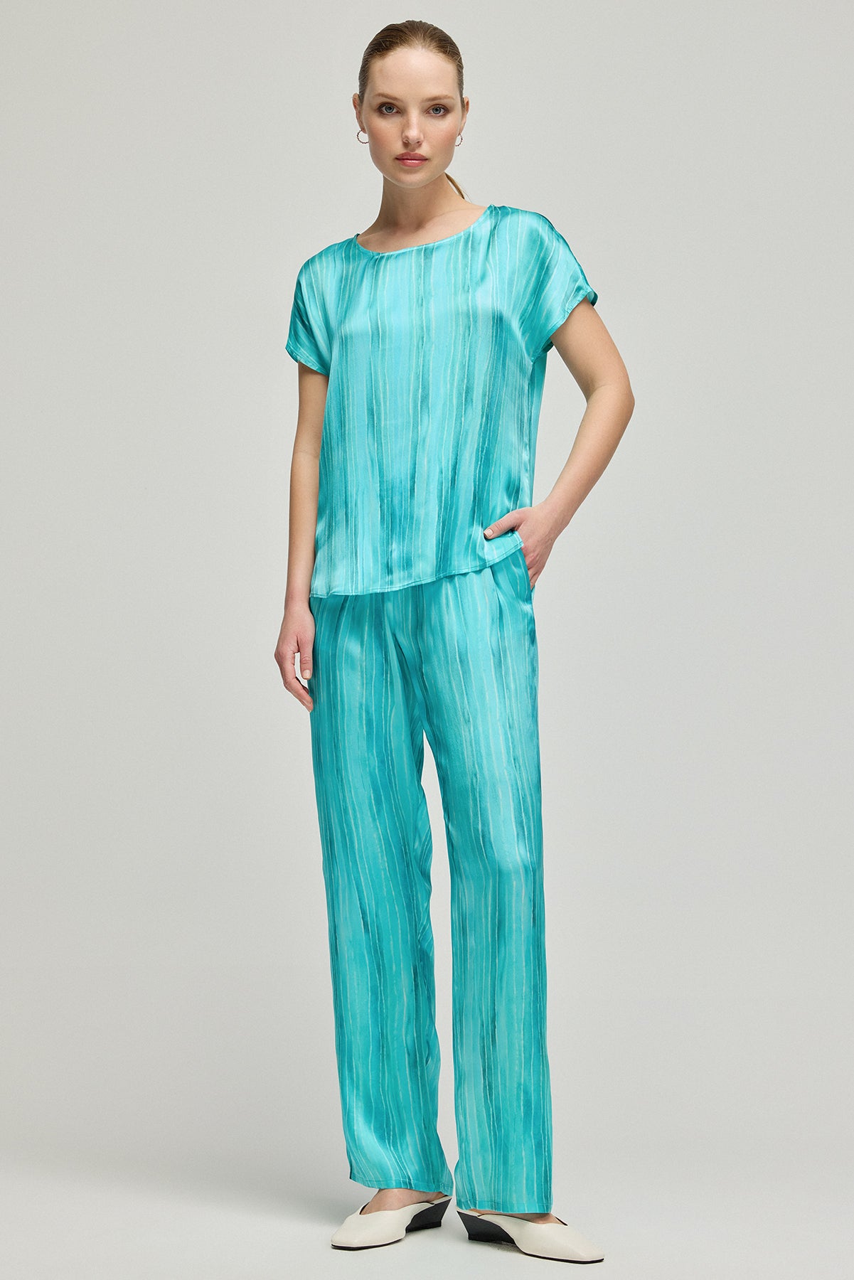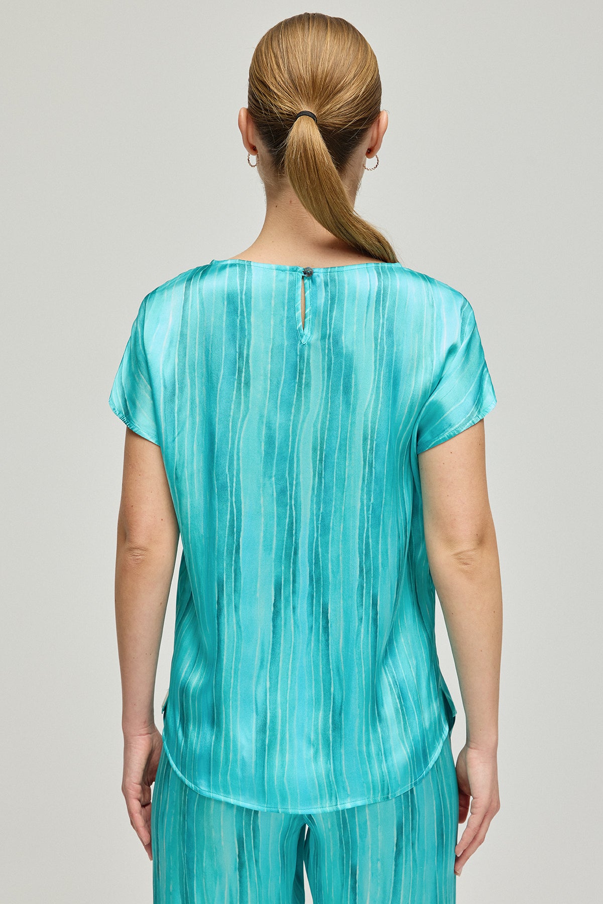 Aqua Nature İpek Desenli Yuvarlak Yaka Kısa Kollu Bluz