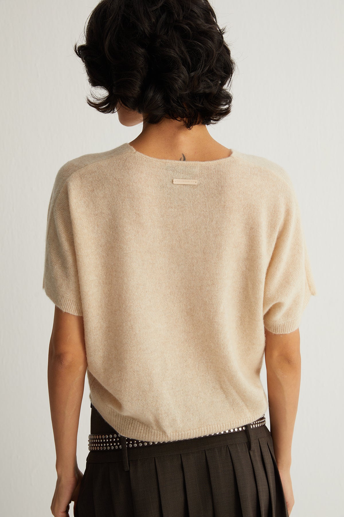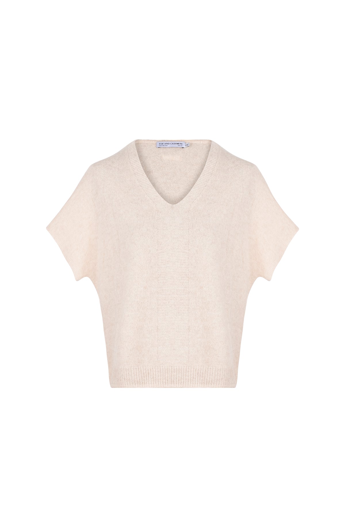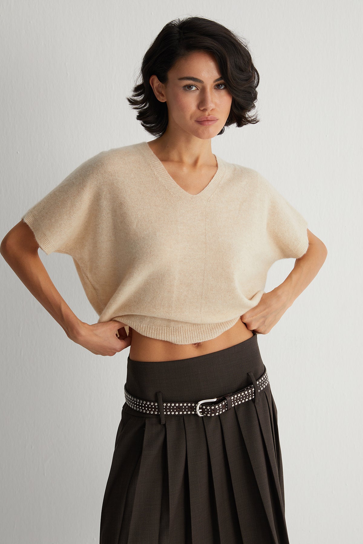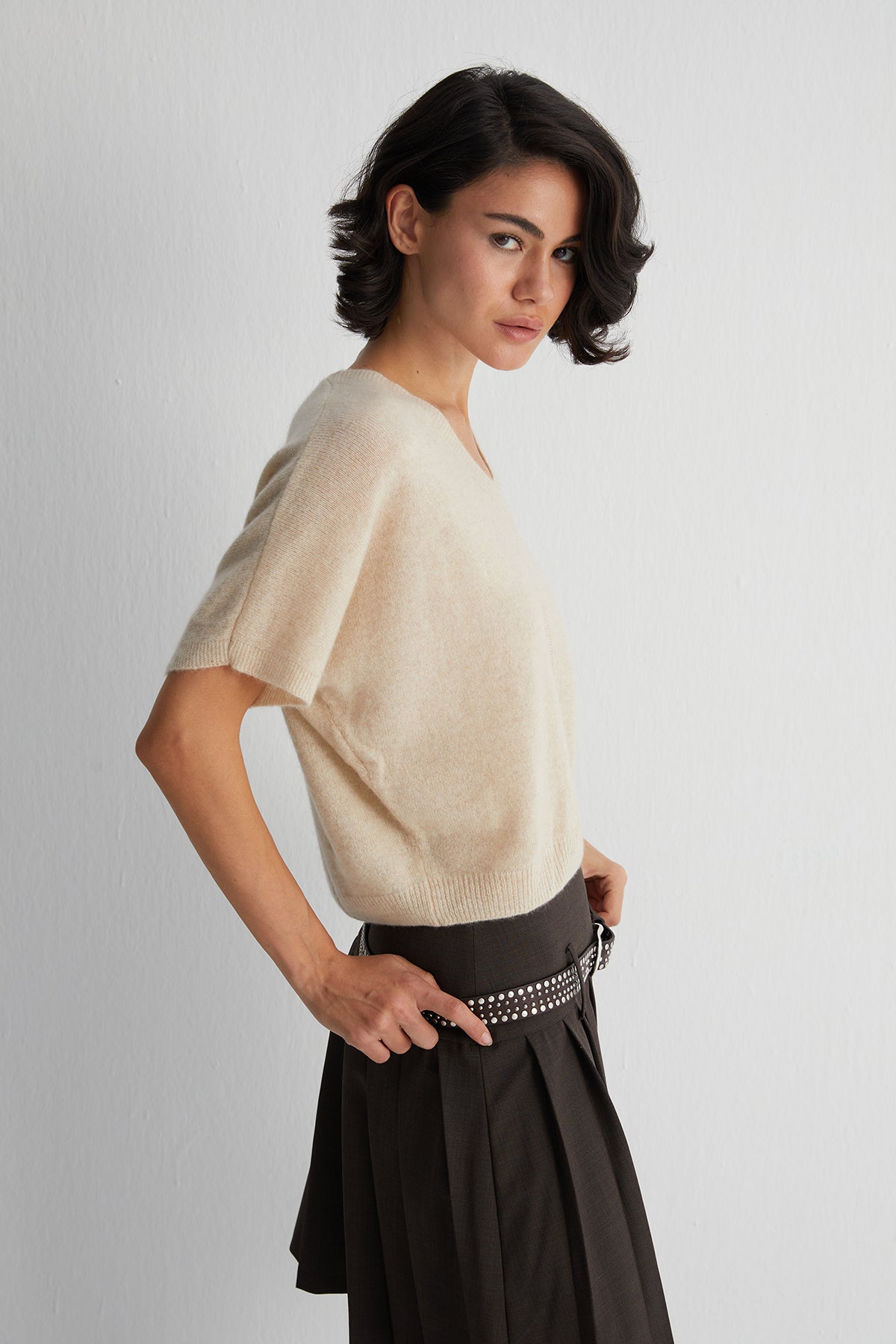 Bej Alexia Saf Kaşmir V Yaka Kısa kollu Triko
