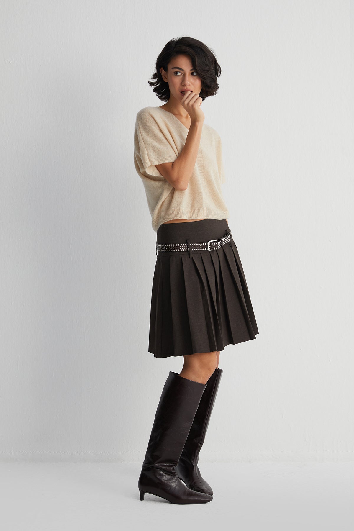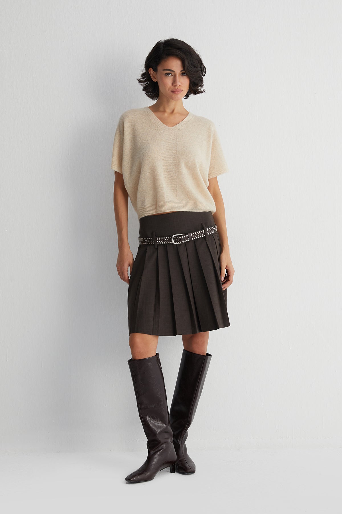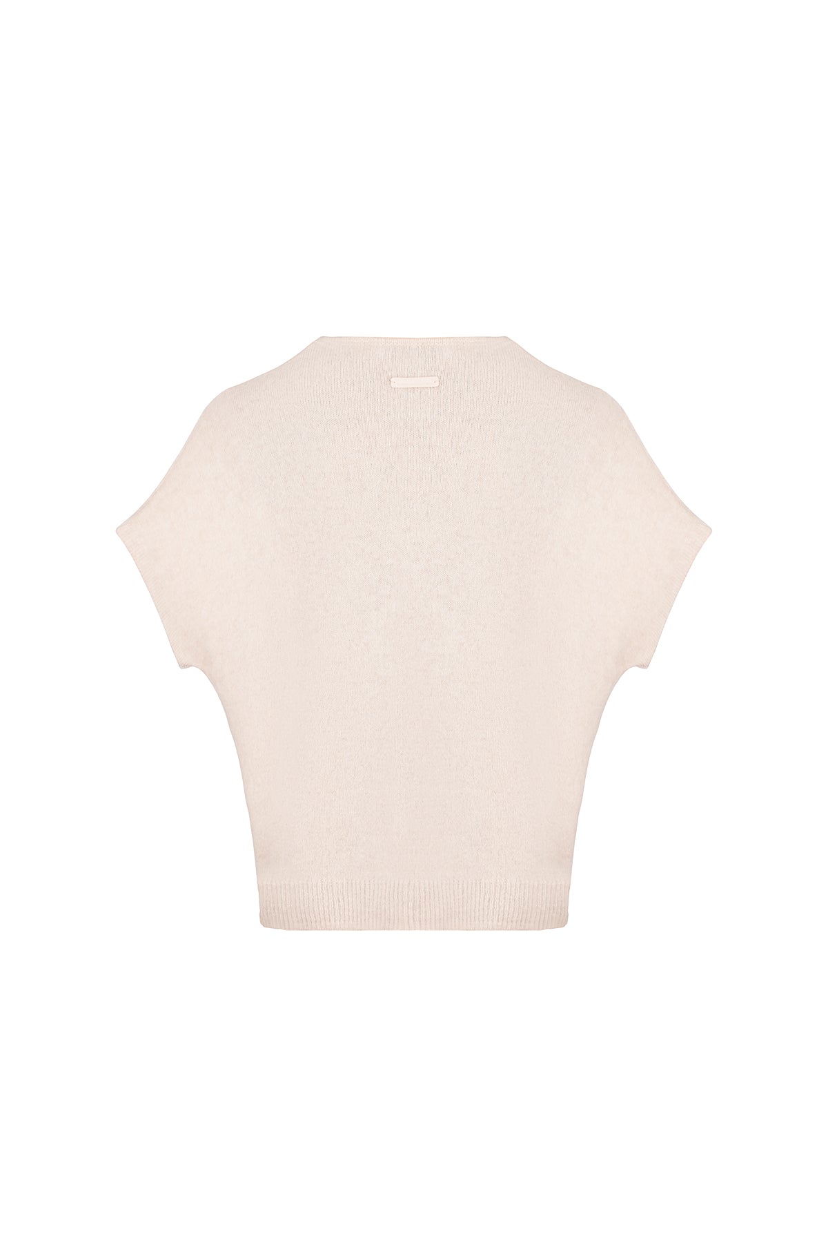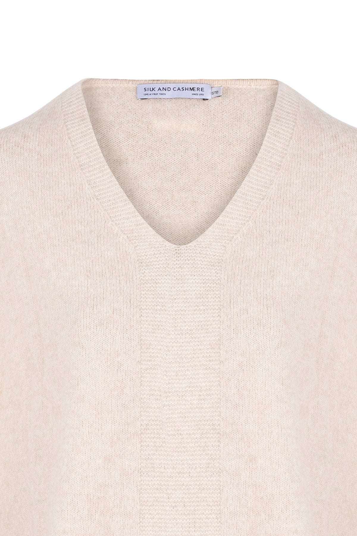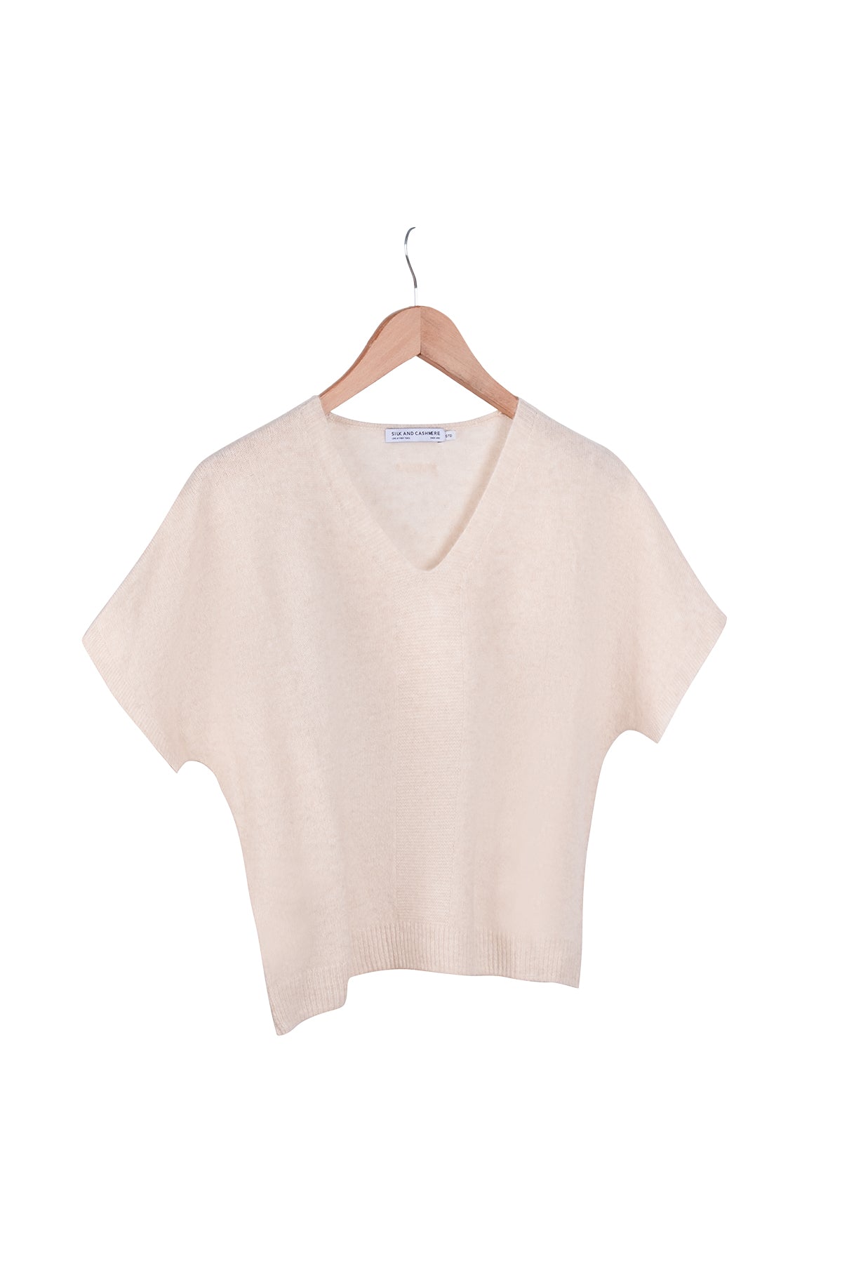 Bej Alexia Saf Kaşmir V Yaka Kısa kollu Triko