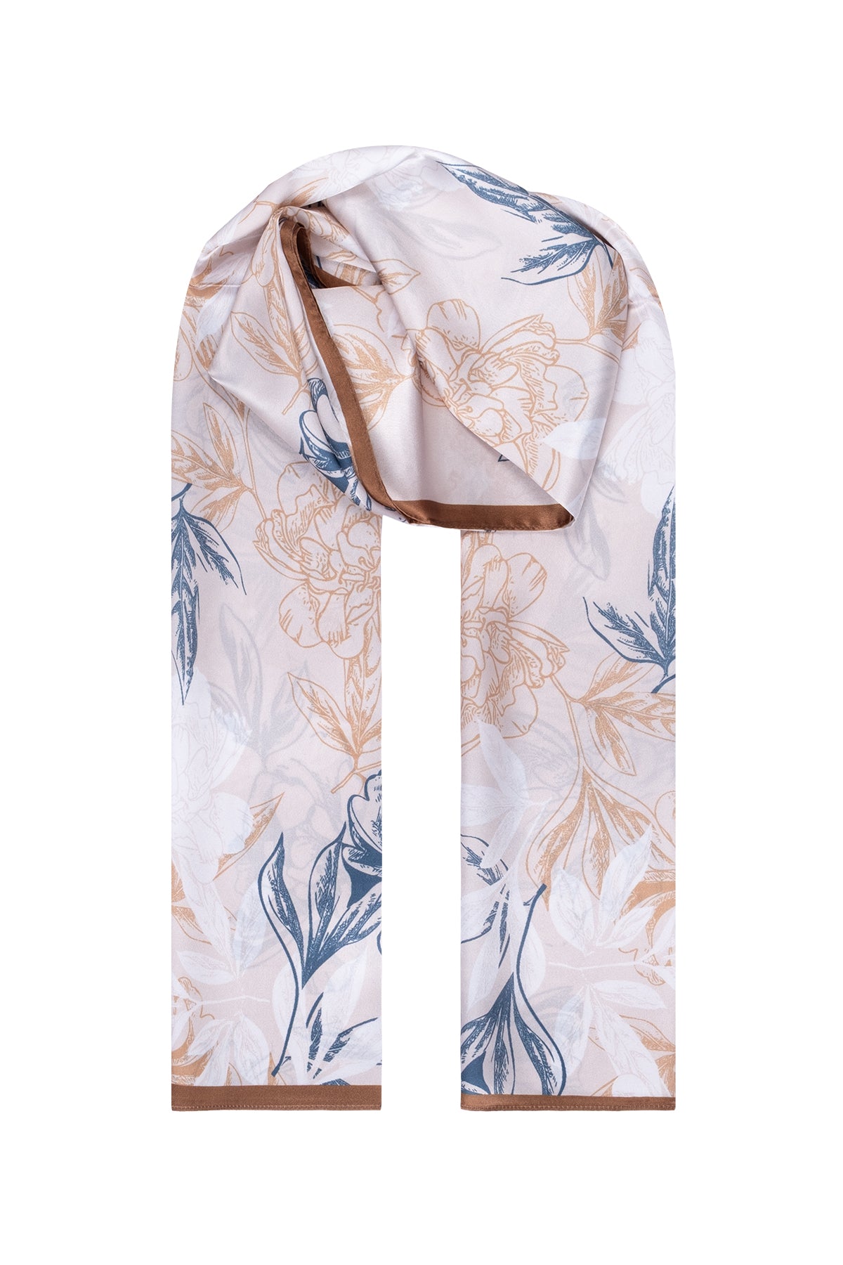 Bej Beyaz Luciana İpek Desenli Fular 55x170 cm