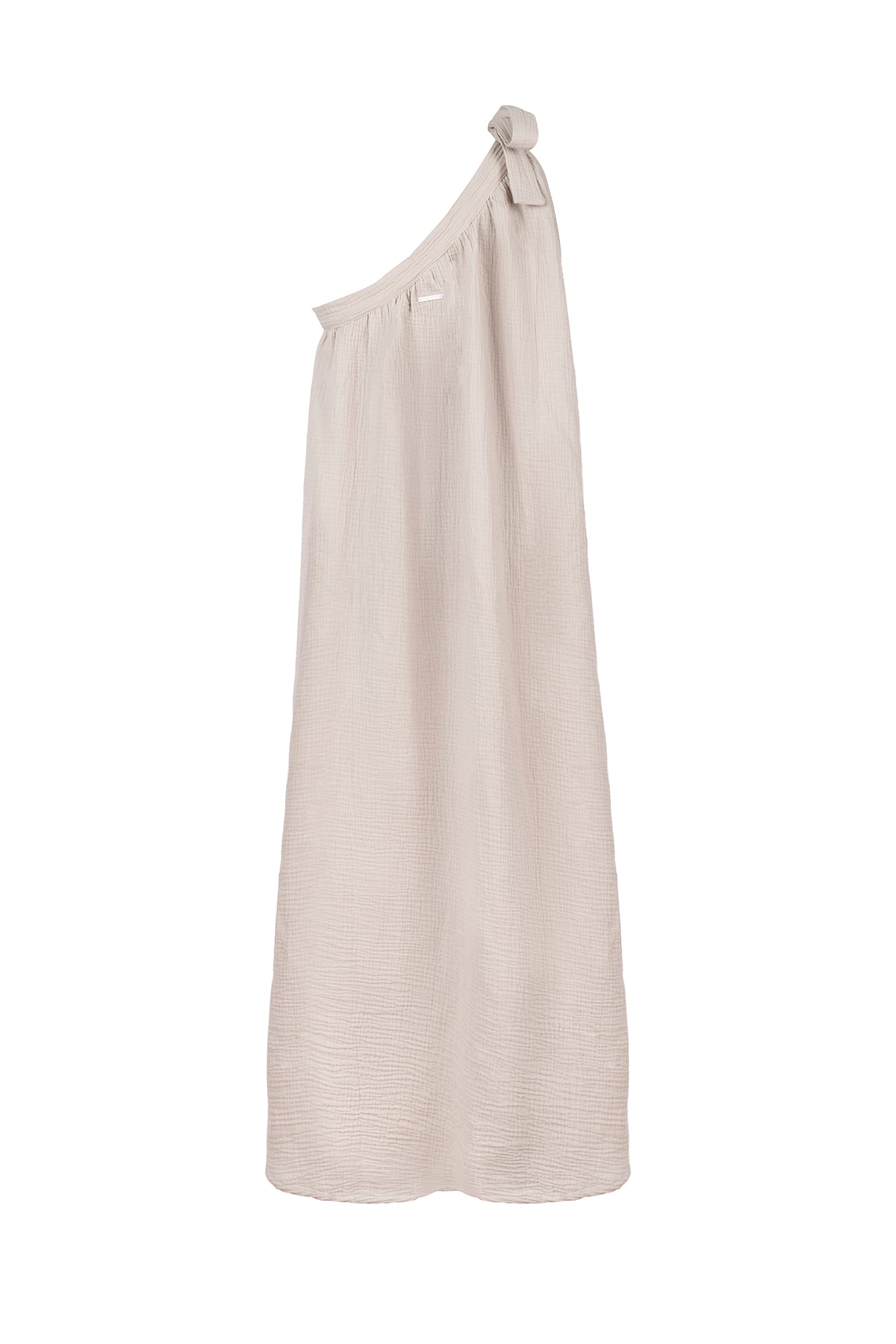 Bağlamalı tek omuz detayı, tasarıma modern bir karakter kazandırır.