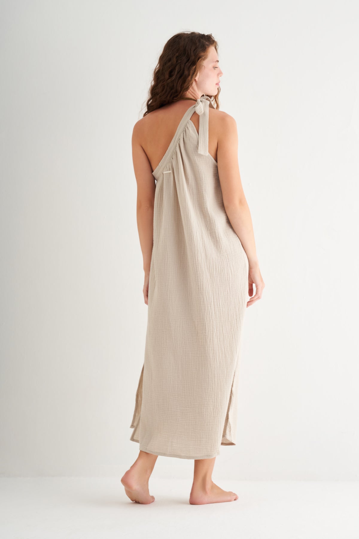 Doğal tonların zarif gücünü yansıtan Bej Cassandra Tek Omuz Elbise, yalın ve etkileyici duruşuyla sıcak günlerin vazgeçilmezi olmaya aday. Hafif dokusu ve tek omuzdan bağlamalı detayları, hem konfor hem de stil arayanlar için dengeli bir seçim sunar.