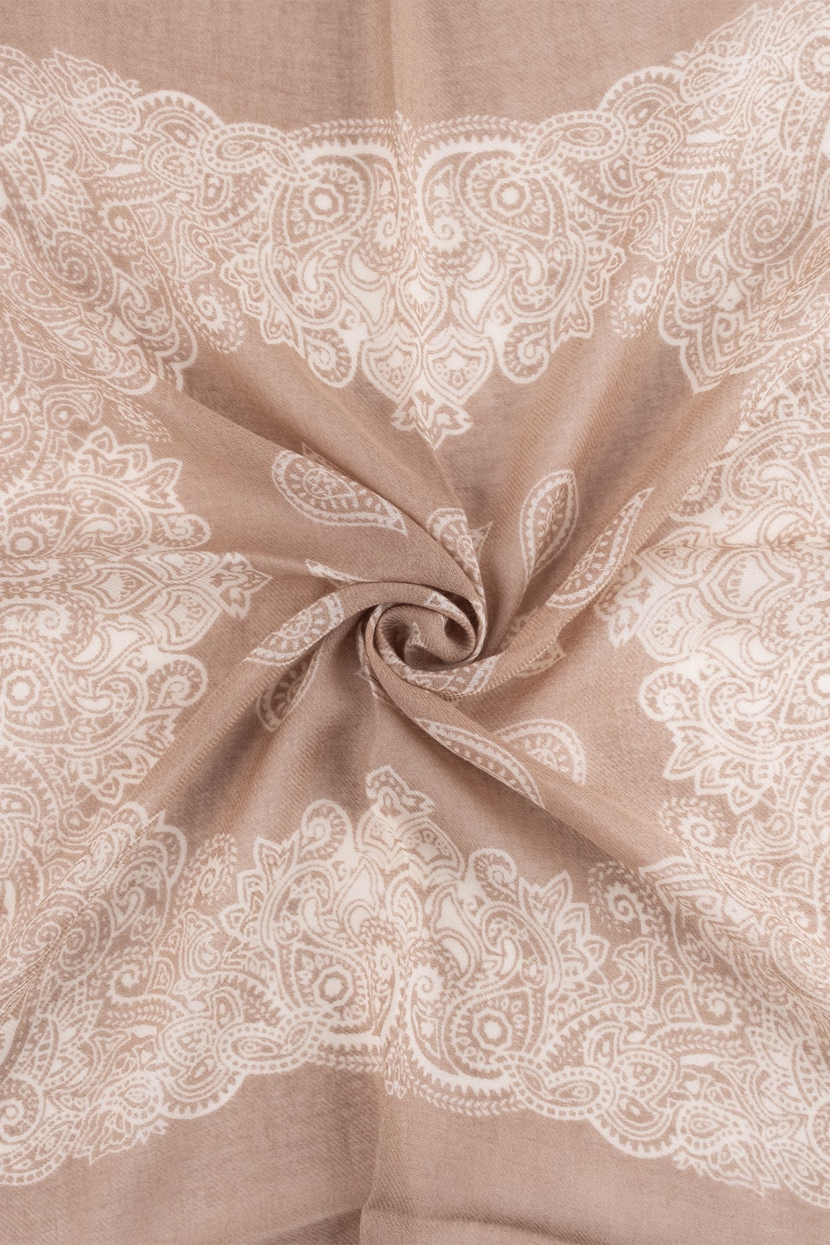 Gelenekten ilham alan desenlerle çağdaş bir ifade sunan bu kare şal, ipek ve yün katkısıyla doğallık ve hafifliği buluşturur. Boyunda, saçta veya çantanıza bağlı bir aksesuarda zarif bir dokunuş olarak yer bulur; her kombinasyonda kendi kimliğini yansıtır.