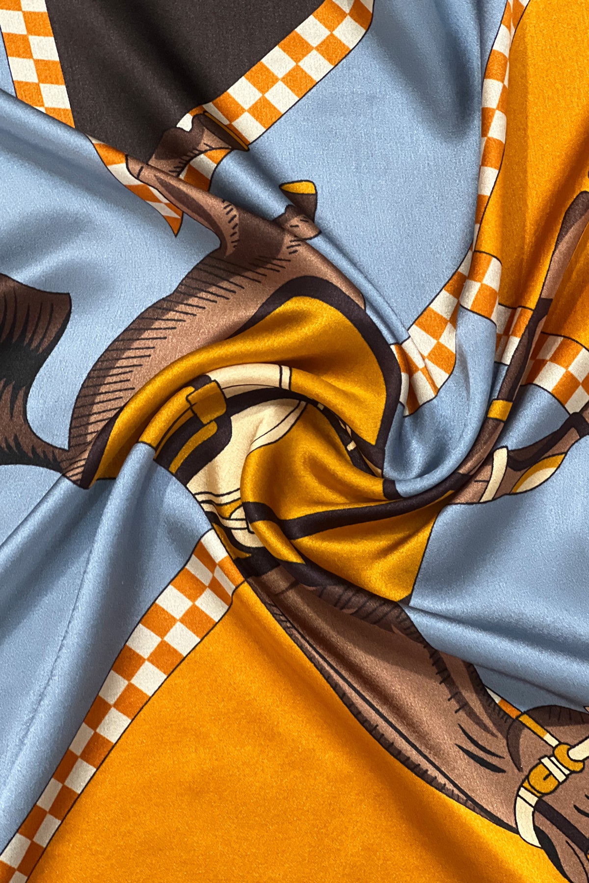 Bej Laila İpek Eşarp, antik Roma'nın asaletini çağdaş bir estetikle harmanlayarak sunuyor. Bu küçük eşarp, bej tonlarında ipeksi bir zemin üzerine işlenmiş dinamik at figürleri ve dikkat çekici geometrik desenlerle bezenmiştir. Klasik ve zamansız bir şıklık arayanlar için mükemmel bir seçim olan bu aksesuar, %100 saf ipekten üretilmiştir ve dokusunun yumuşaklığı ile bilinir.