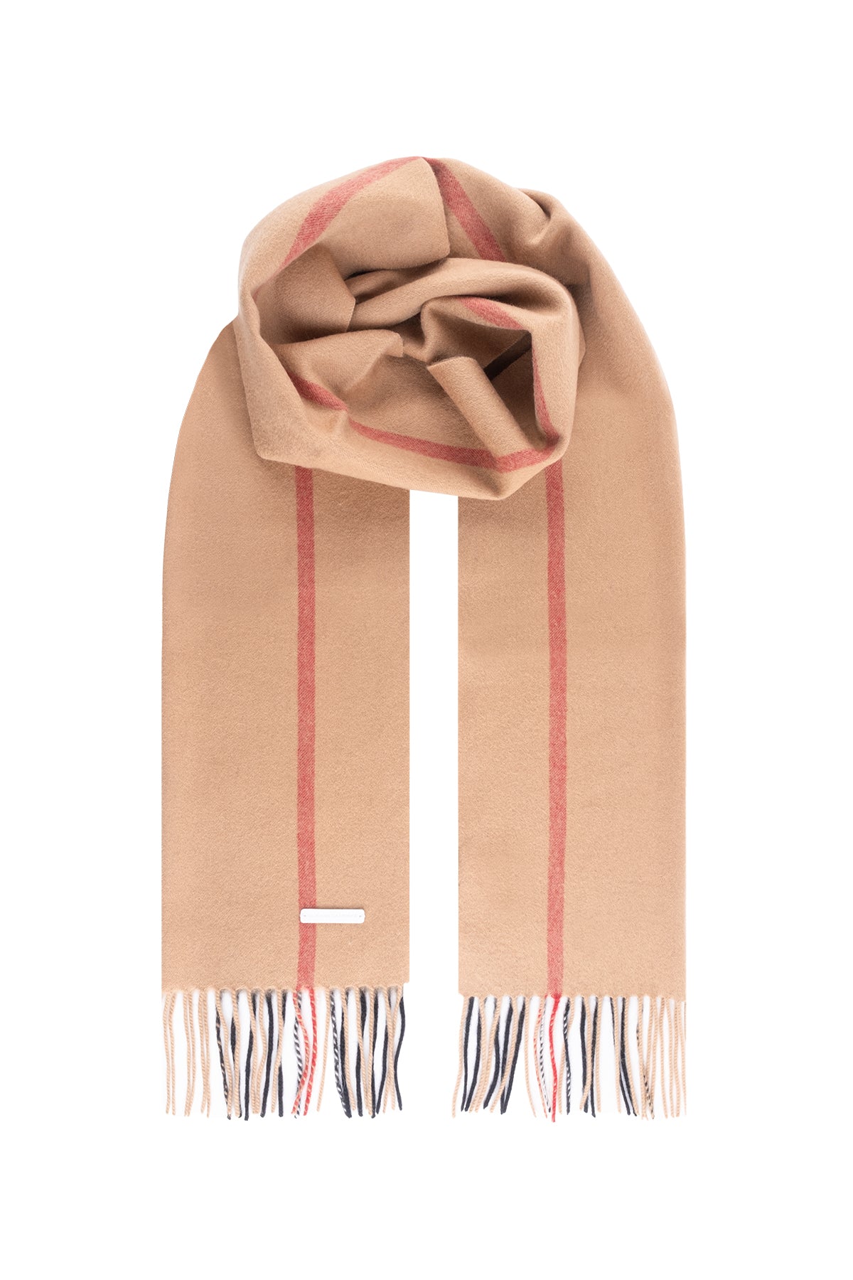 Bej Patrick Saf Kaşmir Çizgili Atkı 35x190 cm