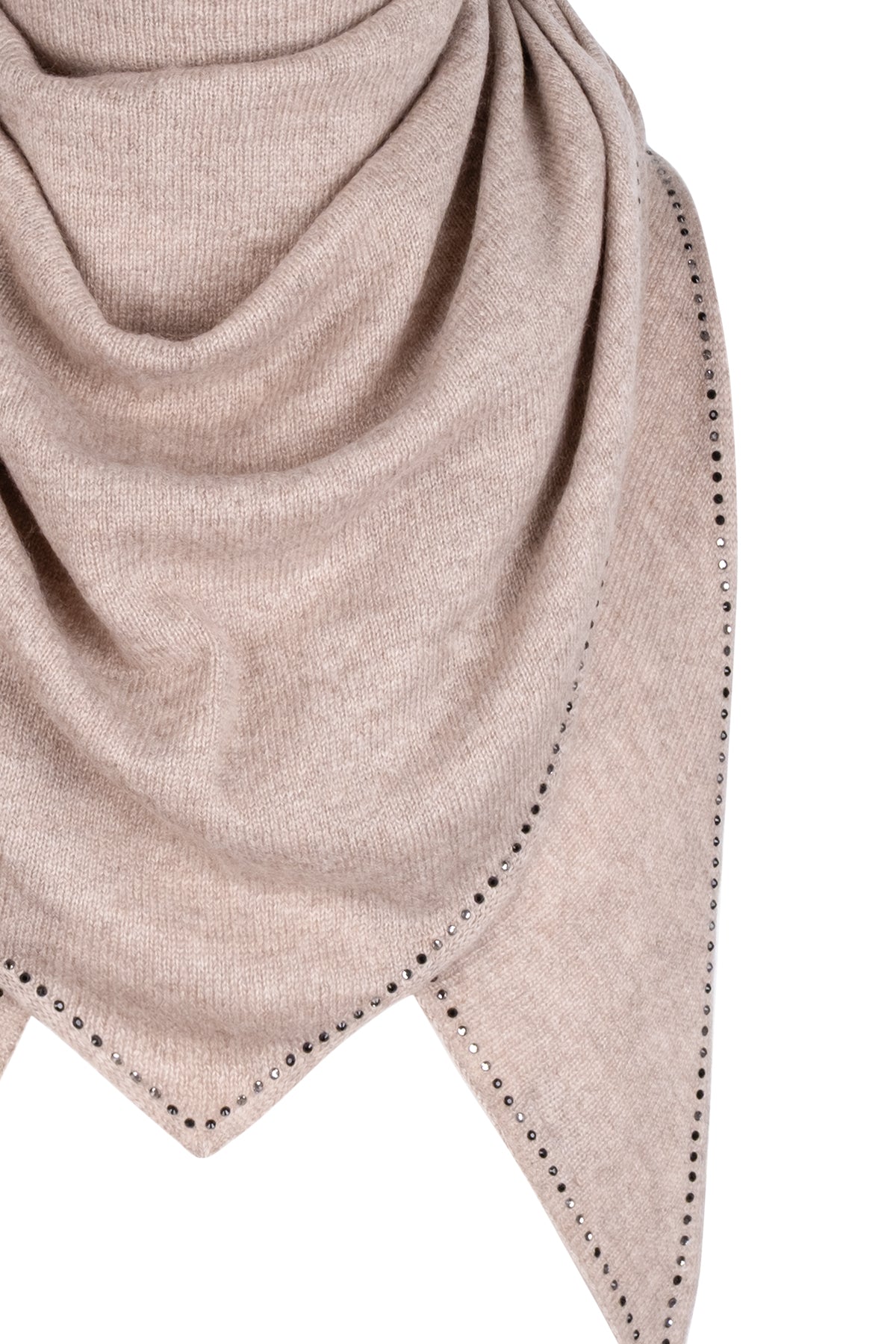 Bej Saf Kaşmir Taşlı Üçgen Şal 105x105x165 cm