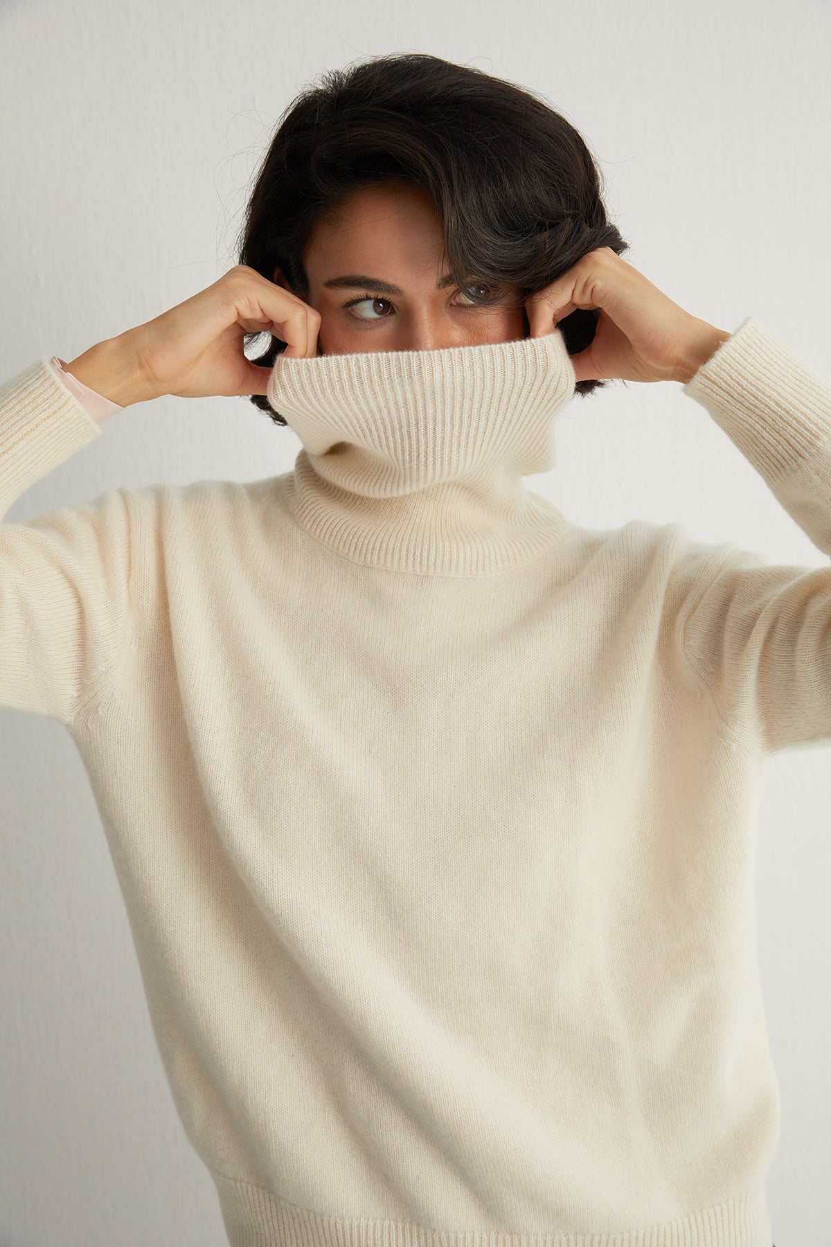 Beyaz Carla Saf Kaşmir Balıkçı Yaka T Kol Kazak