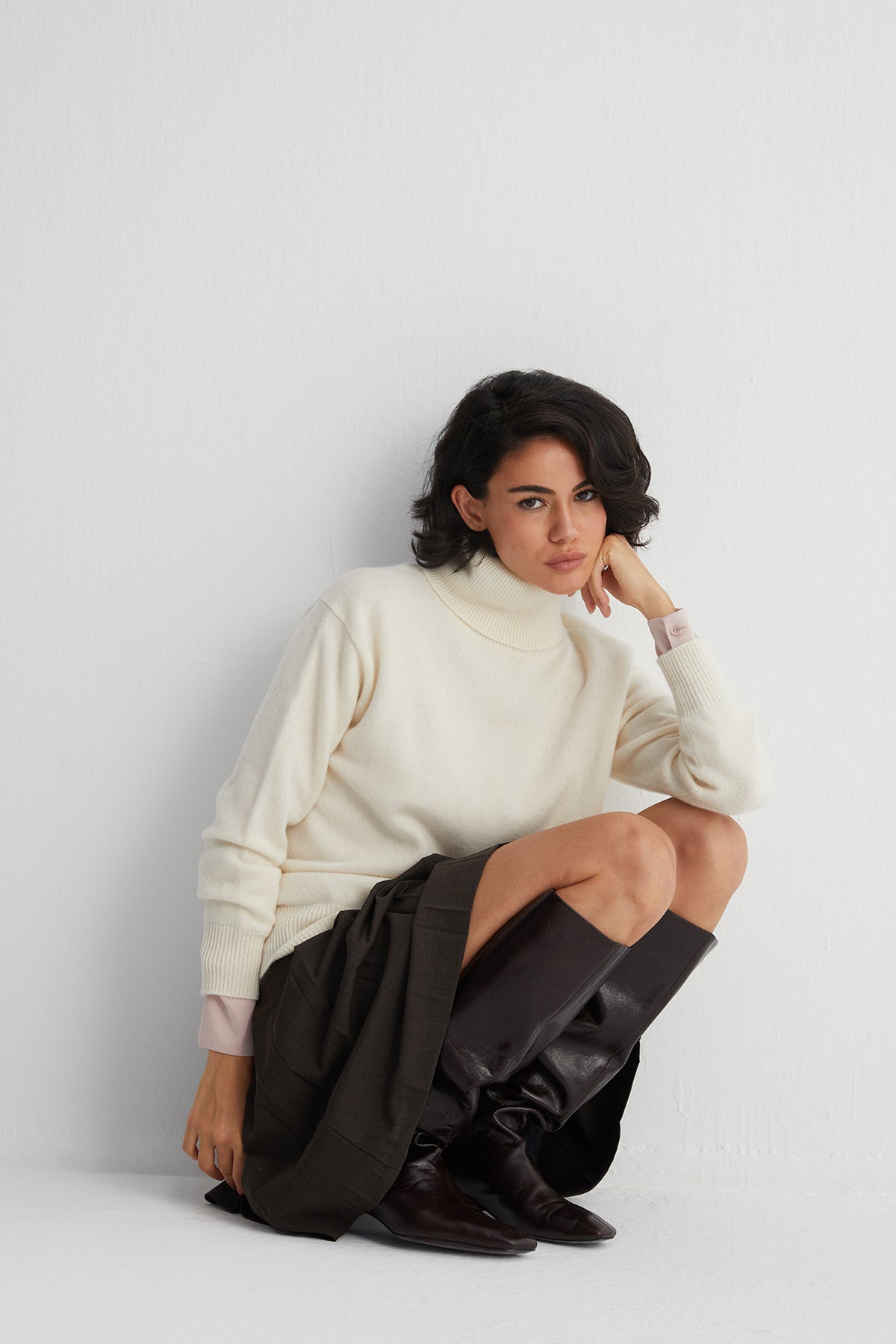 Kaşmirin doğallığıyla tasarımın zarafetini buluşturan Carla Kazak, yalın çizgiler içinde dingin bir konfor sunar. Yumuşacık dokusu, her hareketinizde size uyum sağlayarak huzurlu bir sıcaklık hissi yaratır. Beyaz tonu, arınmış ve zamansız bir görünüm sunarken; yüksek balıkçı yaka detayı ve T kol formu modern bir sadelikle tamamlanır. Günlük ritminize doğadan gelen bir yumuşaklık eşlik eder.