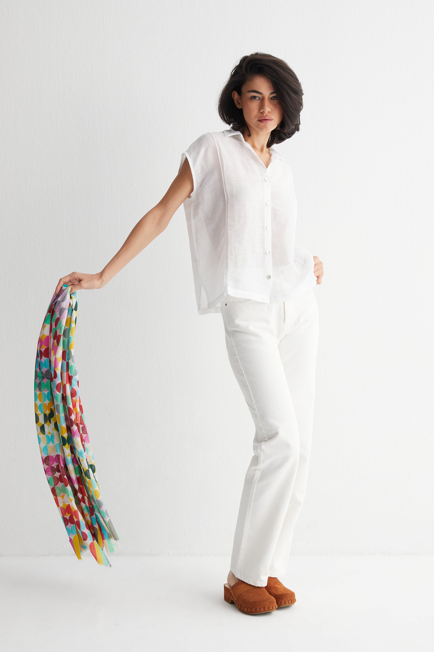 Doğallığın zarafetle buluştuğu Beyaz Cassandra Gömlek, nefes alabilen yapısı ve rafine duruşuyla yaz gardırobunuzun vazgeçilmezlerinden biri olmaya aday. Ketenin karakteristik dokusuna pamuk yumuşaklığını ekleyerek gün boyu ferahlık ve konfor sunar.