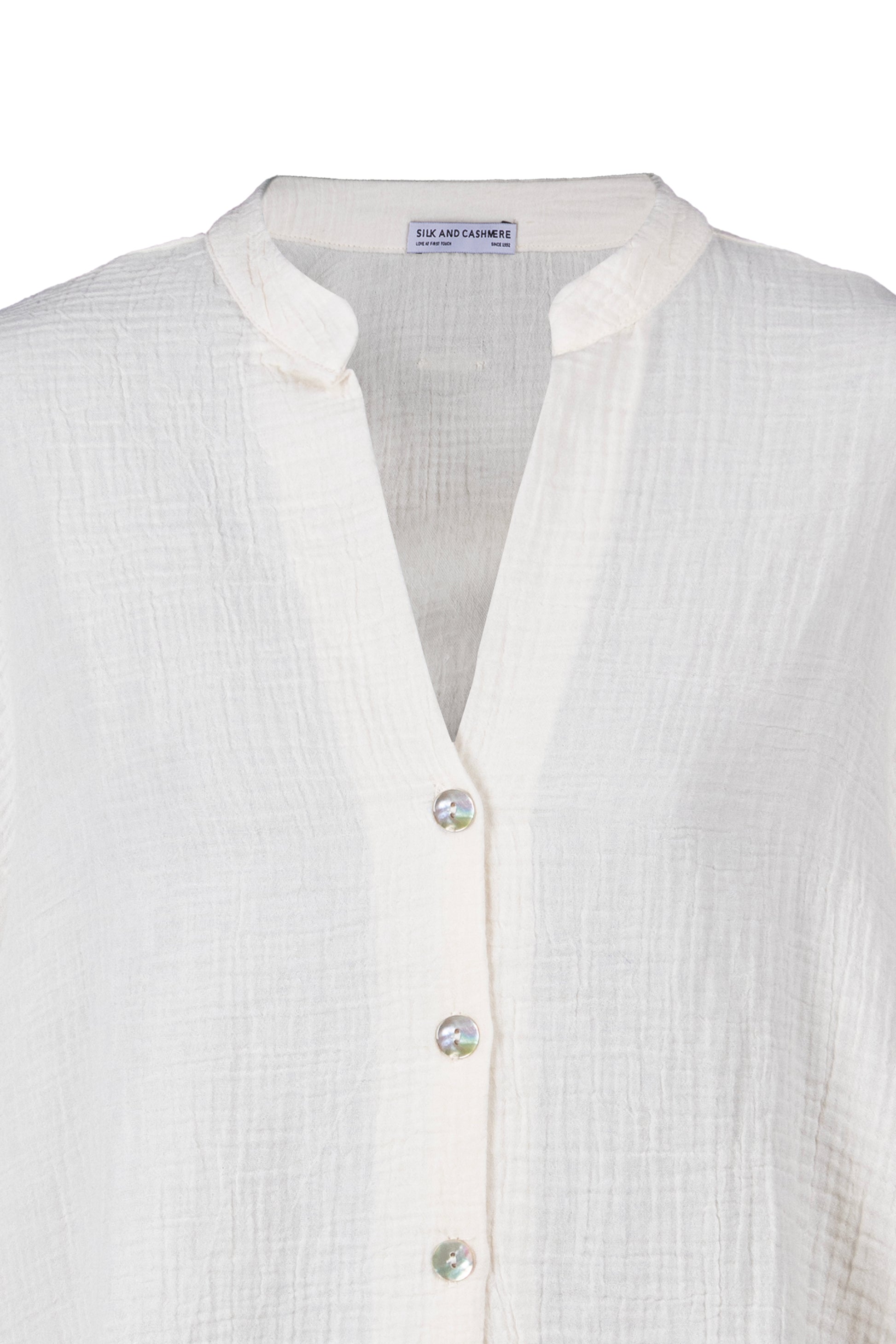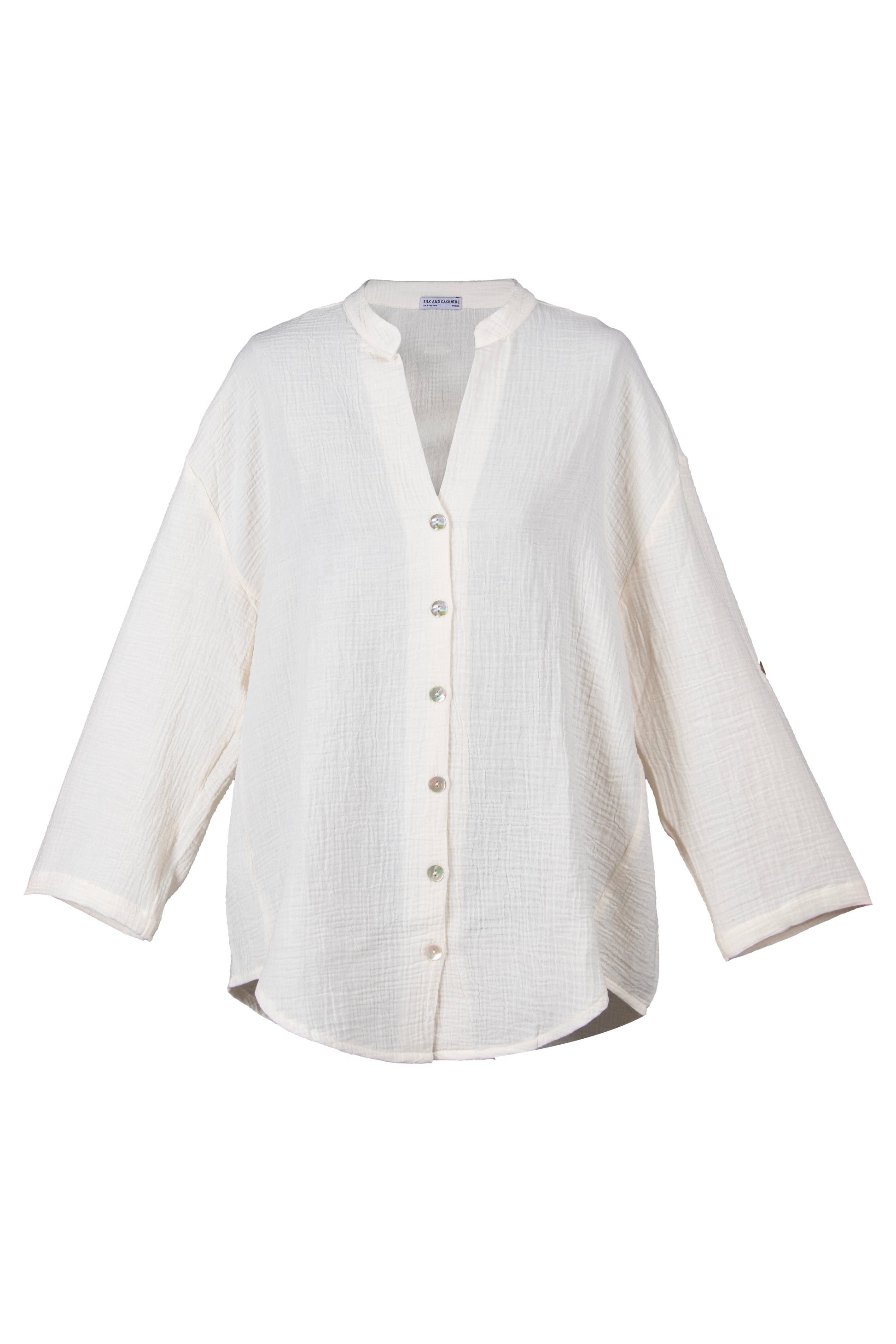 Bu zarif ve modern gömlek, %100 pamuktan üretilmiştir ve sıcak yaz günleri için ideal bir tercihtir. Hafif dokusu ve rahat kesimi, hem şıklığı hem de konforu bir araya getirir. Doğal beyaz rengi, her tarza uyum sağlayarak gardırobunuzun vazgeçilmez bir parçası olmaya aday.