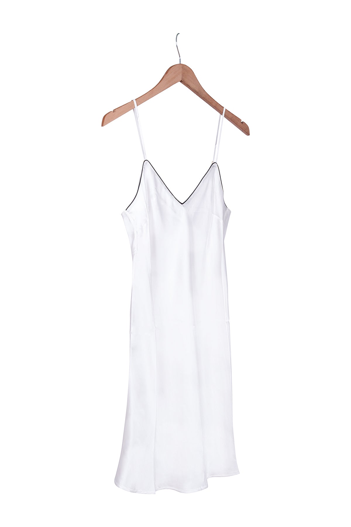 Cindy gecelik, ipeğin sade zarafetini kontrast dikiş detaylarıyla tamamlayarak modern bir siluet sunar. Hafifliği ve yumuşak dokusuyla gece boyunca cildinize rahatlıkla eşlik ederken, özgün tasarımıyla gardırobunuzda öne çıkan bir parça olur.