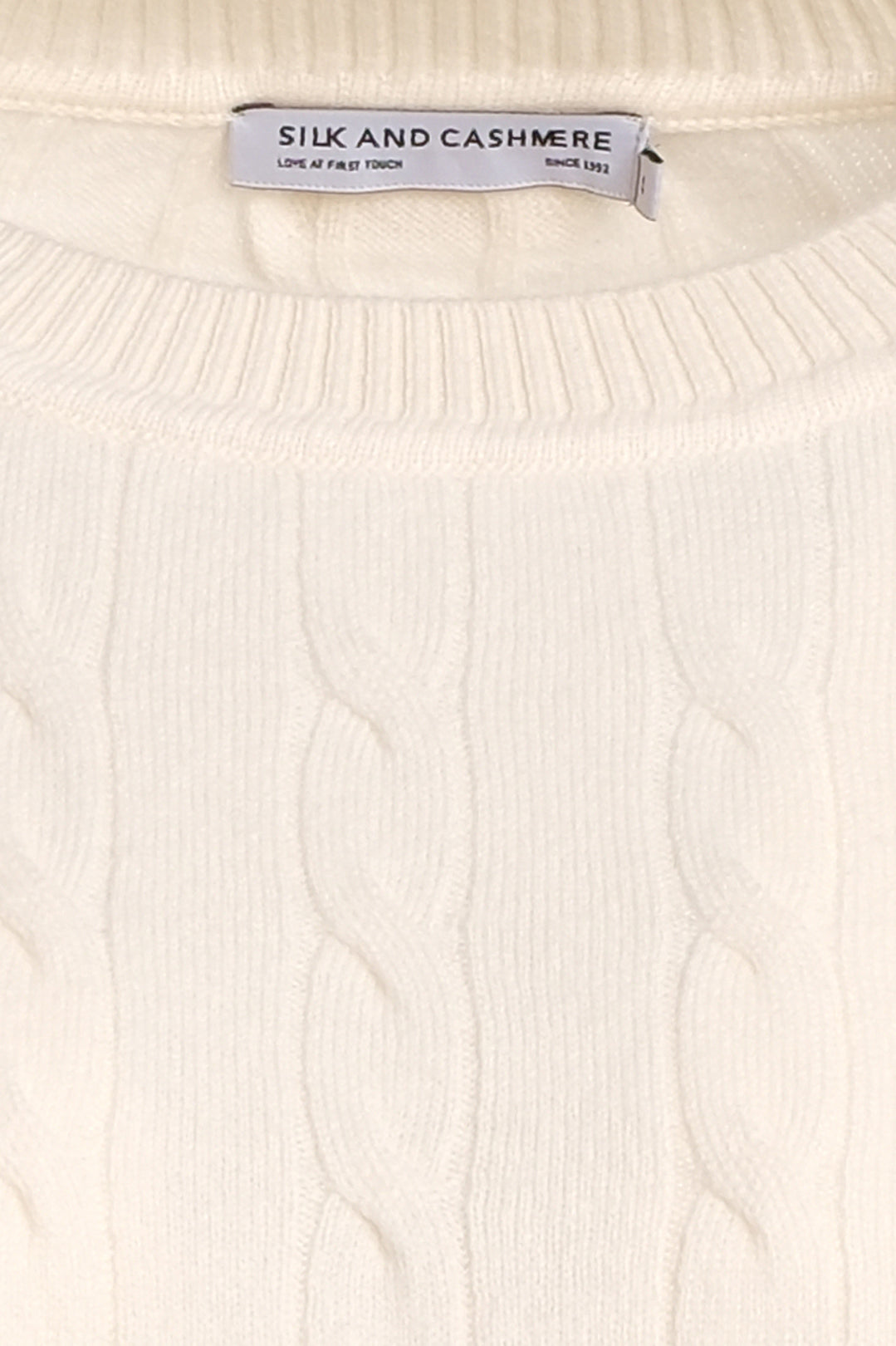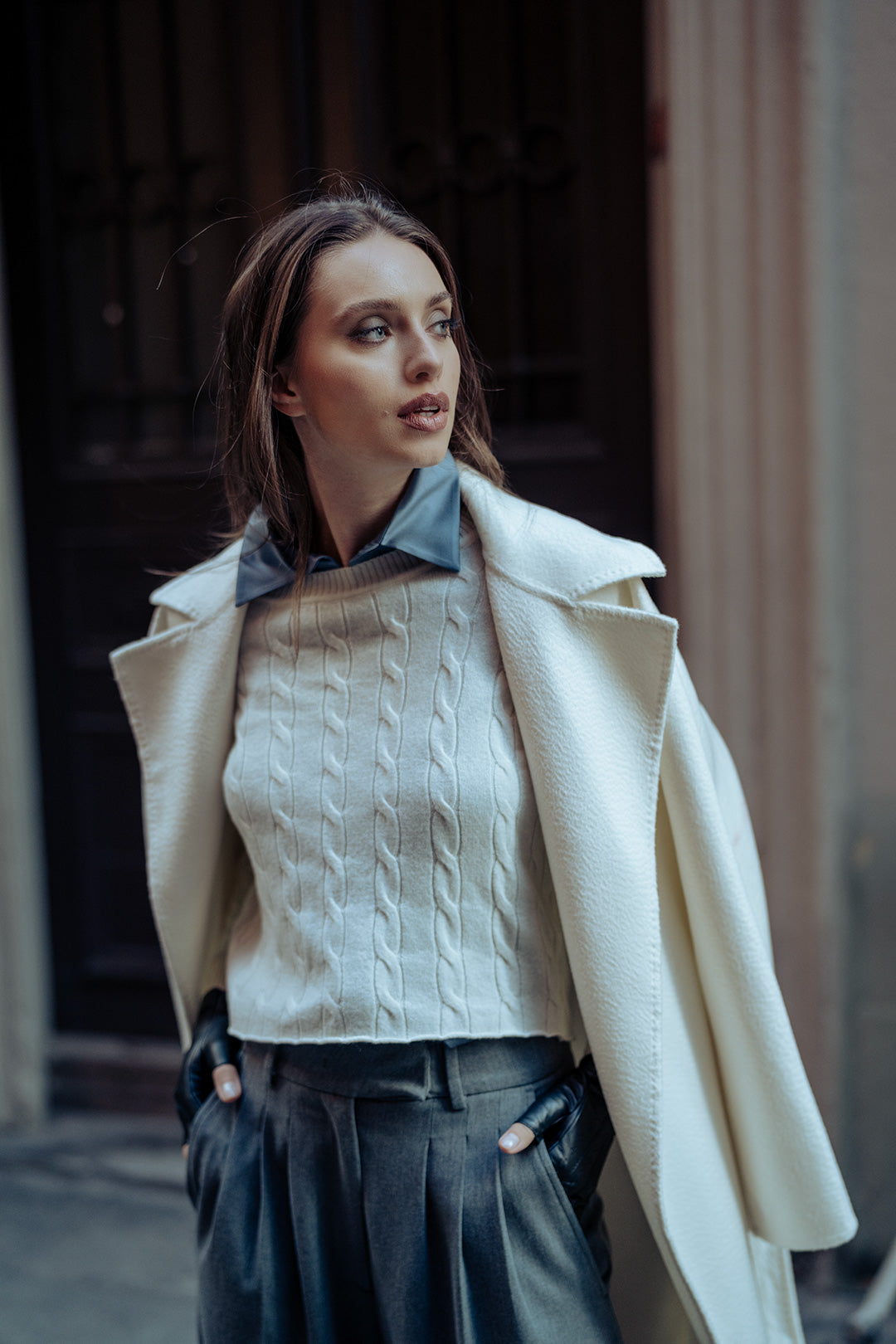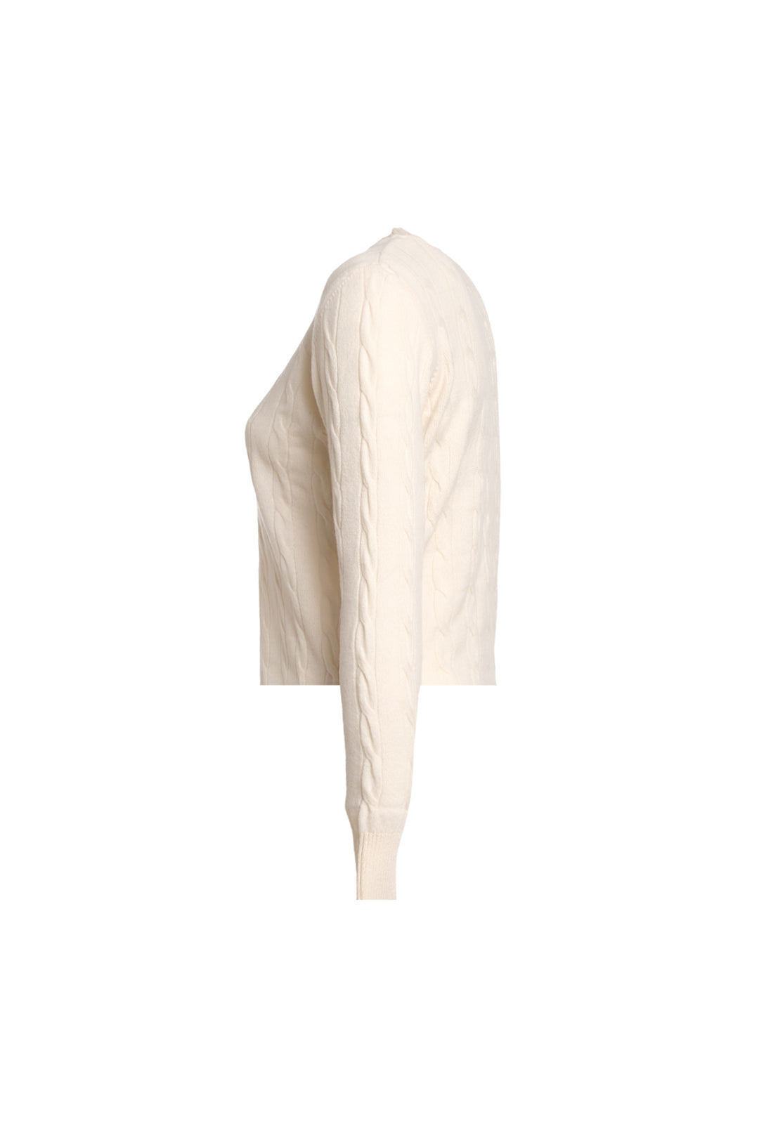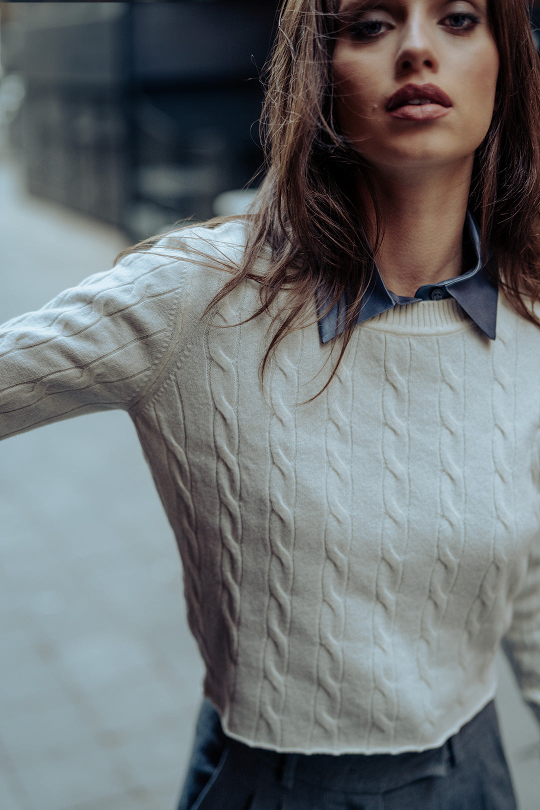 Beyaz Avusturalya Yünü ve Kaşmir Amelia Saç Örgülü Bisiklet Yaka Crop Kadın Kazak