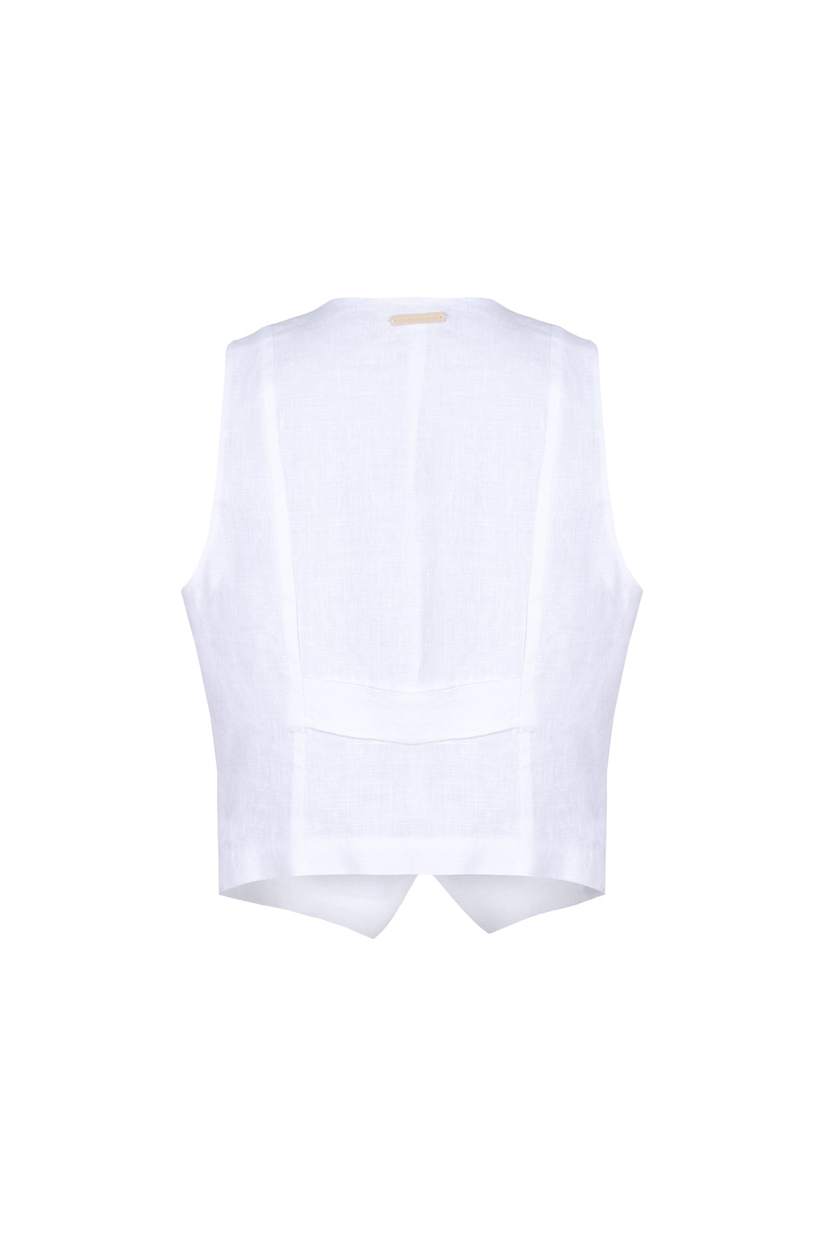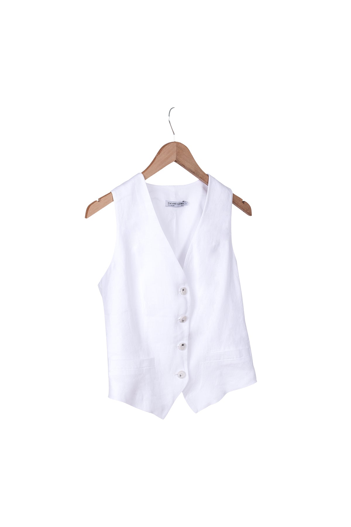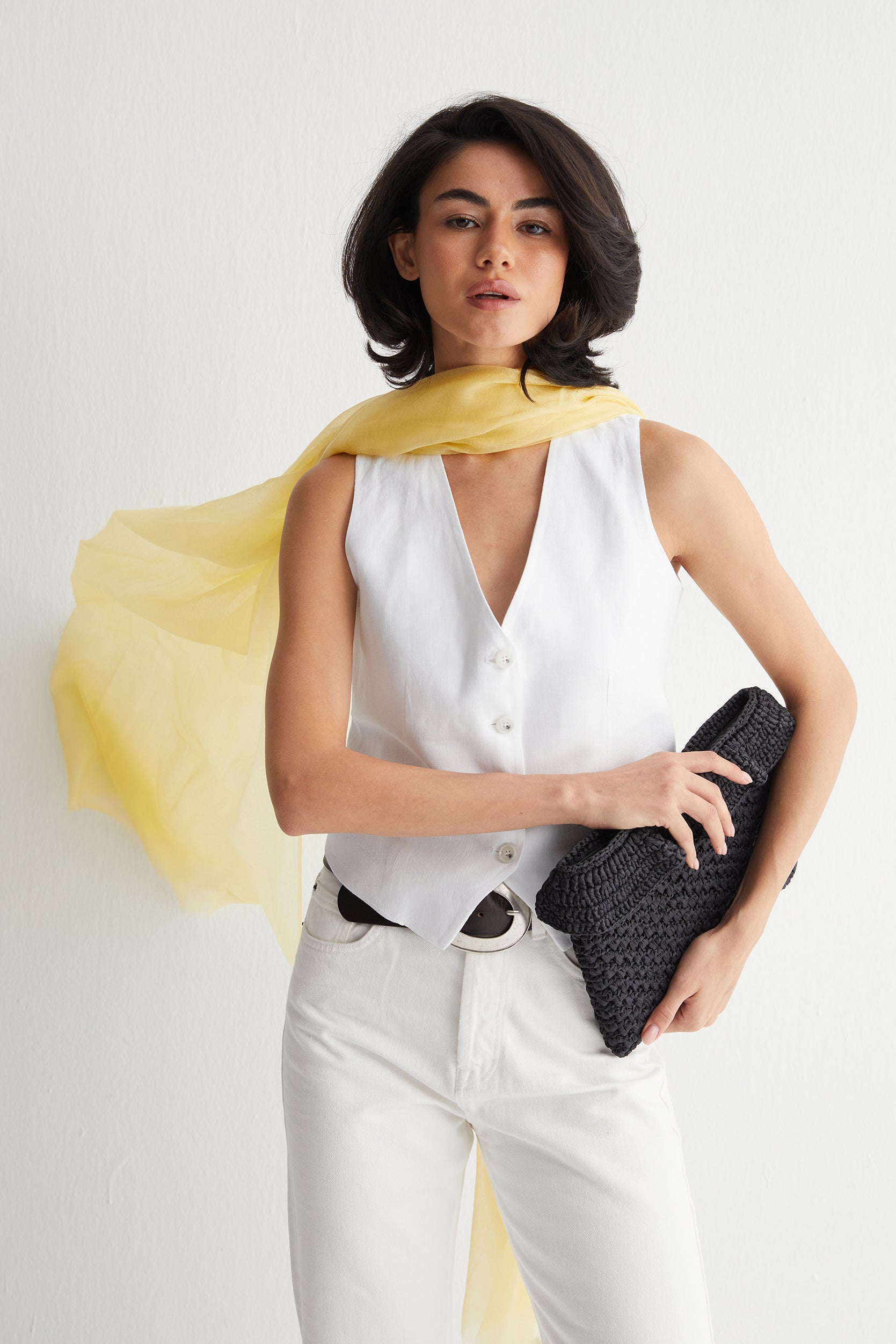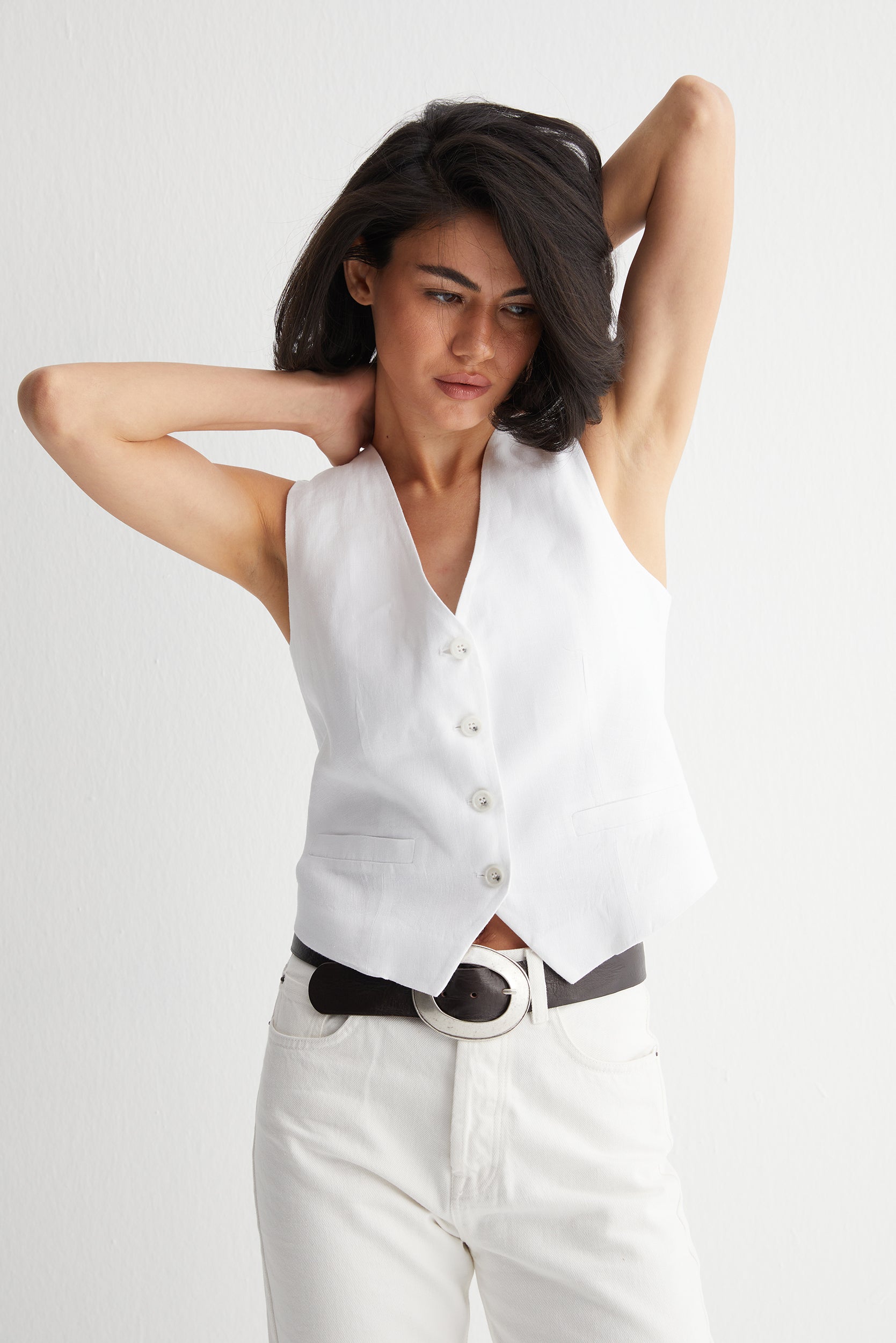 Klasik terzilikten ilham alarak yeniden yorumlanan bu beyaz keten yelek, yalınlığıyla öne çıkan güçlü bir parçadır. Hafif yapısı ve keskin hatları sayesinde katmanlı görünümlere doğal bir zarafet katar. Gardırobunuzda farklı stillerle kolayca uyum sağlayacak kadar esnek bir tamamlayıcıdır.
