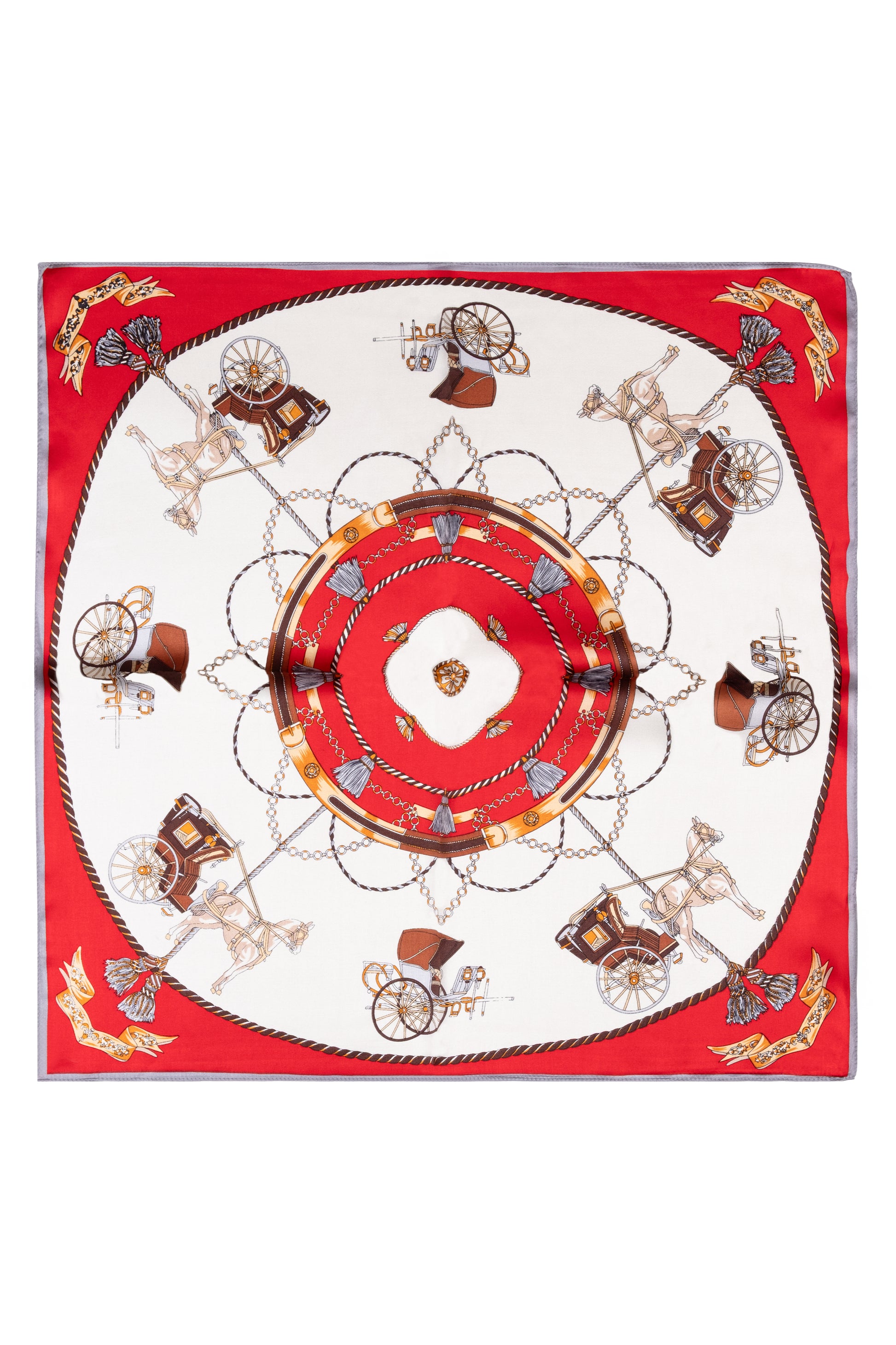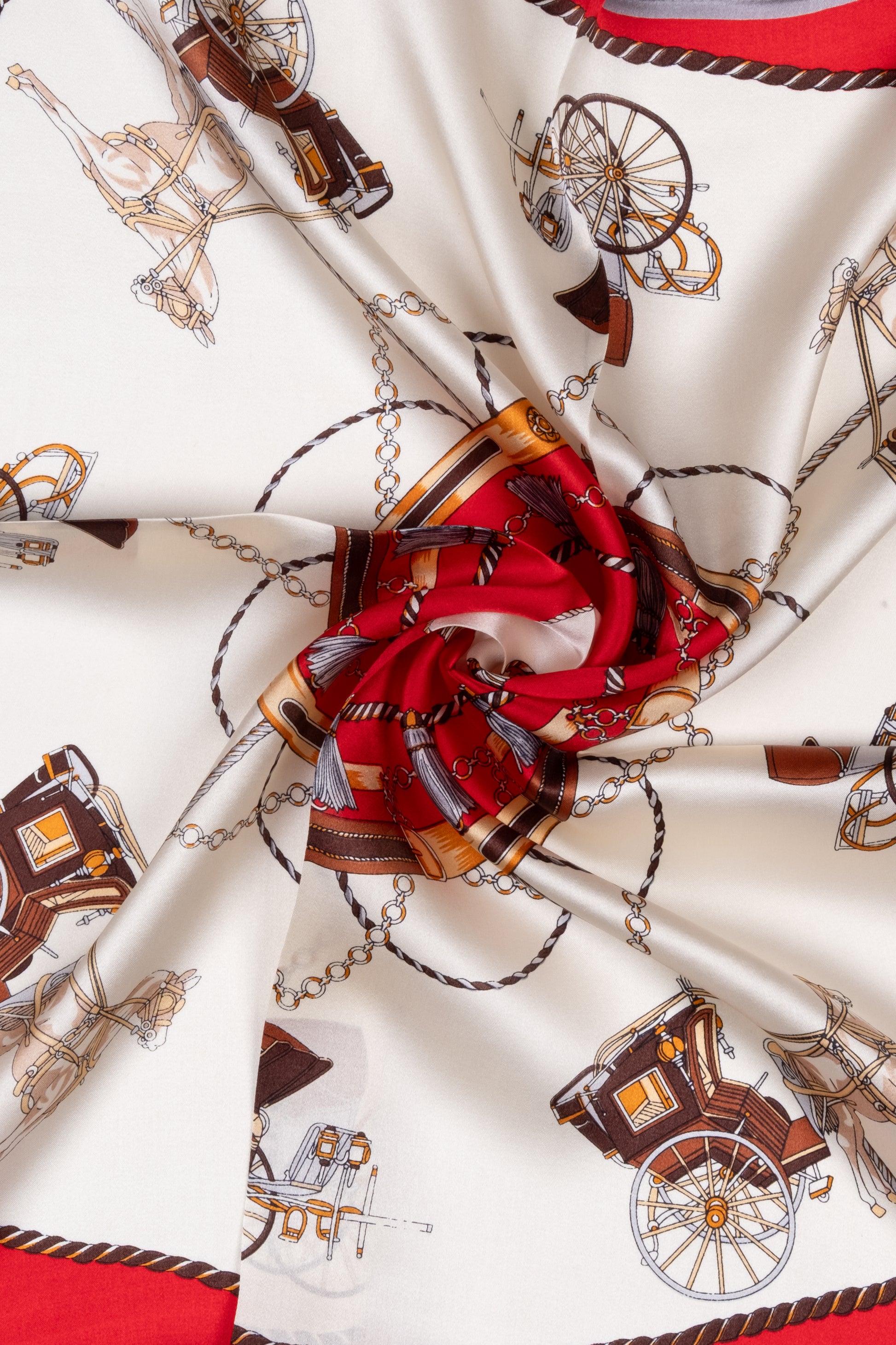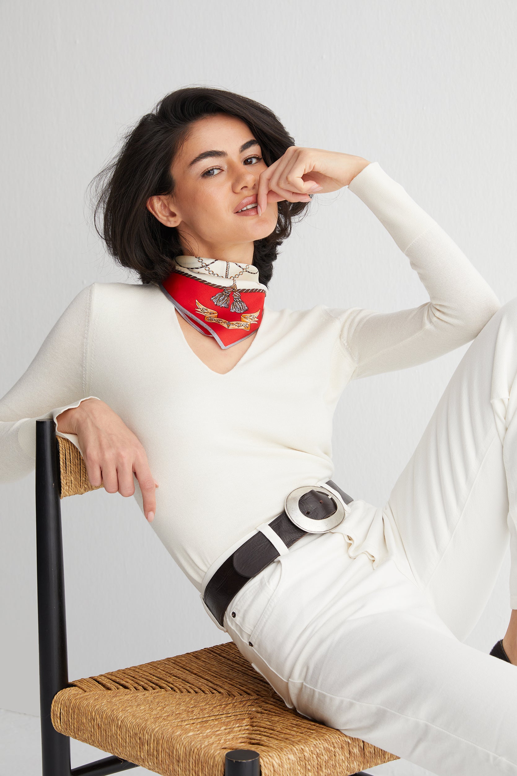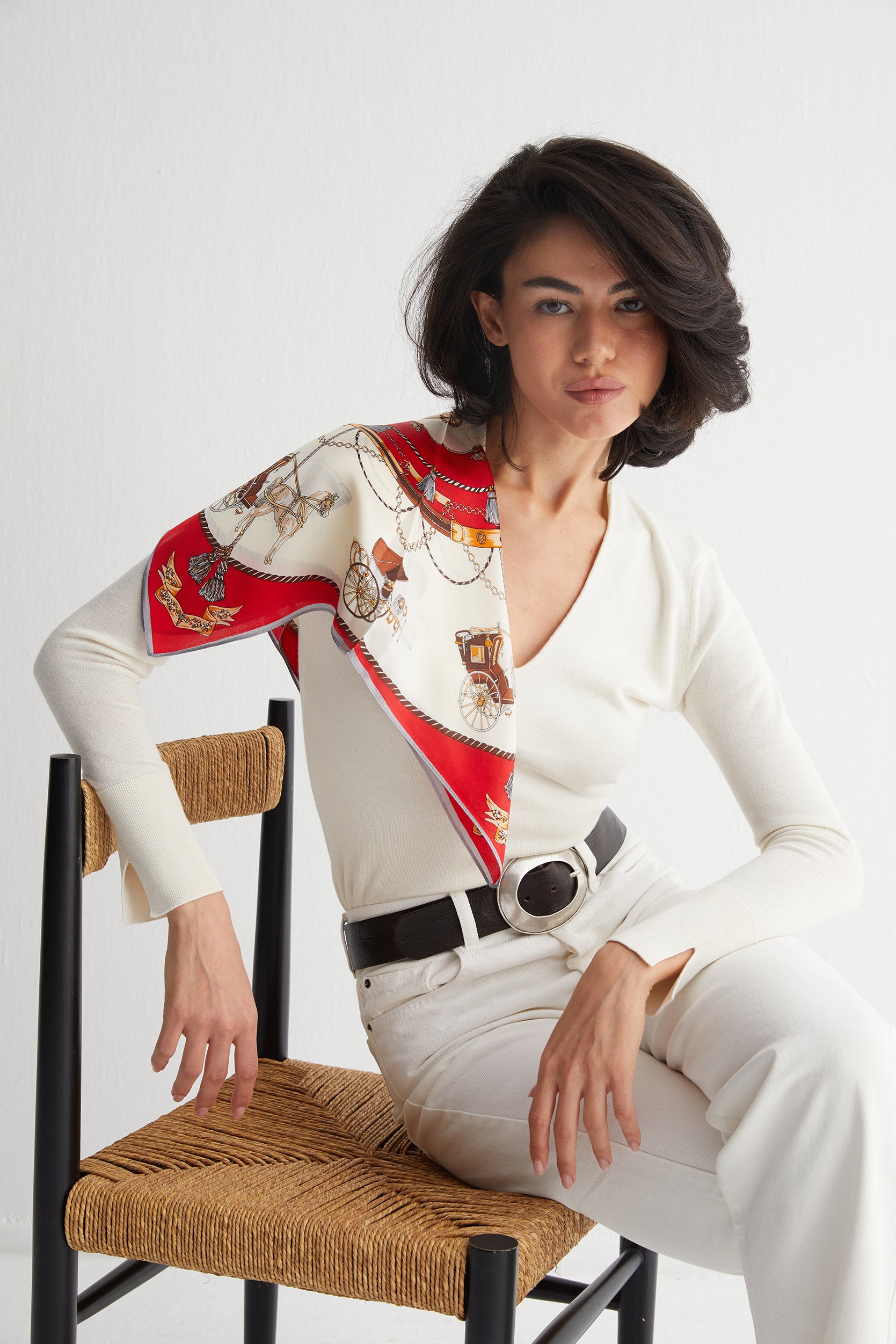 Beyaz Kırmızı Laila Saf İpek Kare Eşarp 50x50 cm