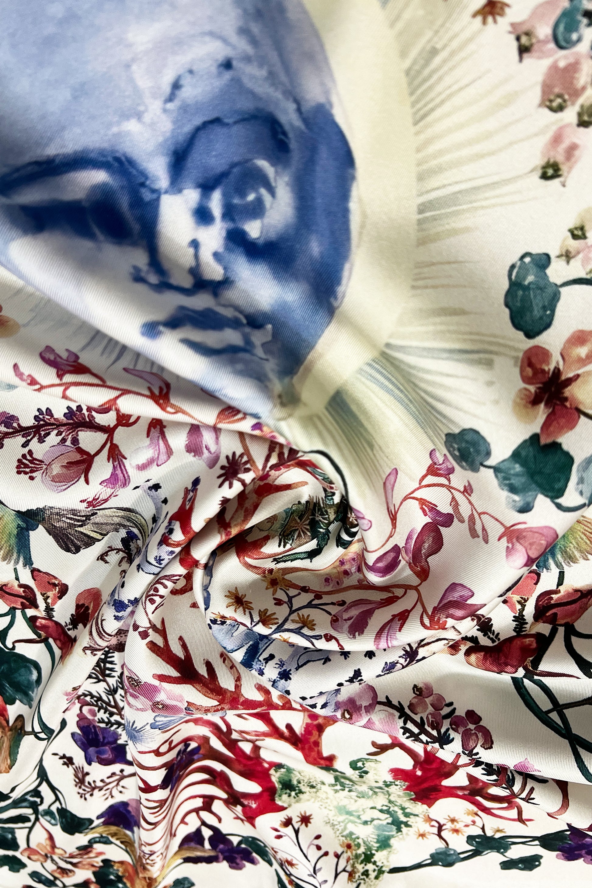 Laila Saf İpek Roma Küçük Eşarp 50x50 cm