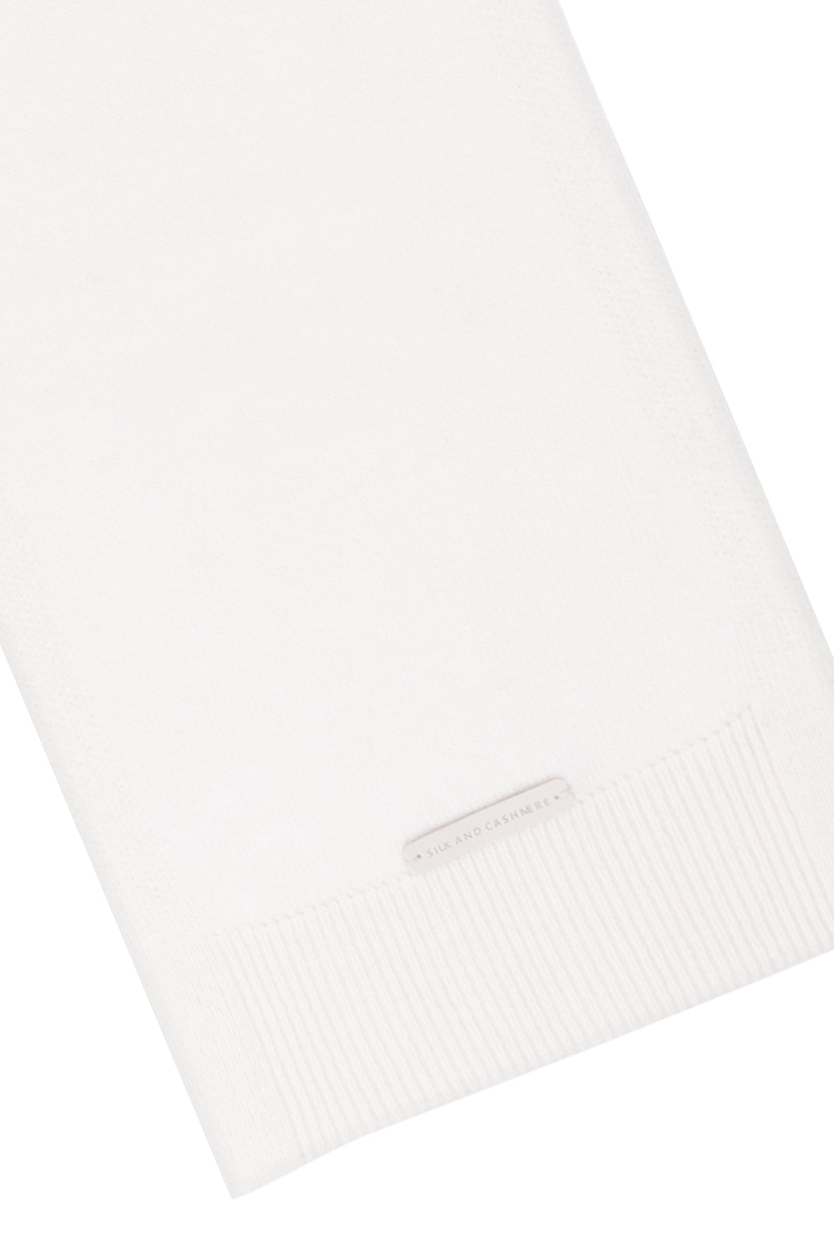Beyaz Lilly Saf Kaşmir Kazak Atkı