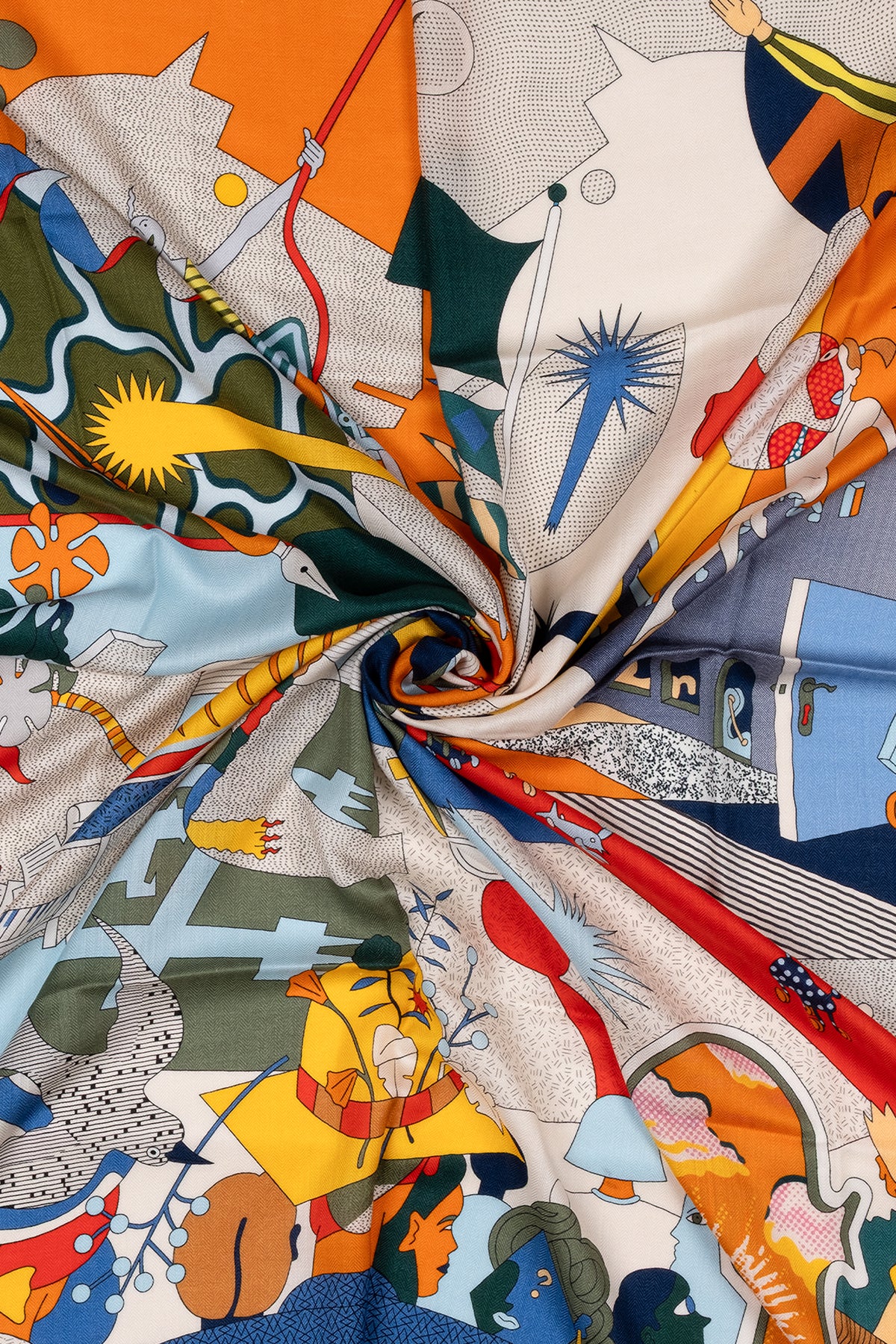 Beyaz Linda Saf Kaşmir Baskılı Eşarp 140x140 cm