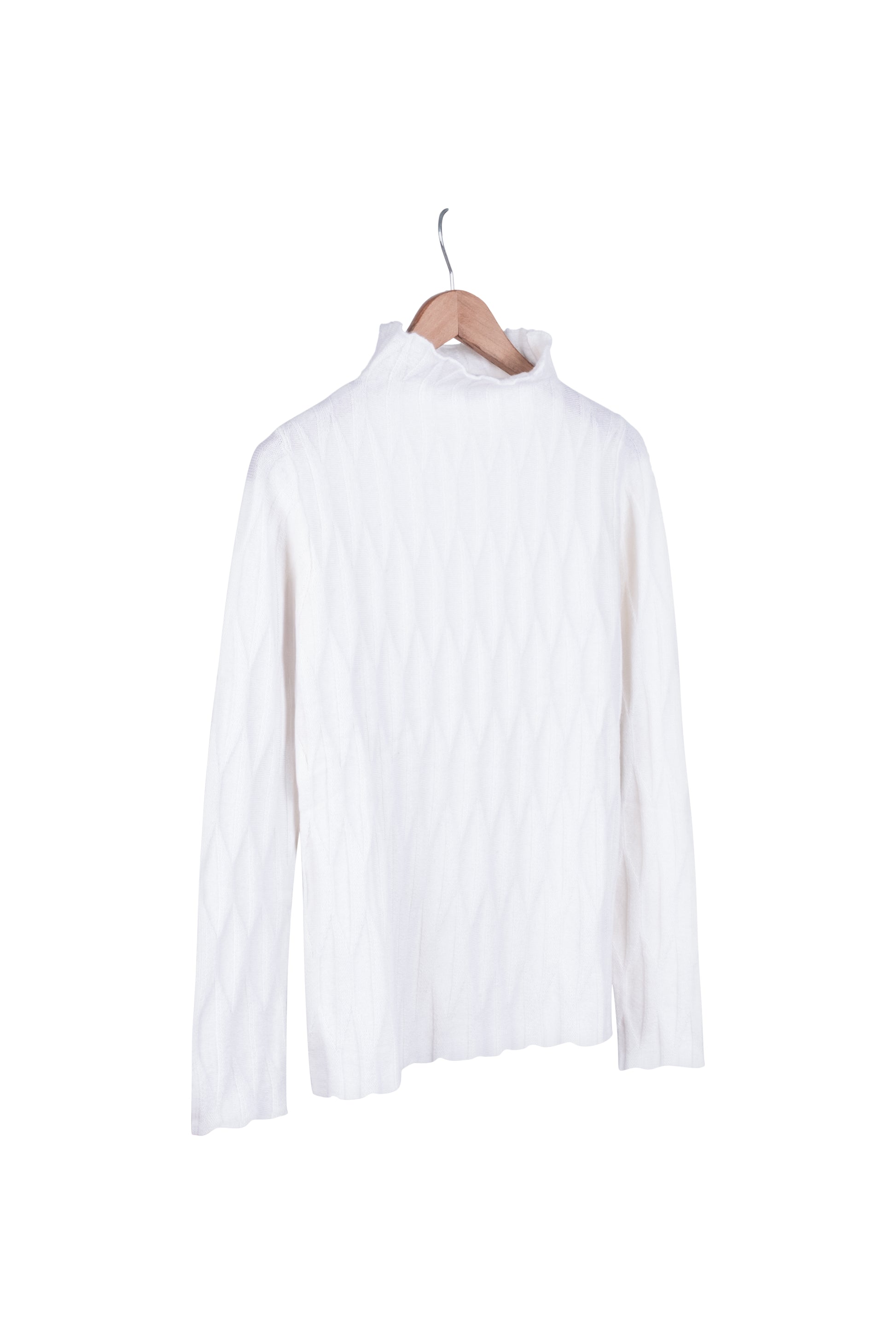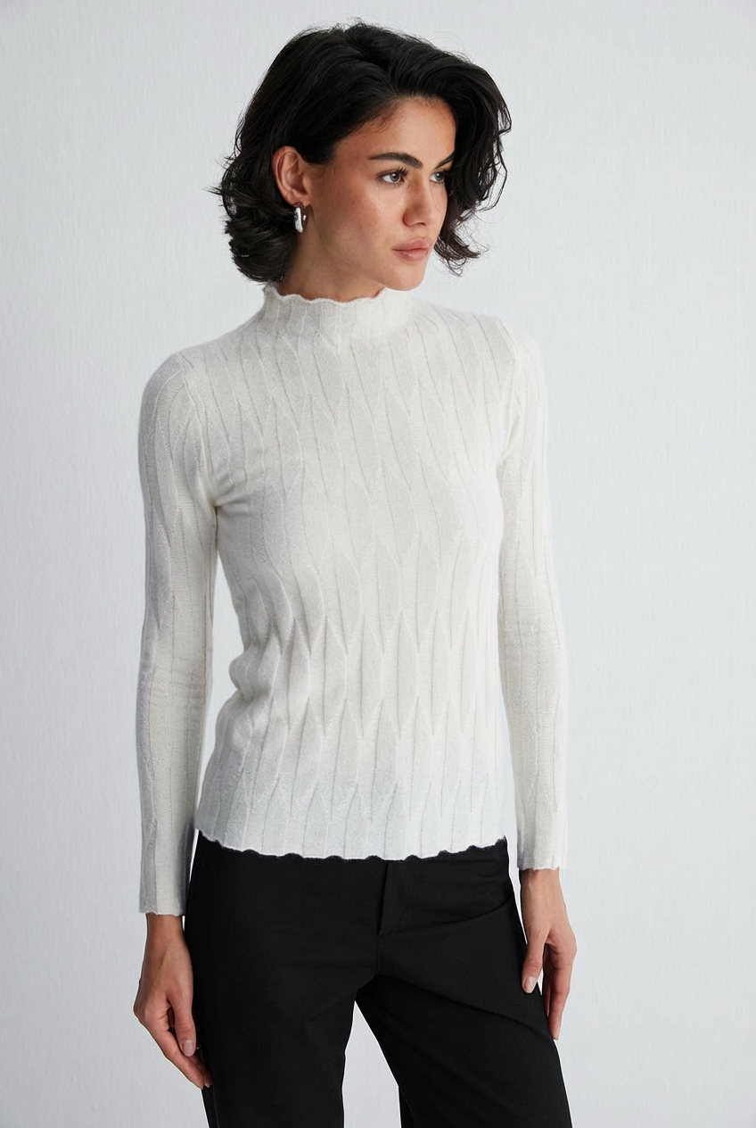 Beyaz Maggie Saf Kaşmir Yarım Balıkçı Örgü Oyunlu Kazak