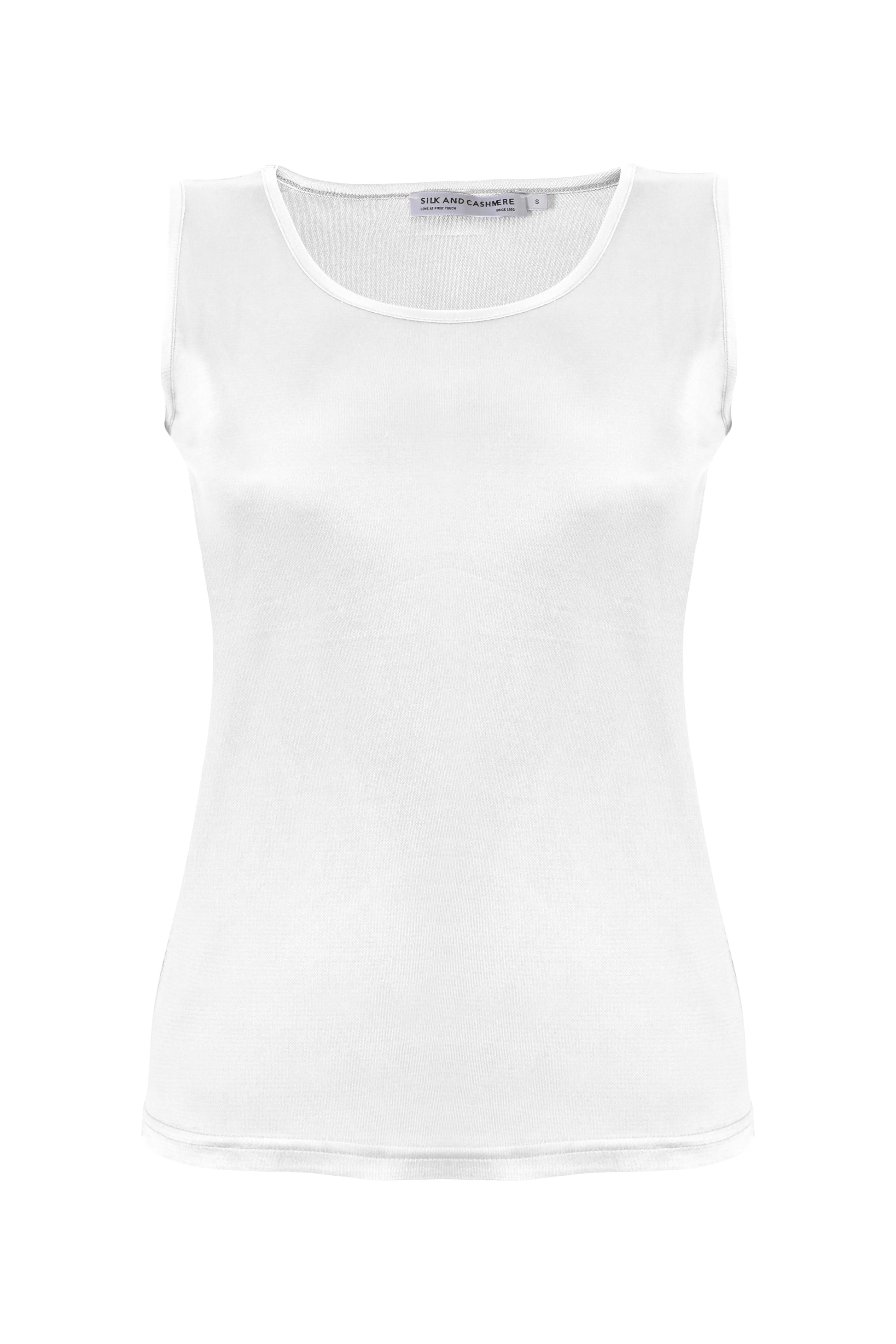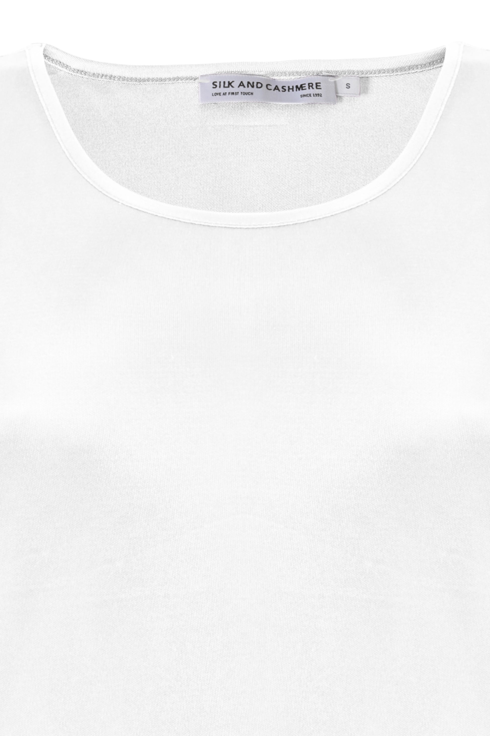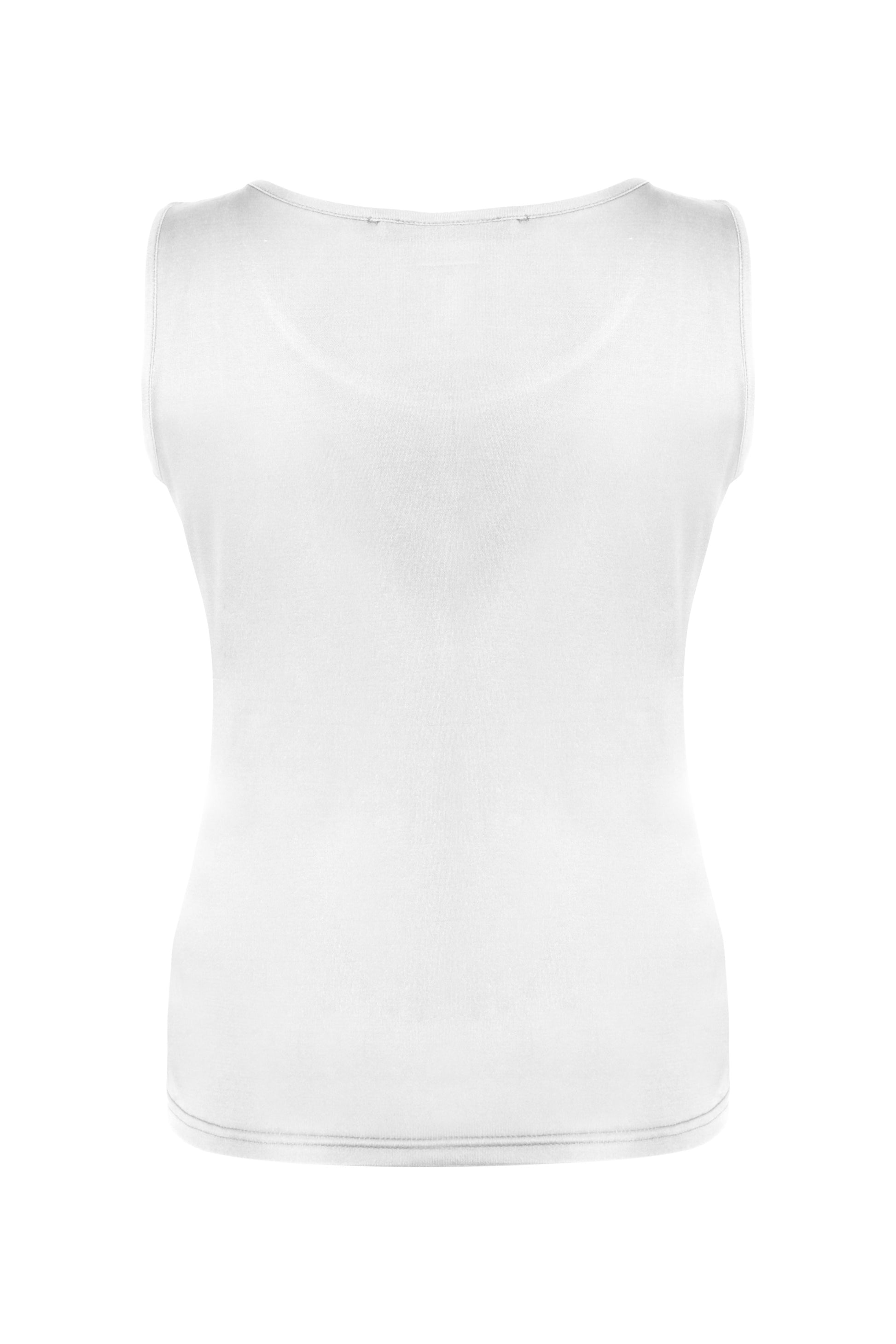 Beyaz Marina İpekli Yuvarlak Yaka Kolsuz T-Shirt