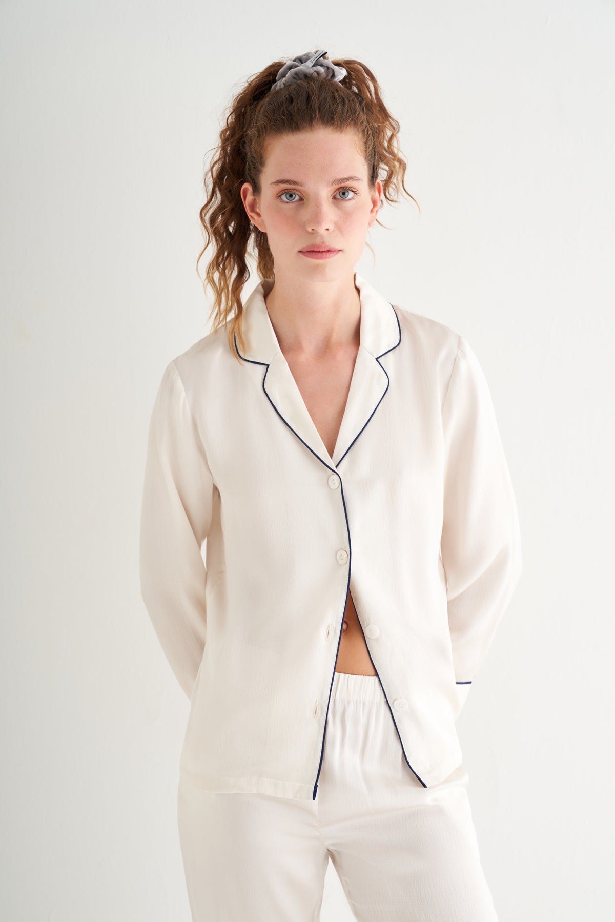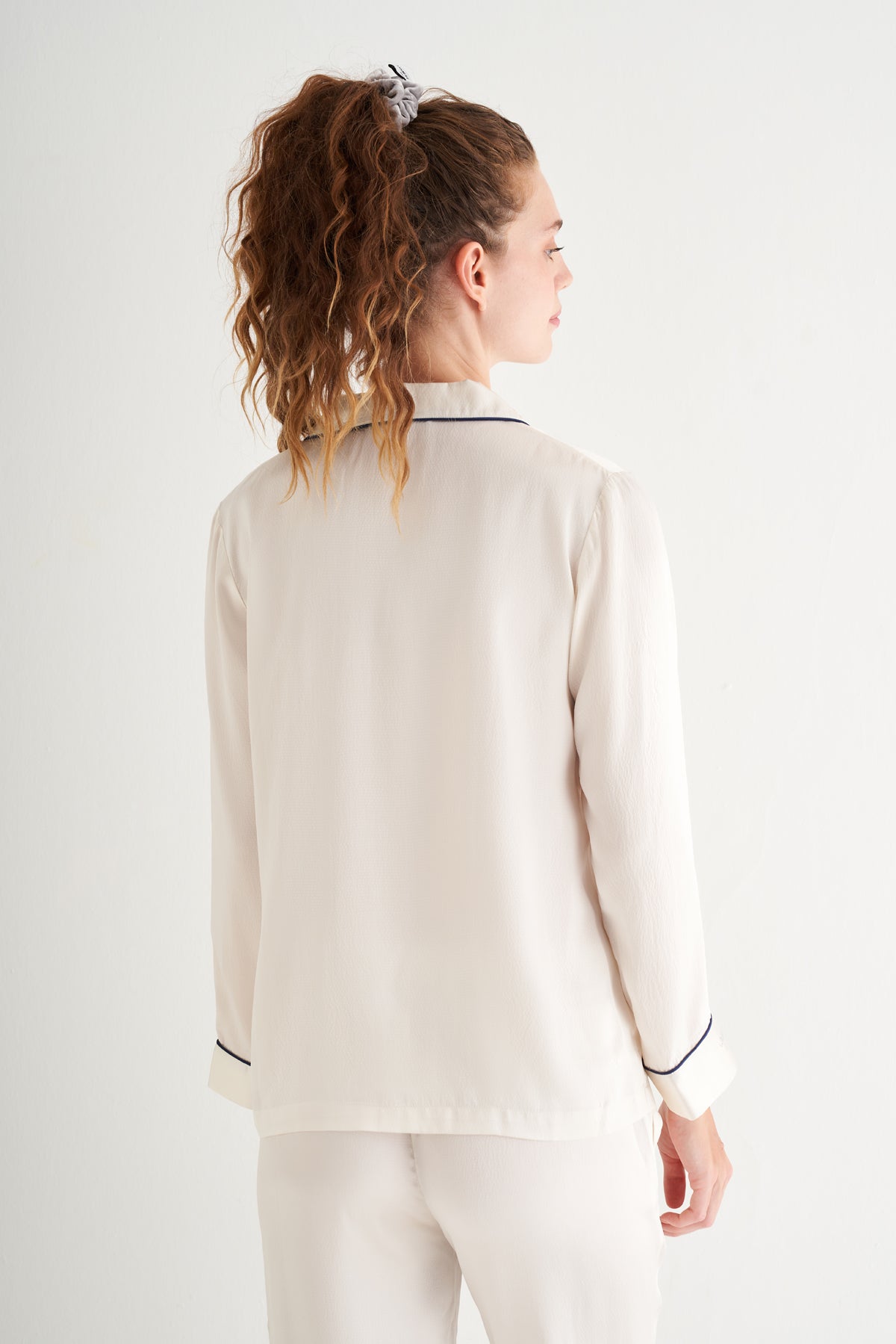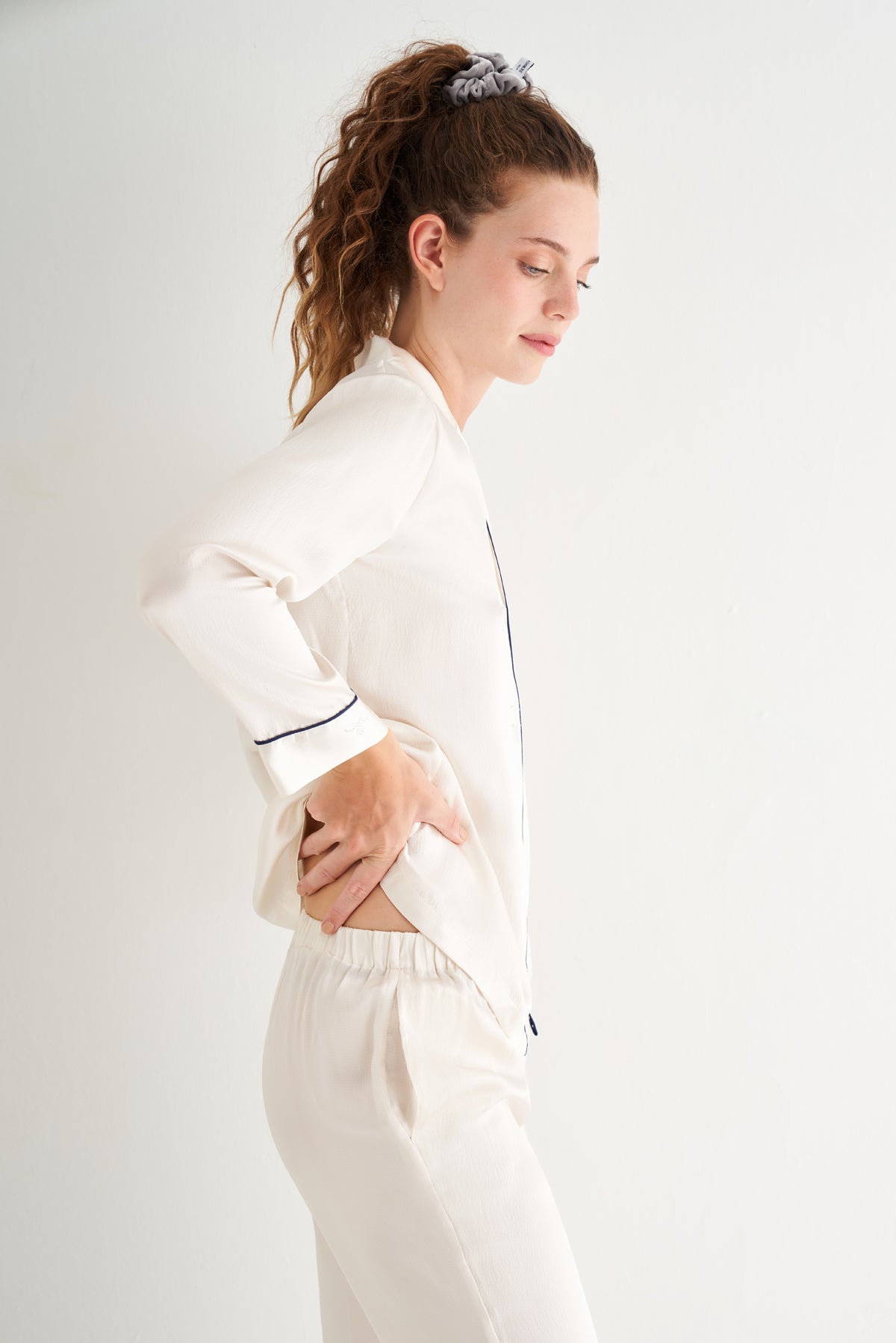 Beyaz Mindy Saf İpek Pijama Seti