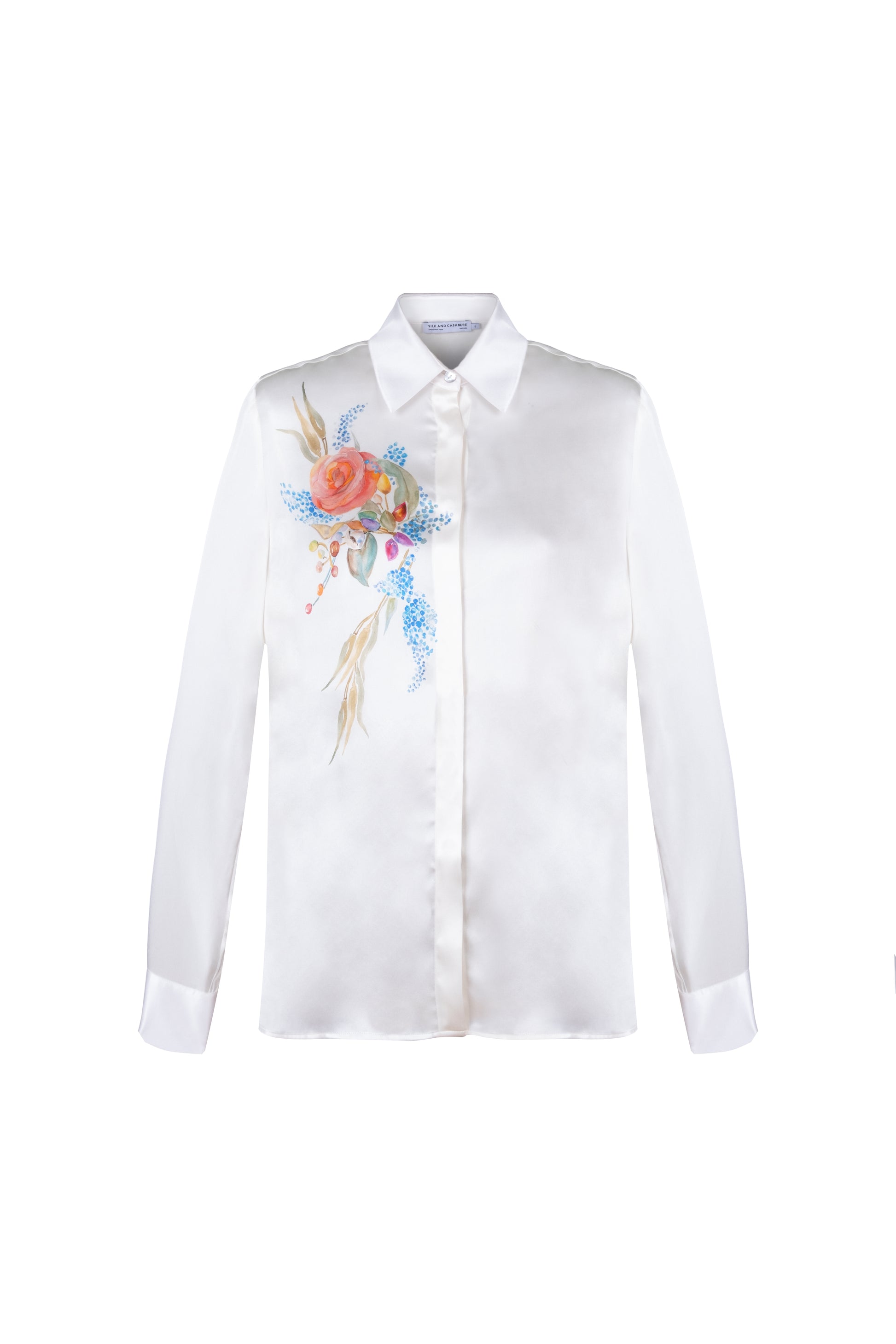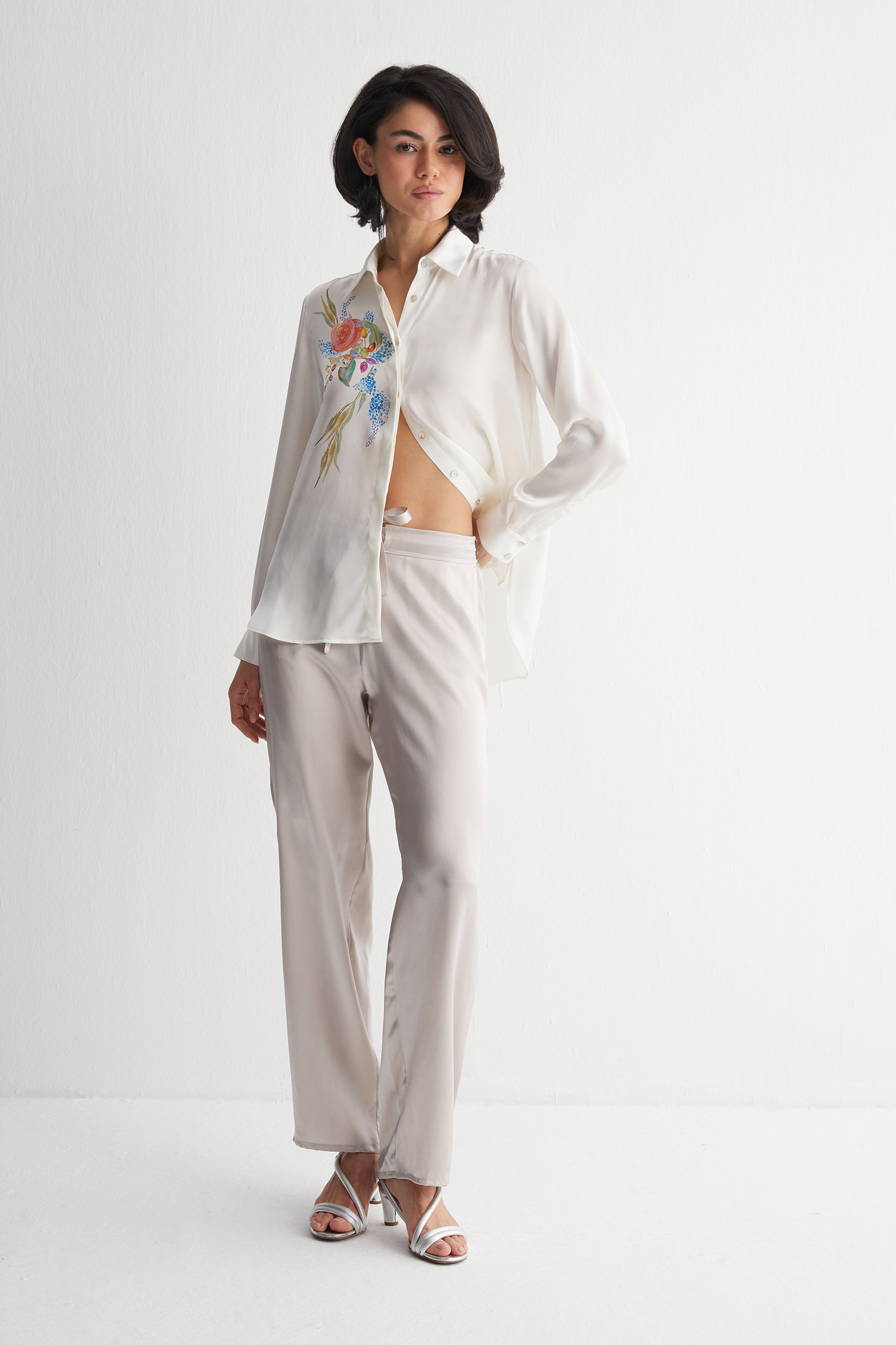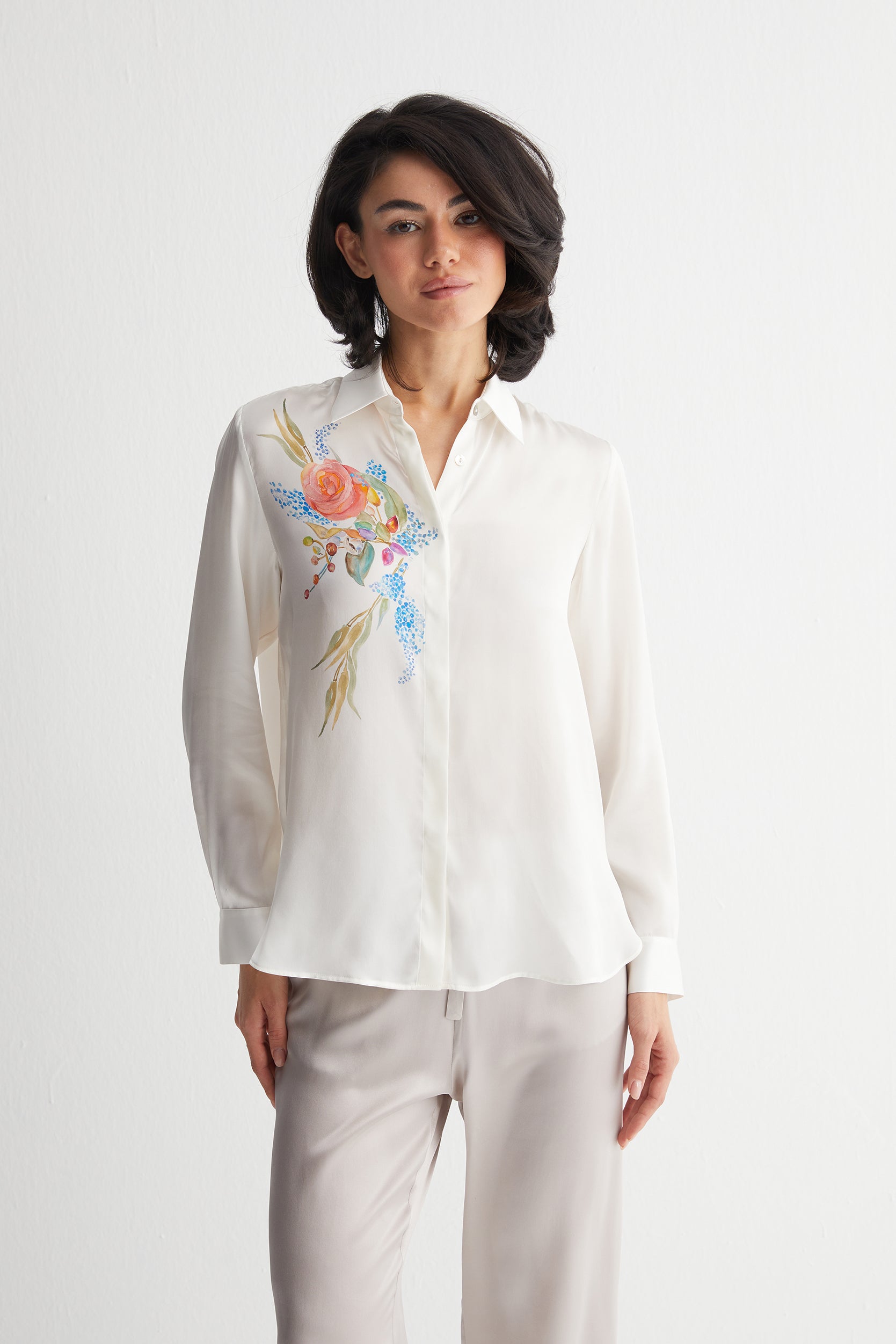 Beyaz Nature Saf İpek Baskılı Gömlek