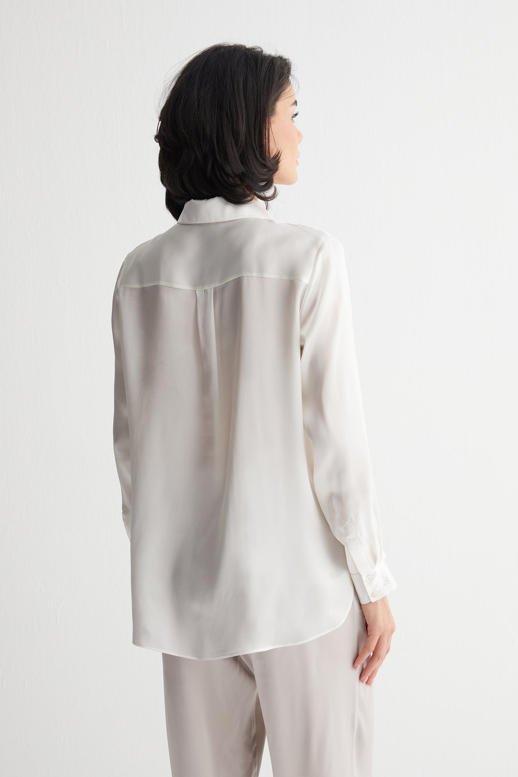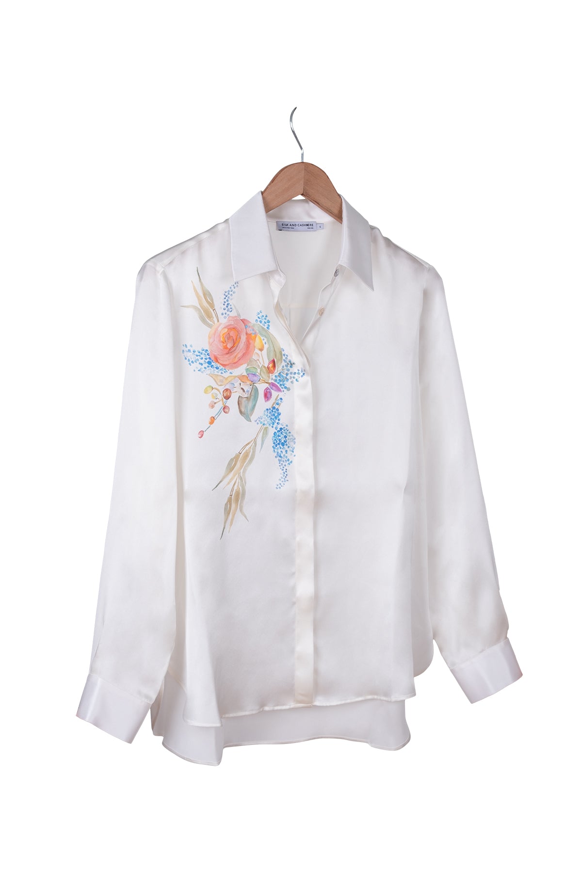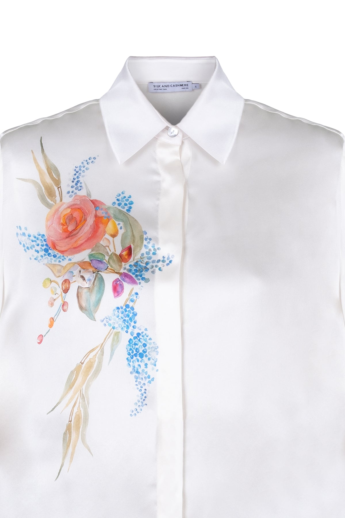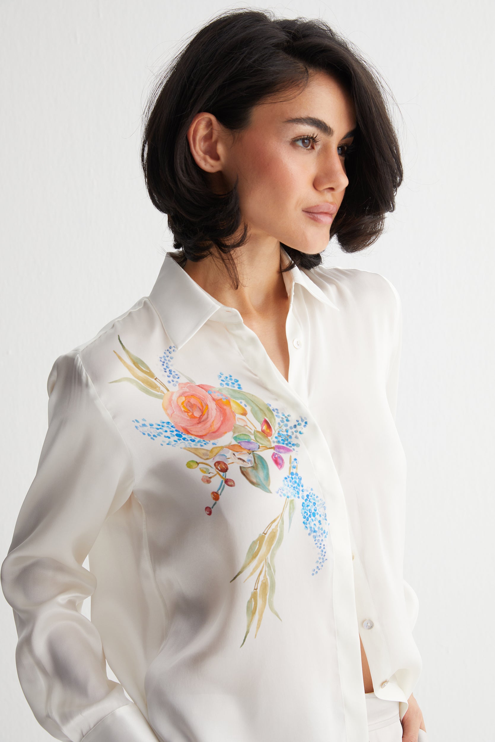 Beyaz Nature Saf İpek Baskılı Gömlek