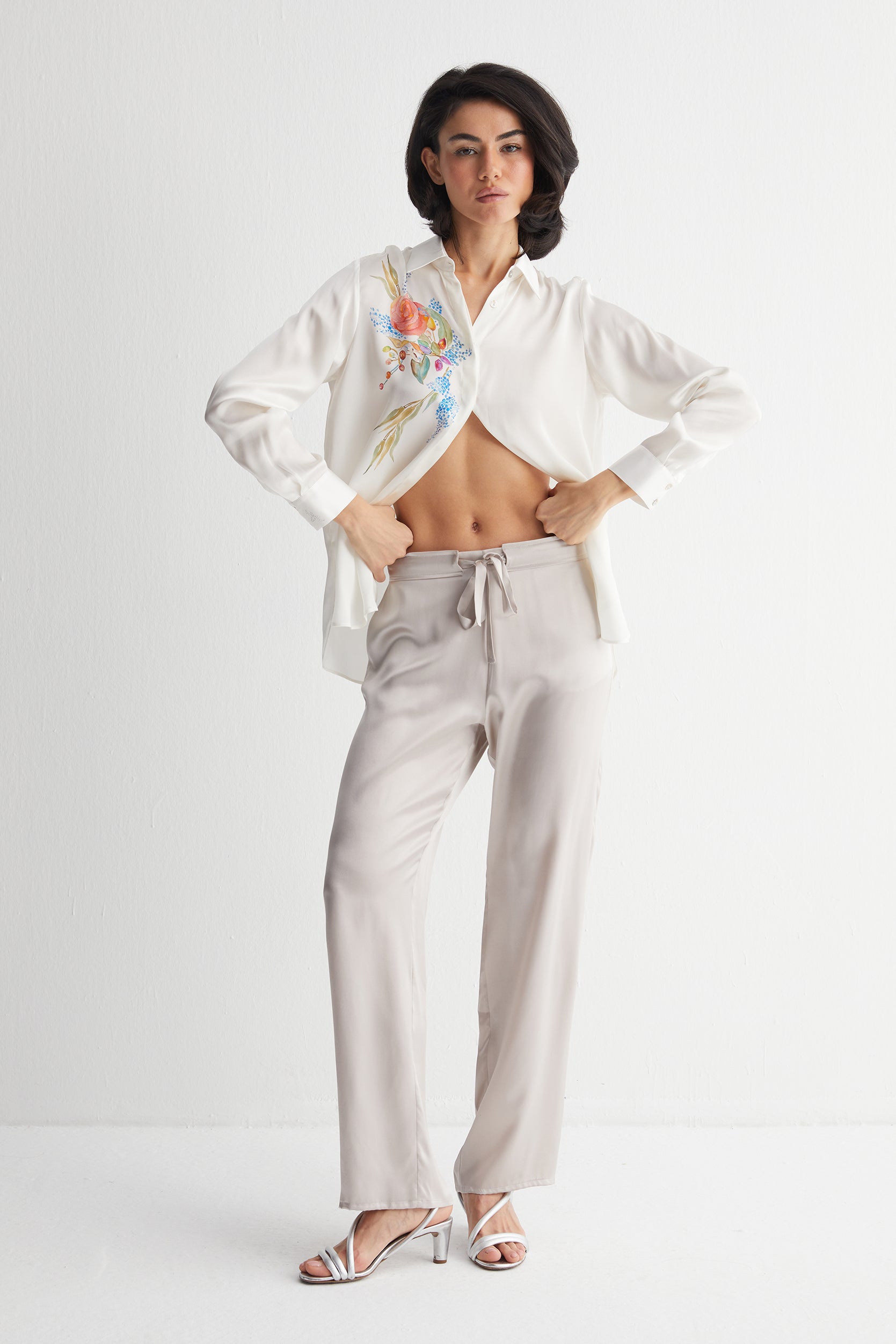 Saf ipeğin doğal akıcılığı ve yumuşak dokusuyla tasarlanan Beyaz Nature %100 İpek Baskılı Gömlek, zarif çiçek desenleriyle hareket kazanıyor. Hafif ve nefes alabilen kumaşı gün boyu rahat bir his sunarken, klasik yaka detayı ile zamansız bir stil yaratıyor. Özel olarak işlenen desenleri, her kombine farklı bir dokunuş katıyor.