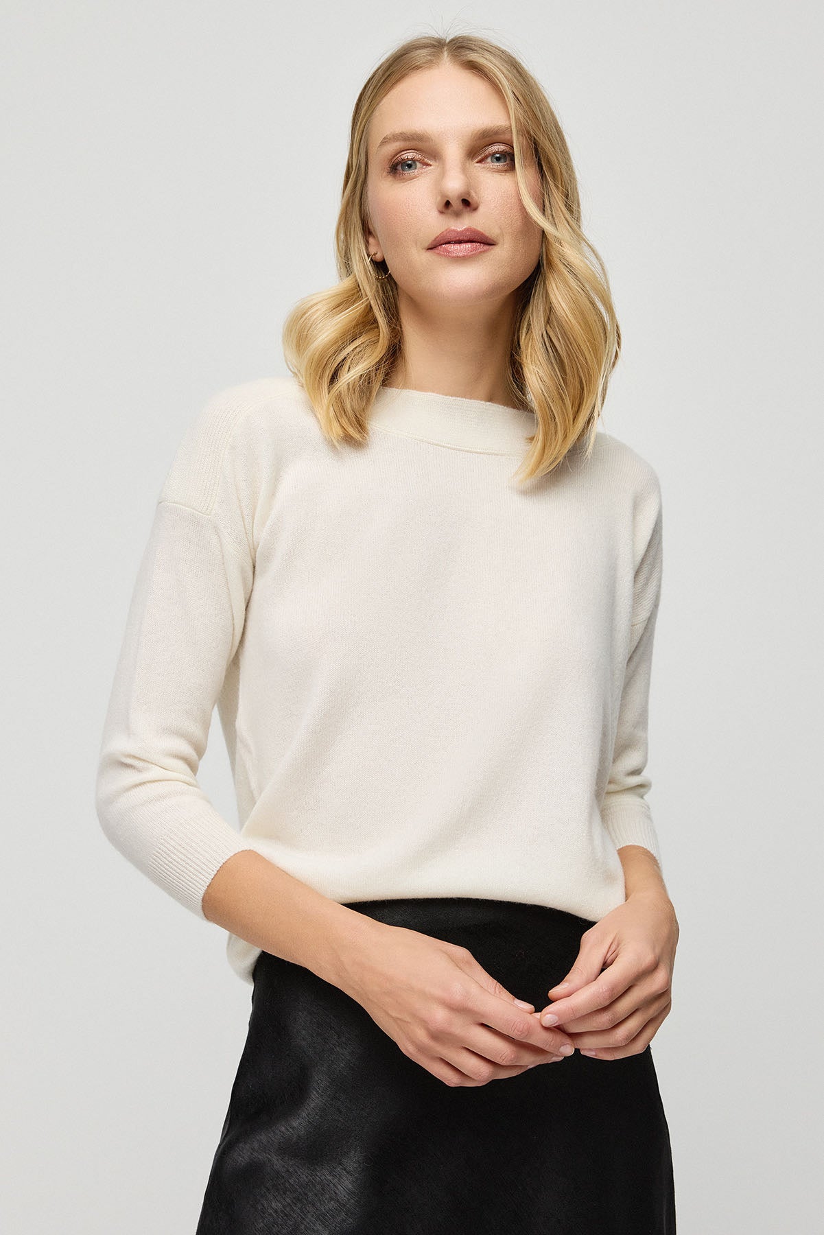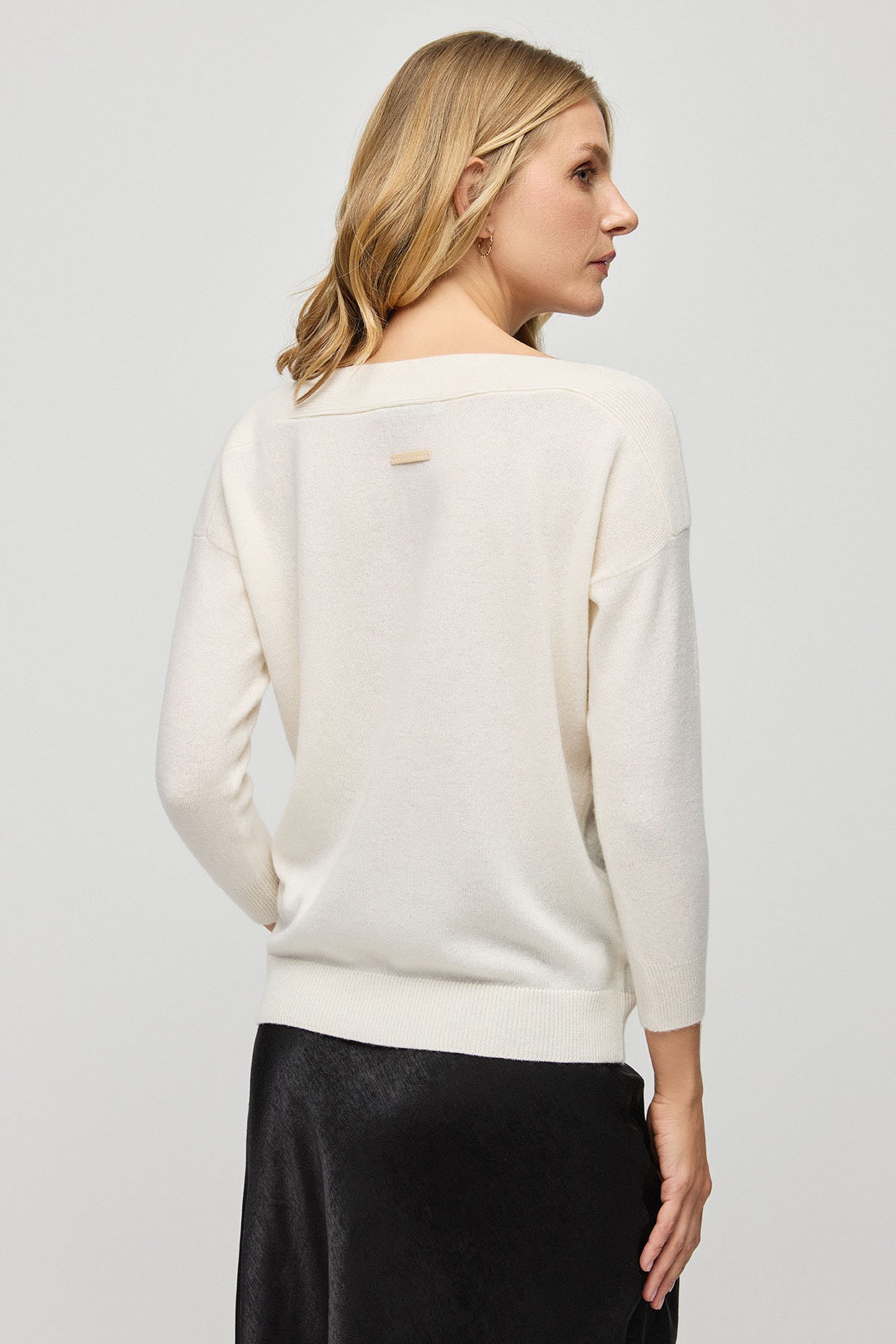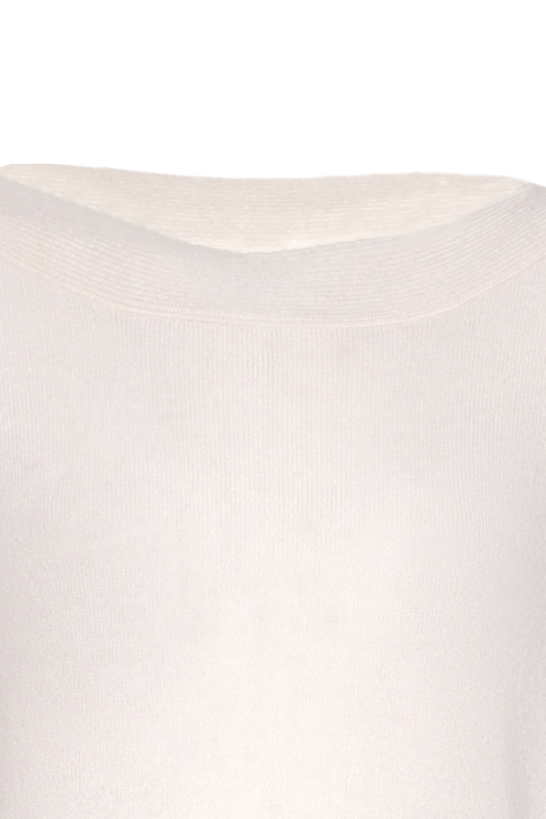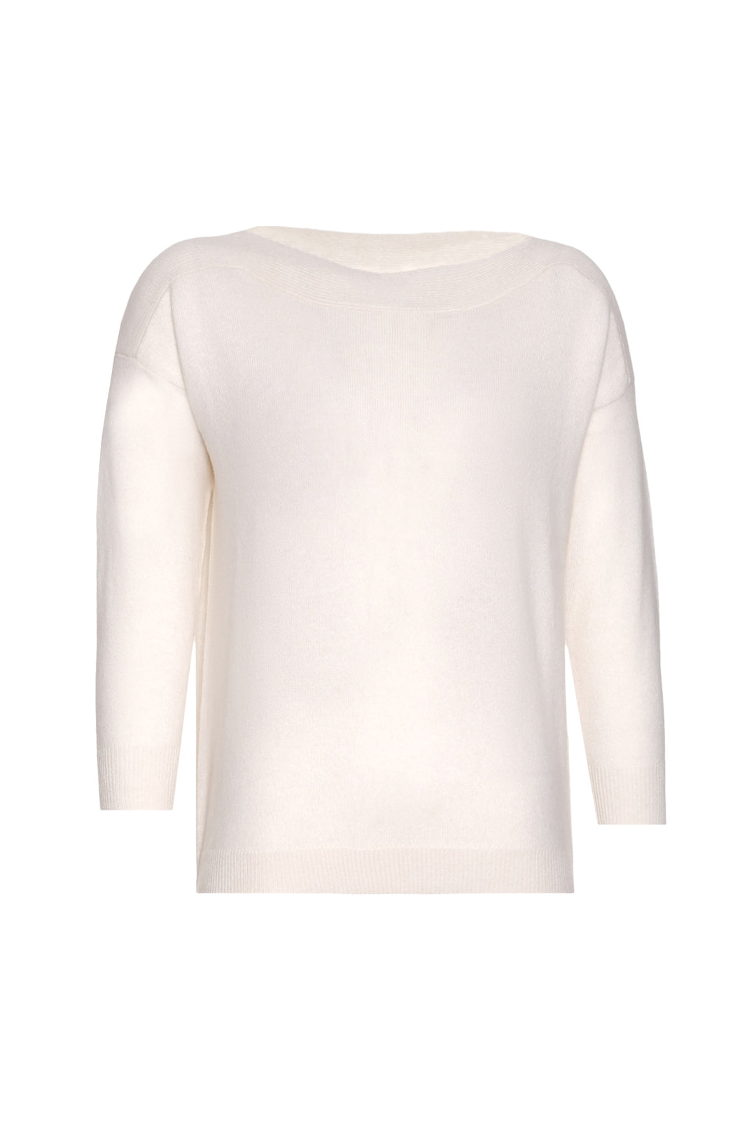 Beyaz Saf Kaşmir Isabella Kayık Yaka Kadın Kazak