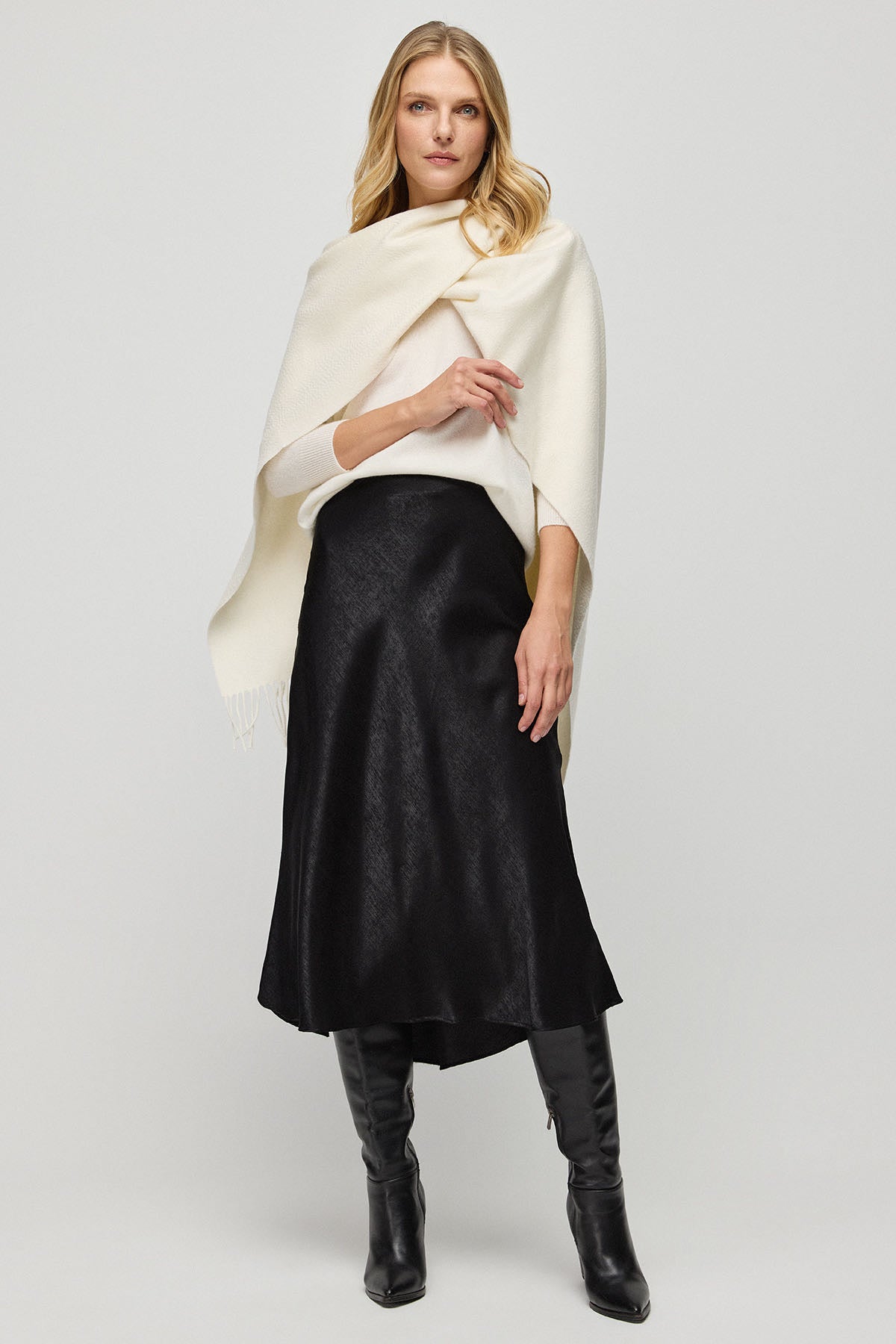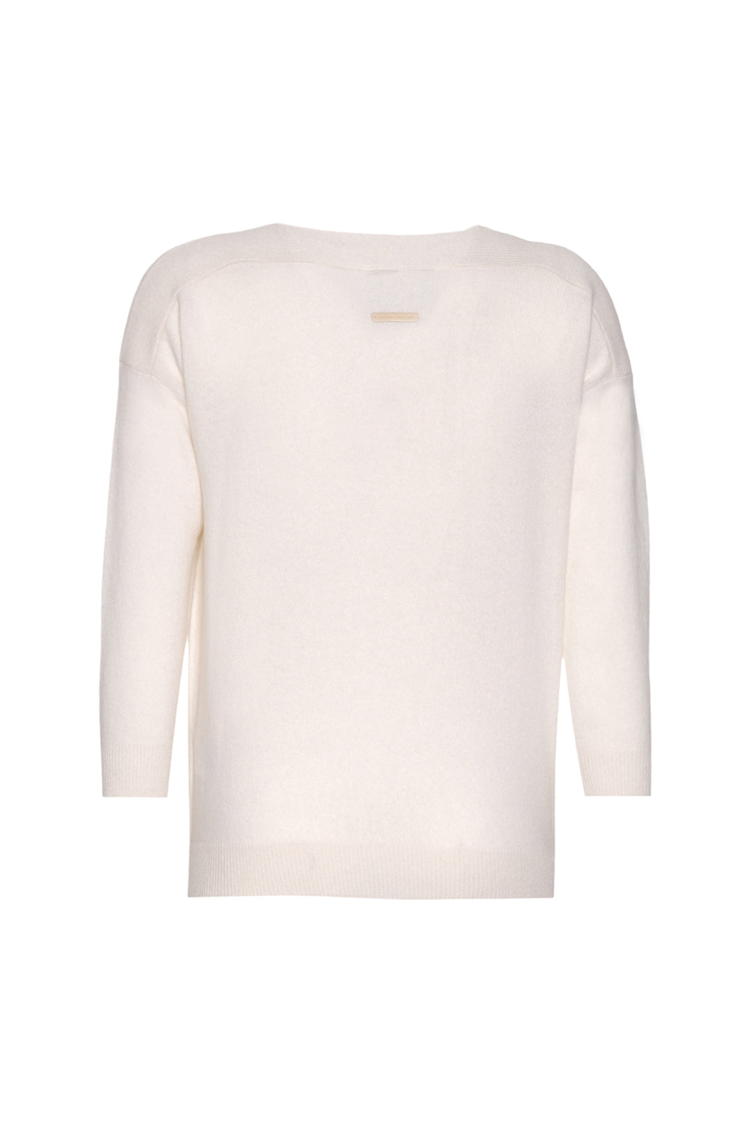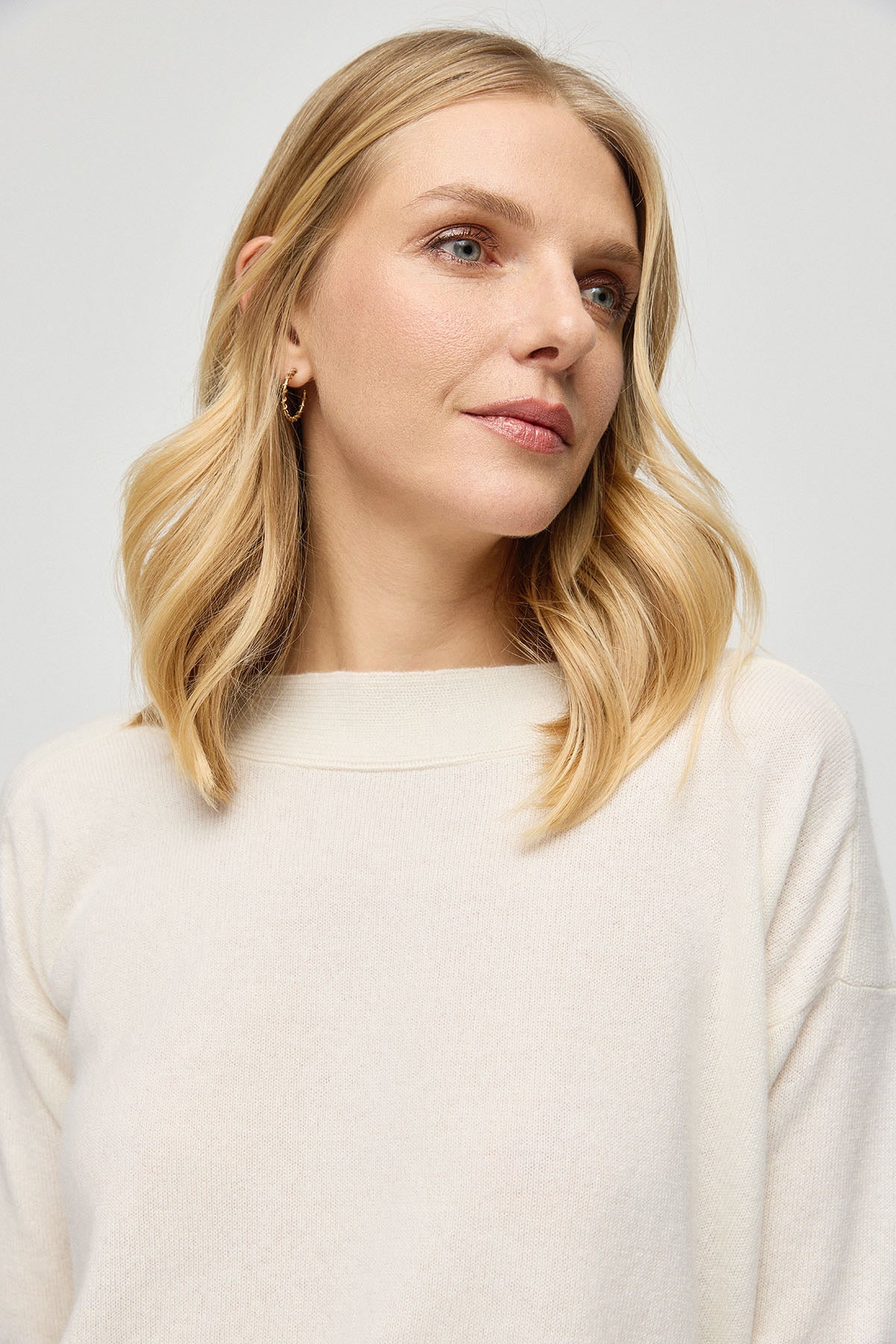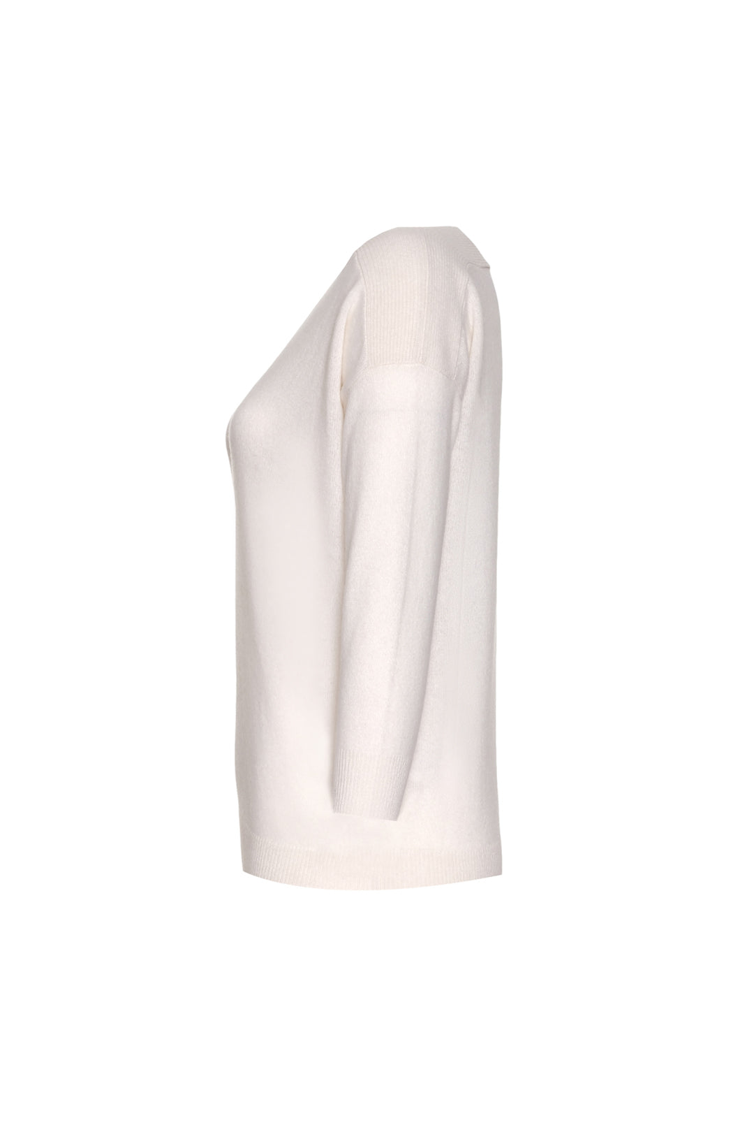 Beyaz Saf Kaşmir Isabella Kayık Yaka Kadın Kazak
