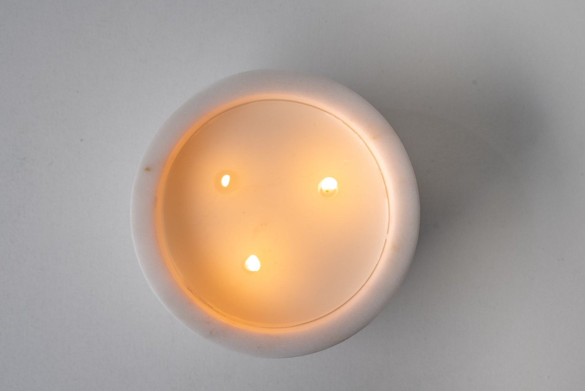 - Doğal mermer kasesi, her bir mumun eşsiz olmasını sağlar.