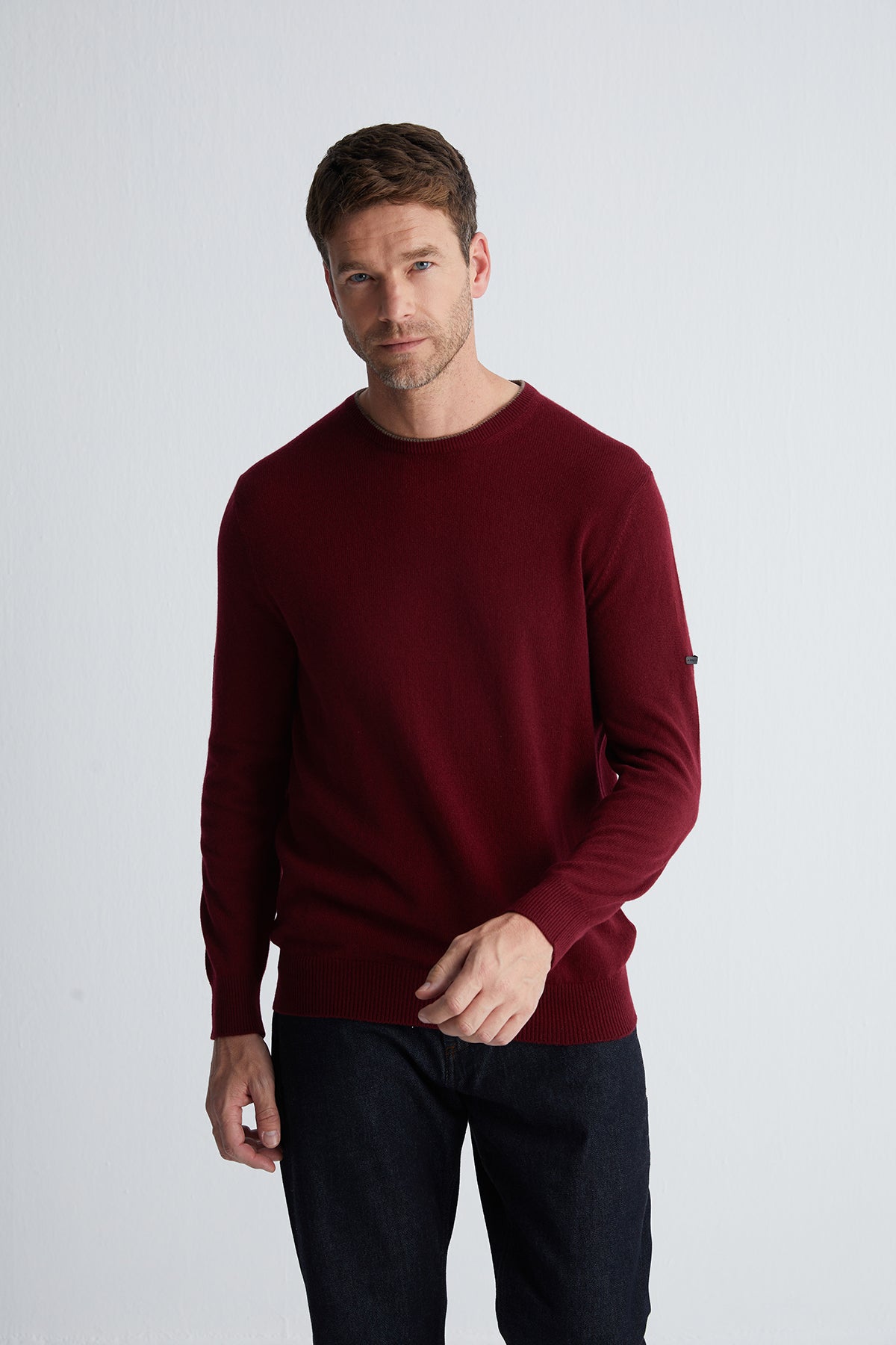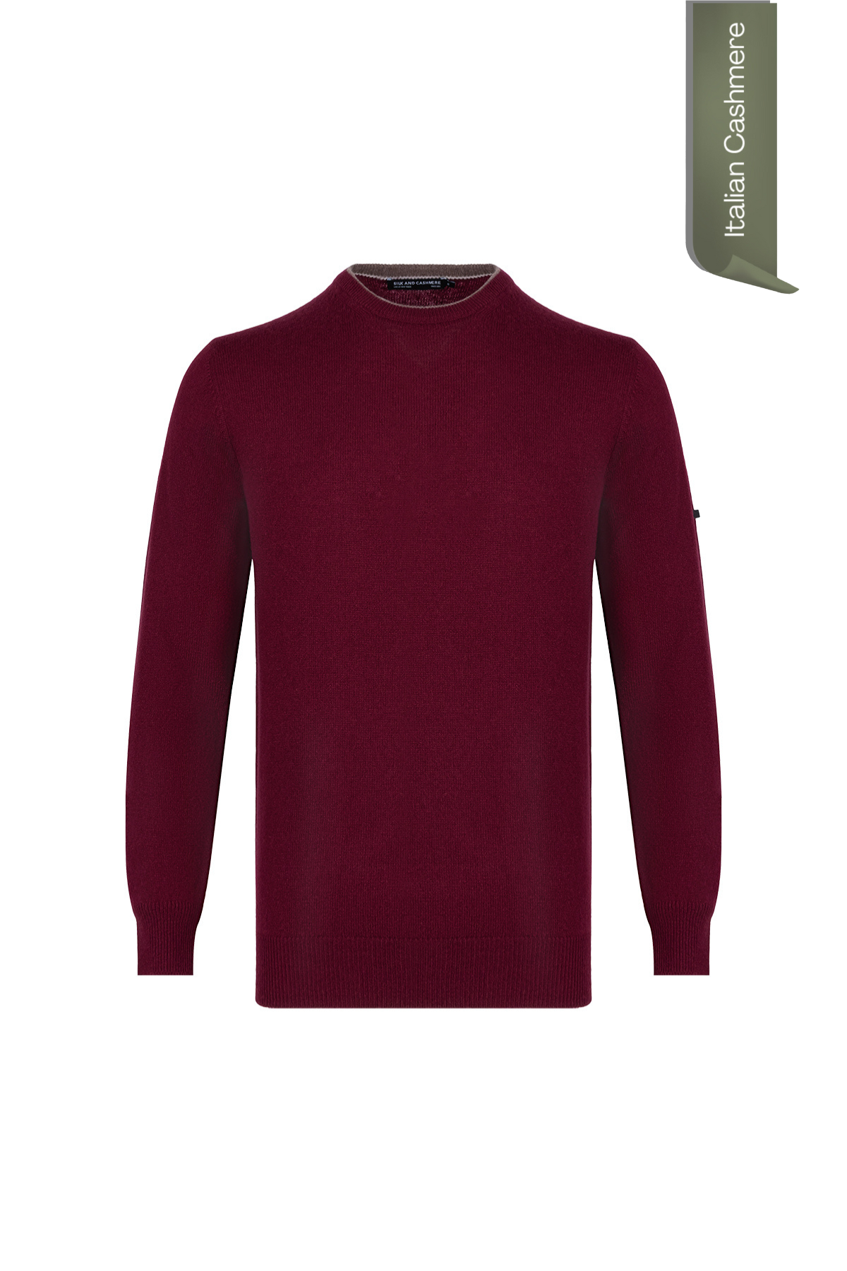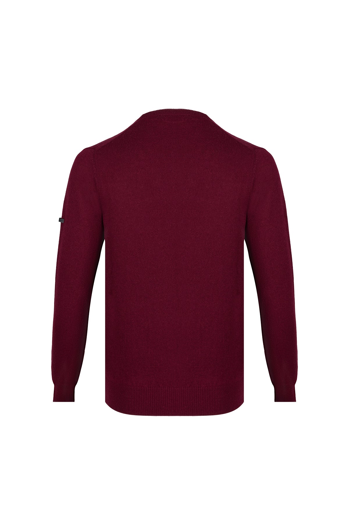 Bordo Franco Saf Kaşmir Bisiklet Yaka Kazak