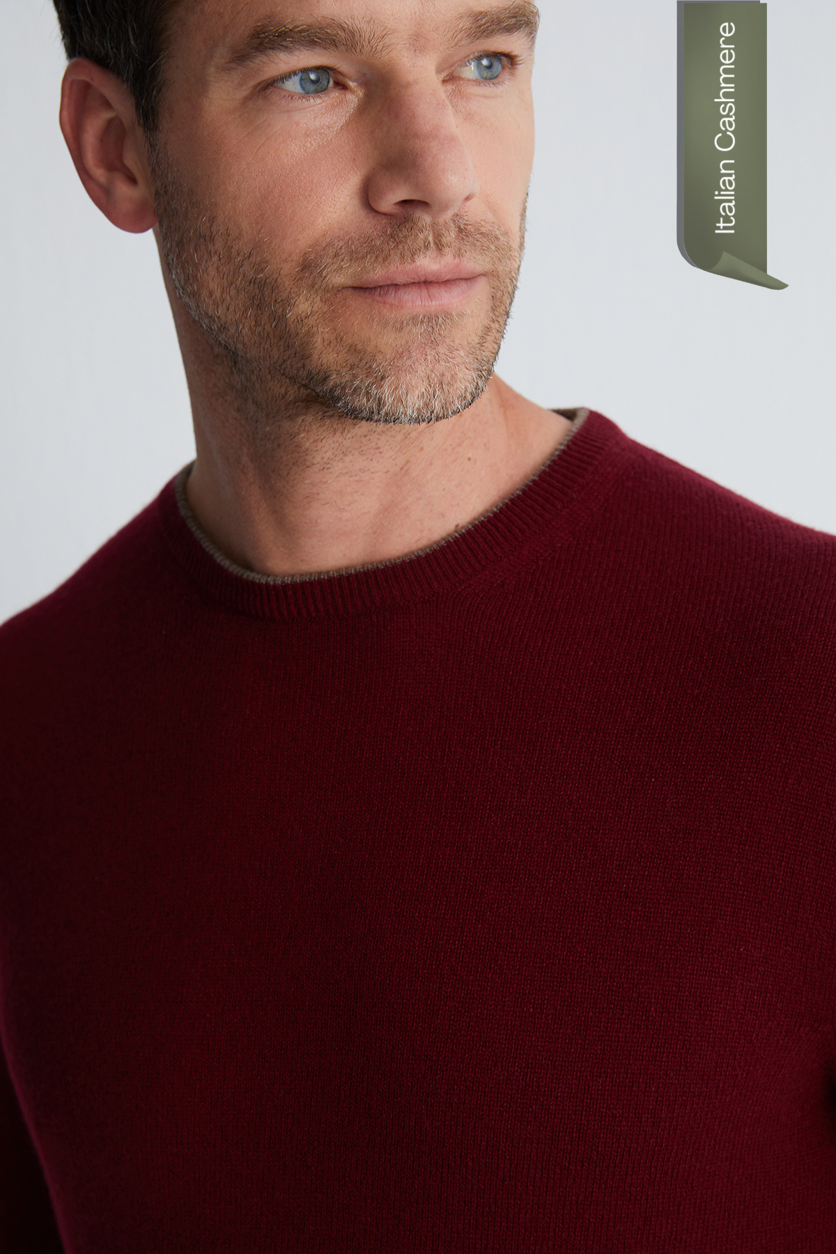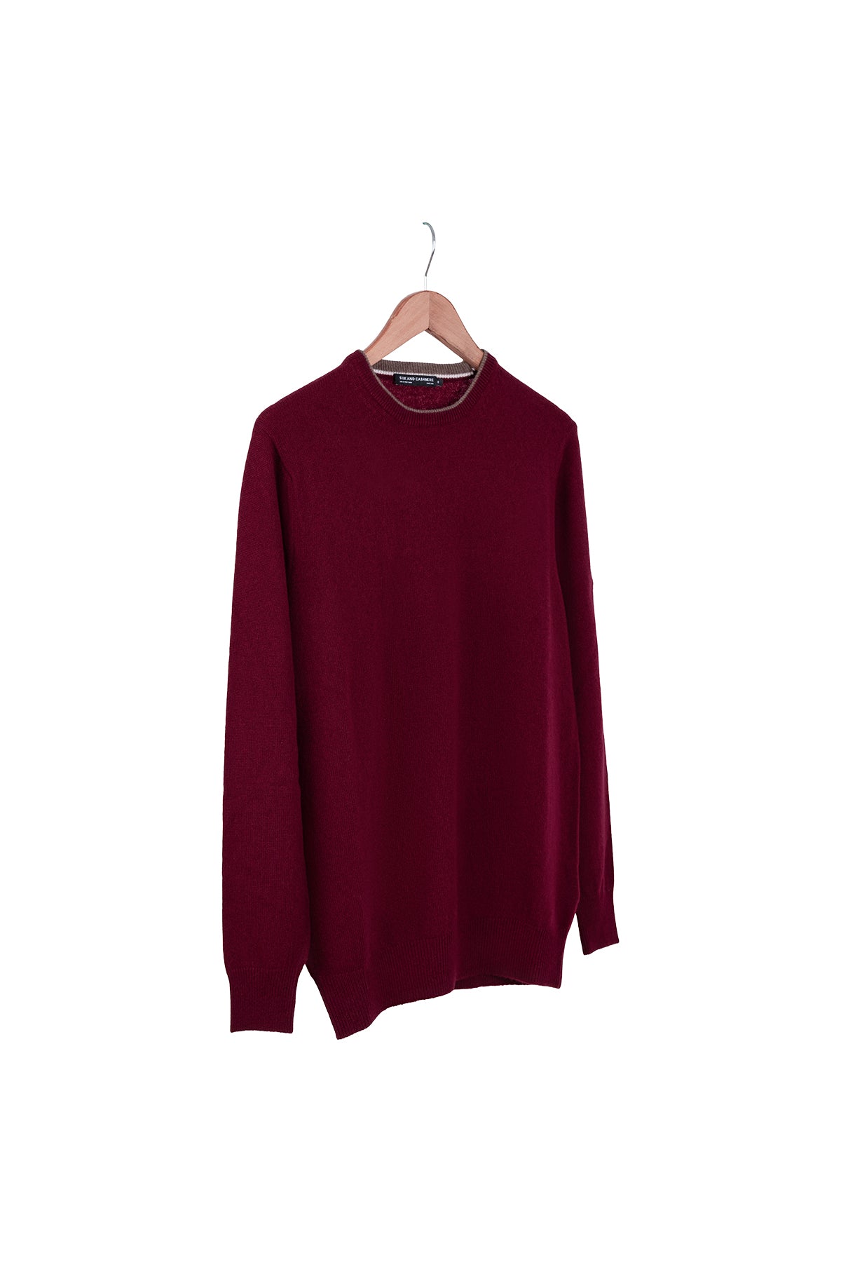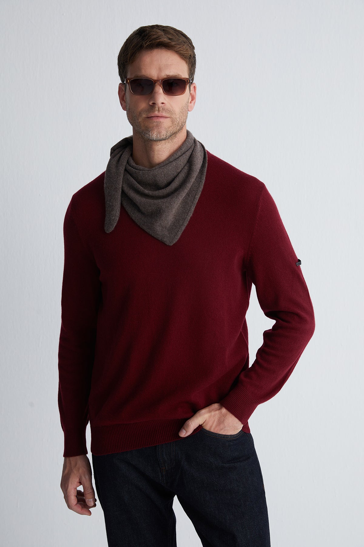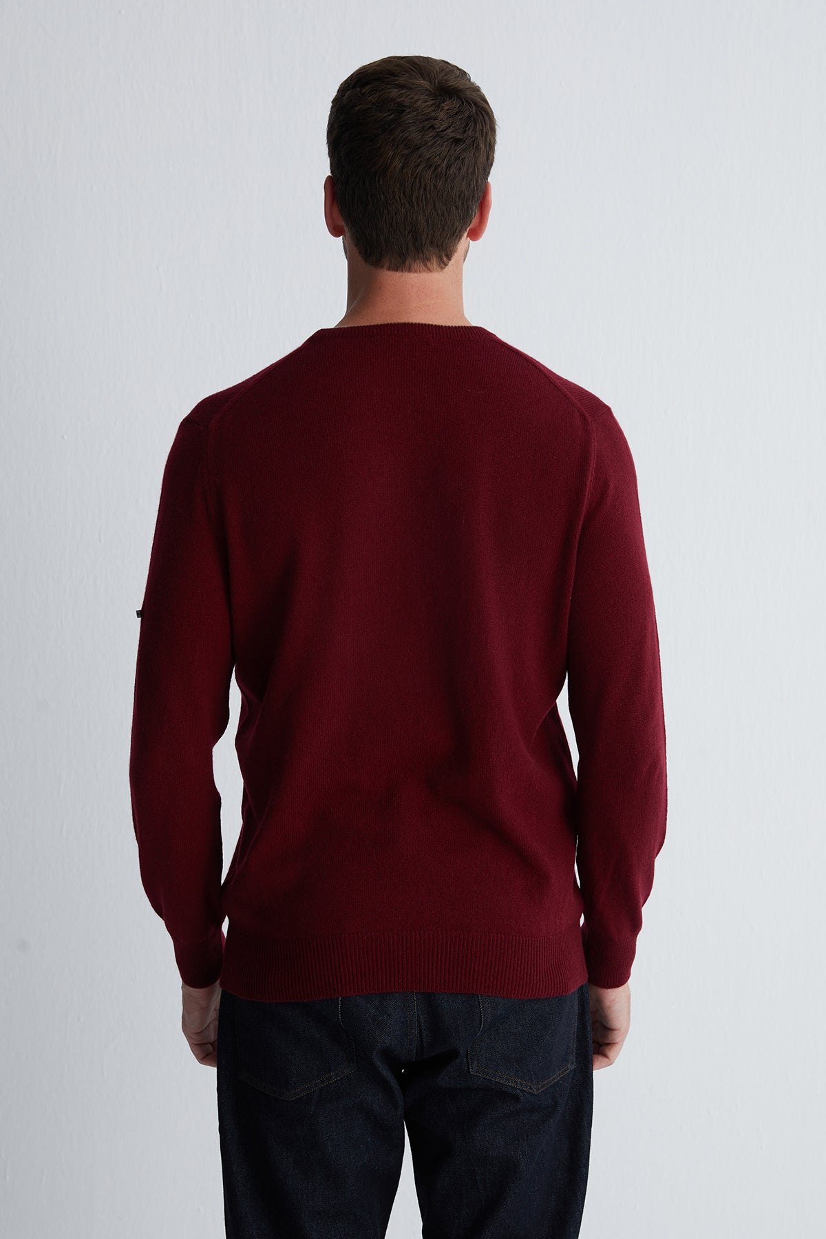 Bordo Franco Saf Kaşmir Bisiklet Yaka Kazak