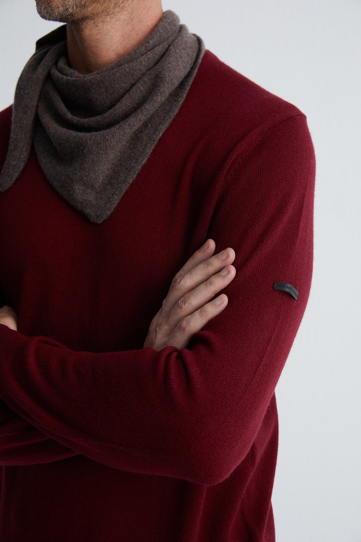 Saf İtalyan kaşmirinden üretilen Franco bisiklet yaka kazak, bordo renginin sıcak tonuyla öne çıkar. İnce ve pürüzsüz dokusu sayesinde teninizle kolayca uyumlanır; doğal yapısı sayesinde nefes alır ve yumuşaklık hissi gün boyu devam eder. Yaka içindeki renkli kontrast şerit detayı, klasik formu modern bir çizgiyle tamamlar.