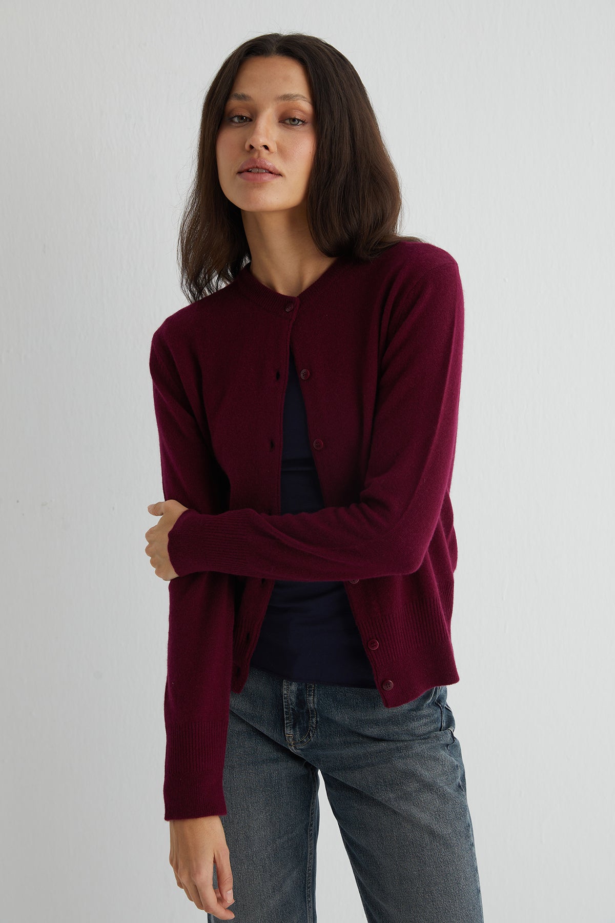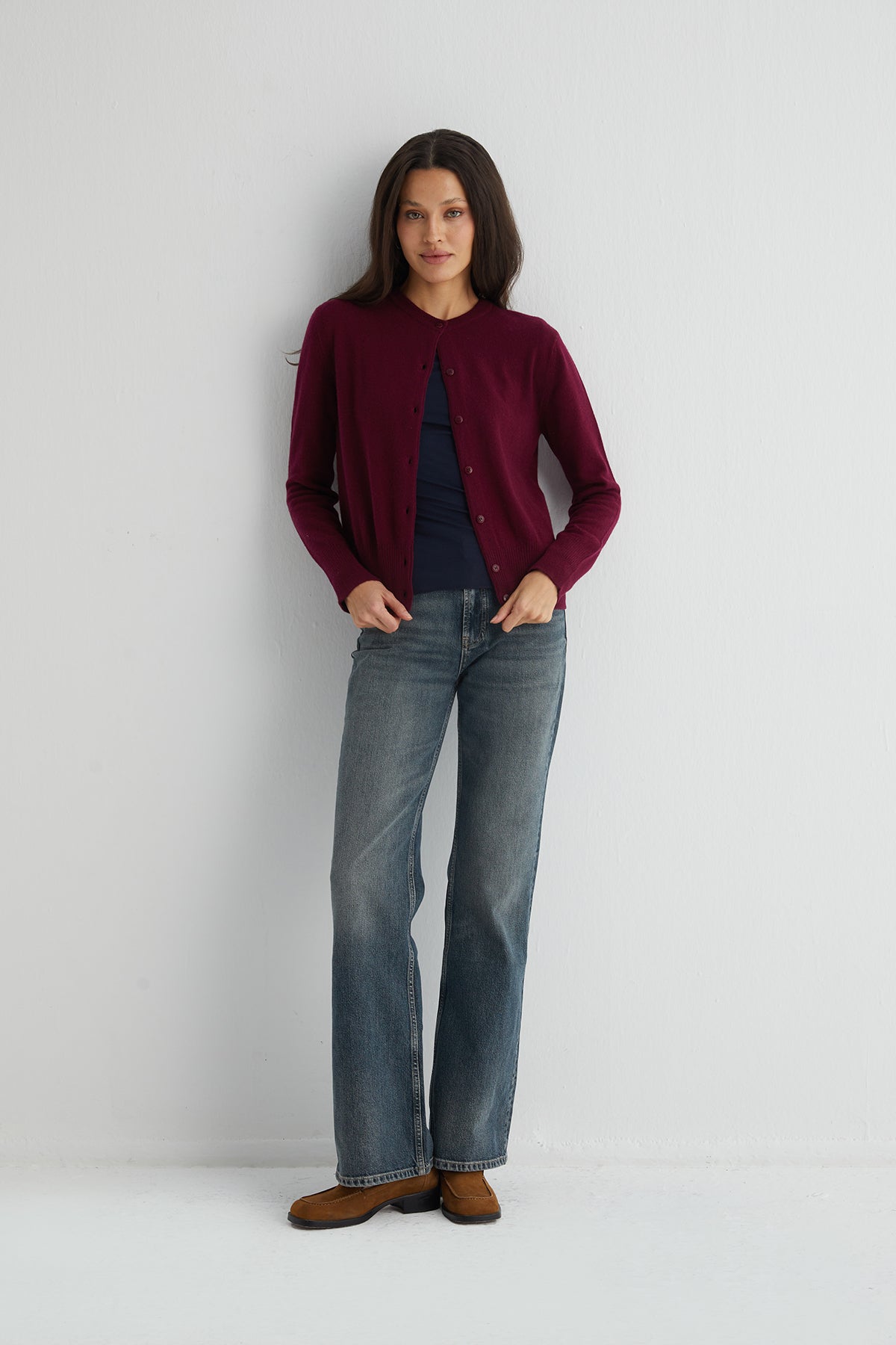 Bordo Lilly Saf Kaşmir Bisiklet Yaka Hırka