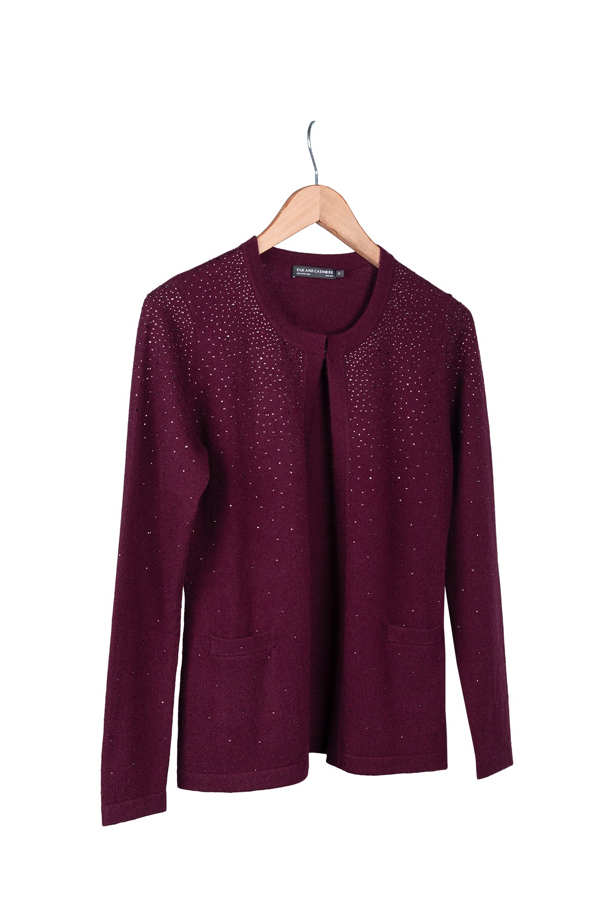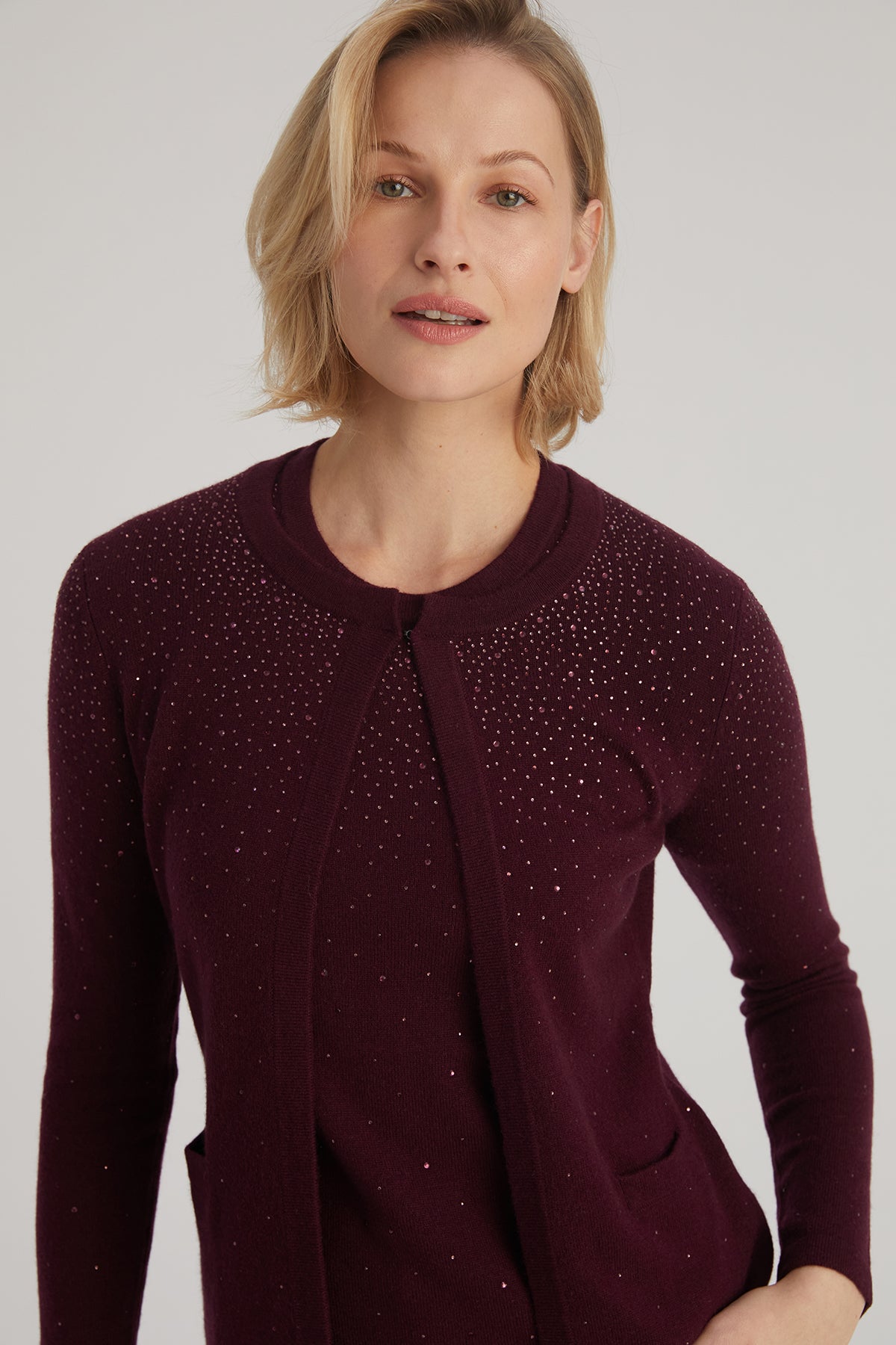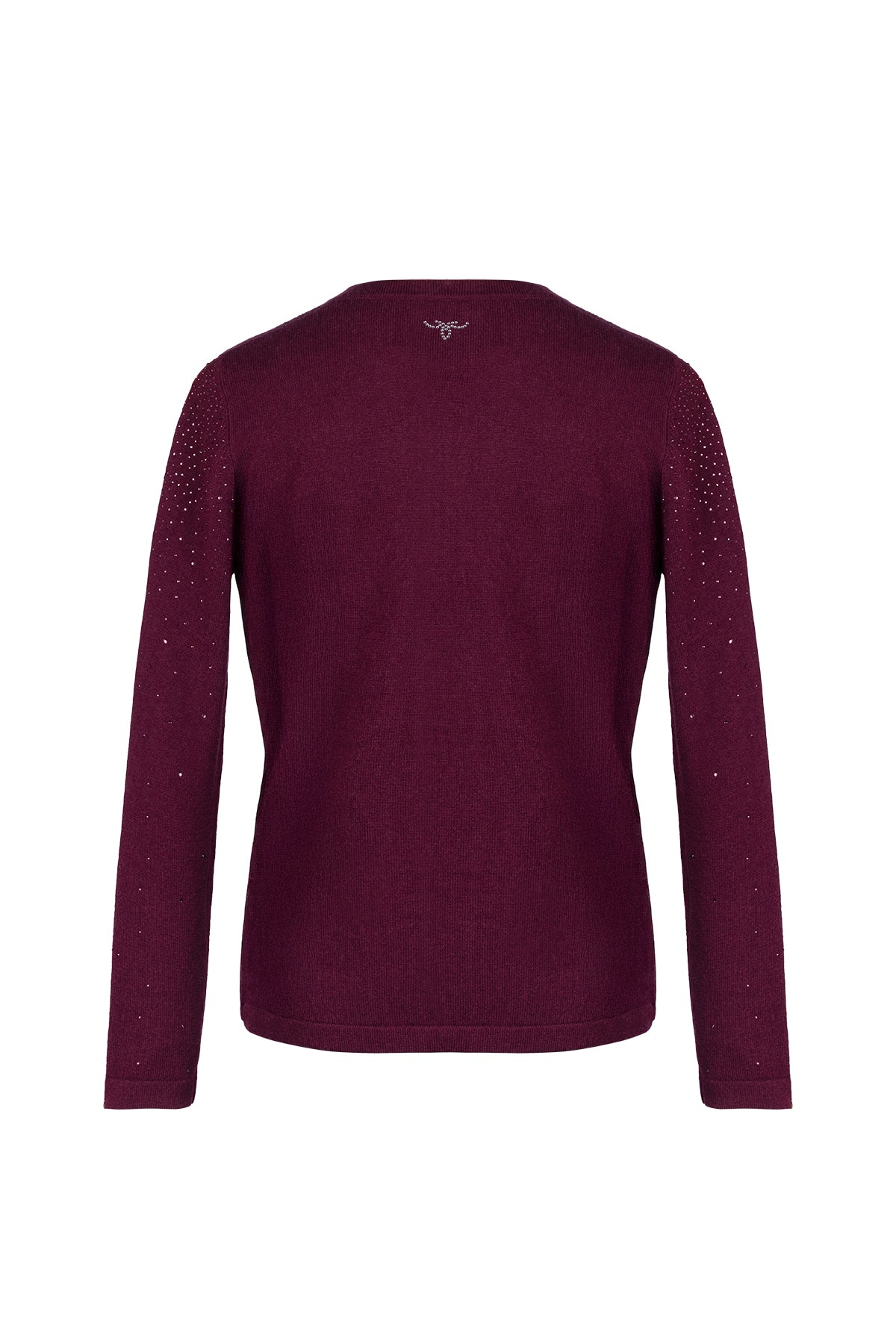 Bordo Merill Yün Kaşmir Yuvarlak Yaka Taşlı Hırka