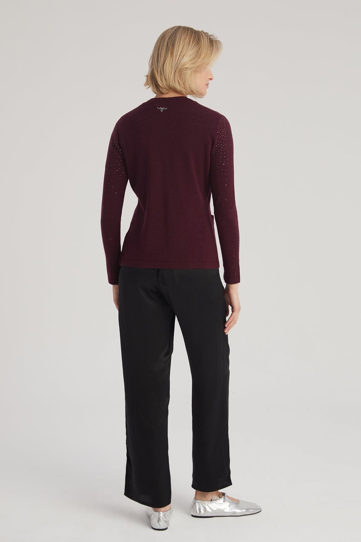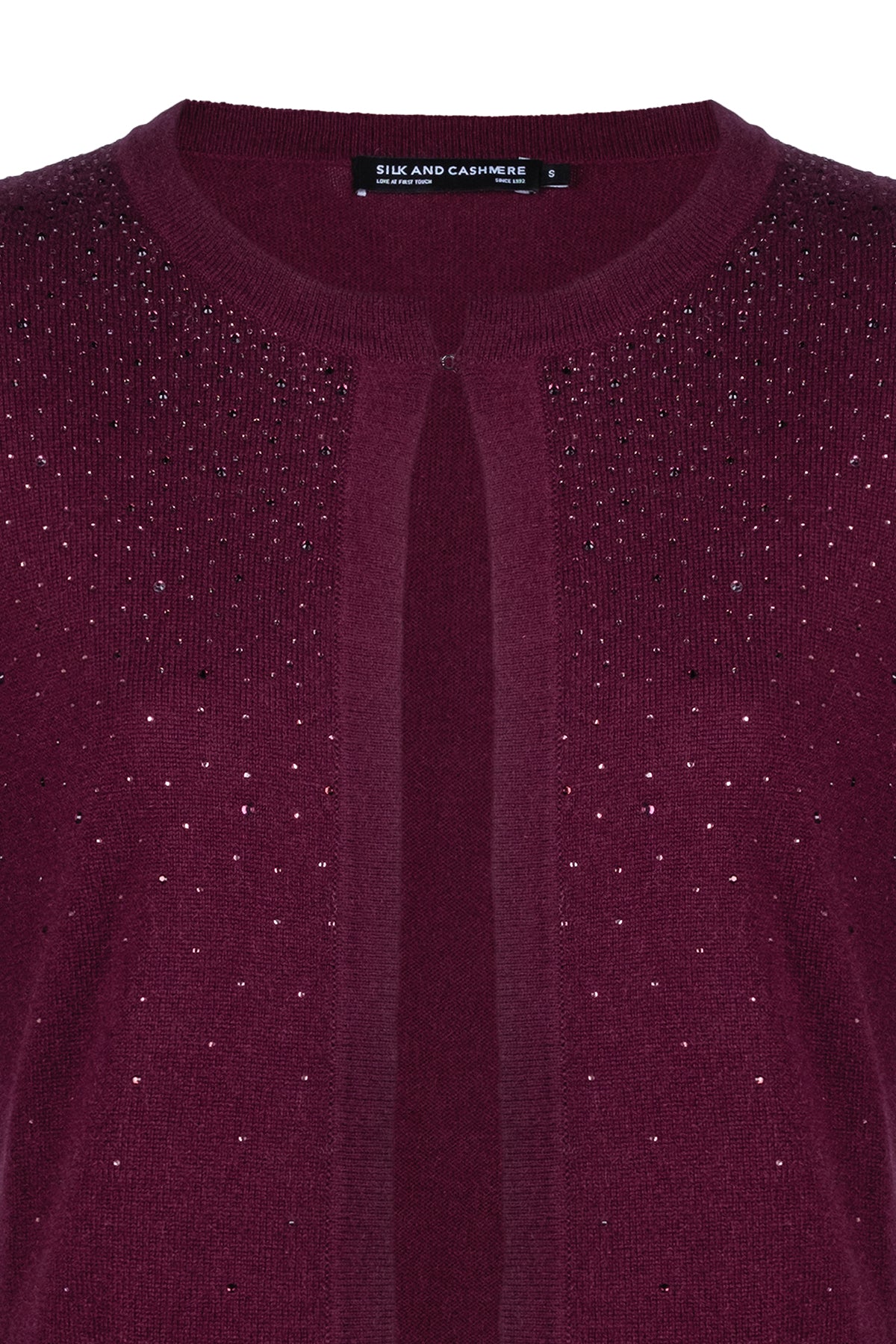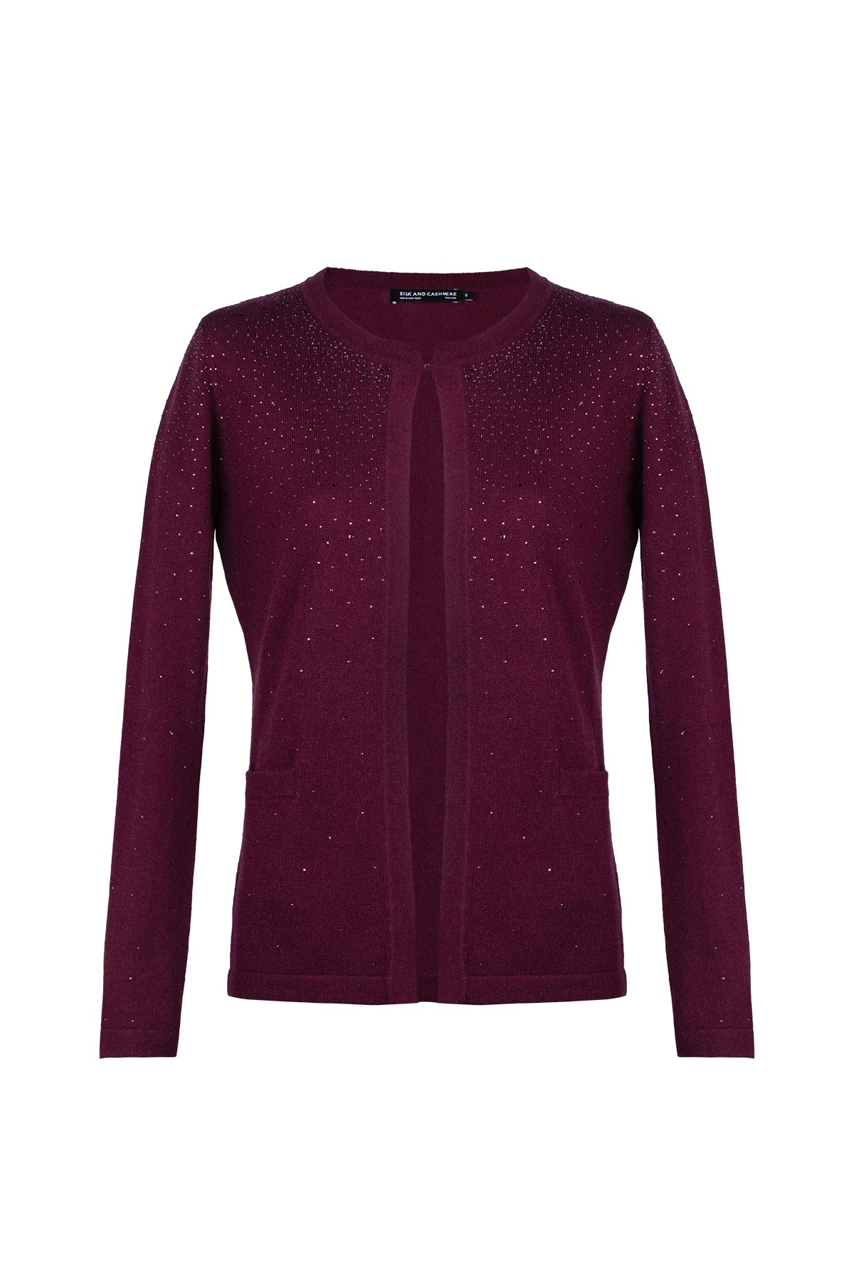Bordo Merill Yün Kaşmir Yuvarlak Yaka Taşlı Hırka