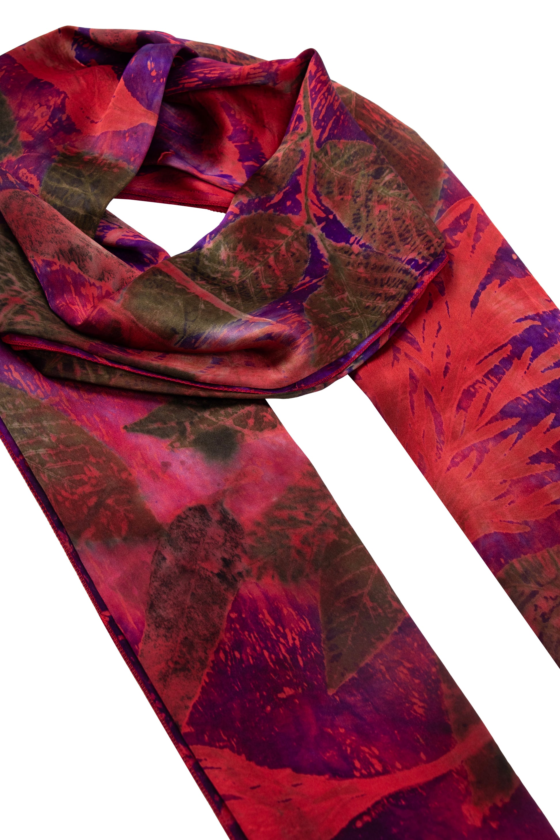 Bu muhteşem bordo şal, doğanın eşsiz renklerinden ilham alınarak tasarlandı. %100 saf ipekten üretilmiş olup, her dokunuşta yumuşaklık ve zarafet hissini yaşatır. El baskısı tekniği ile hazırlanan bu özel şal, sürdürülebilir ve ekolojik üretim yöntemleri ile doğaya saygılıdır. Şık desenleri ve canlı renkleri, stilinize sofistike bir dokunuş katacaktır.