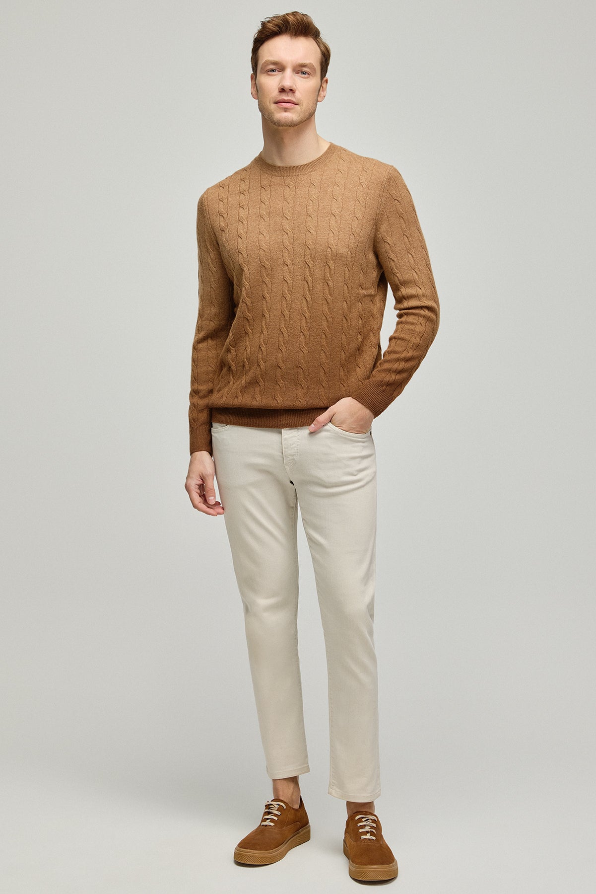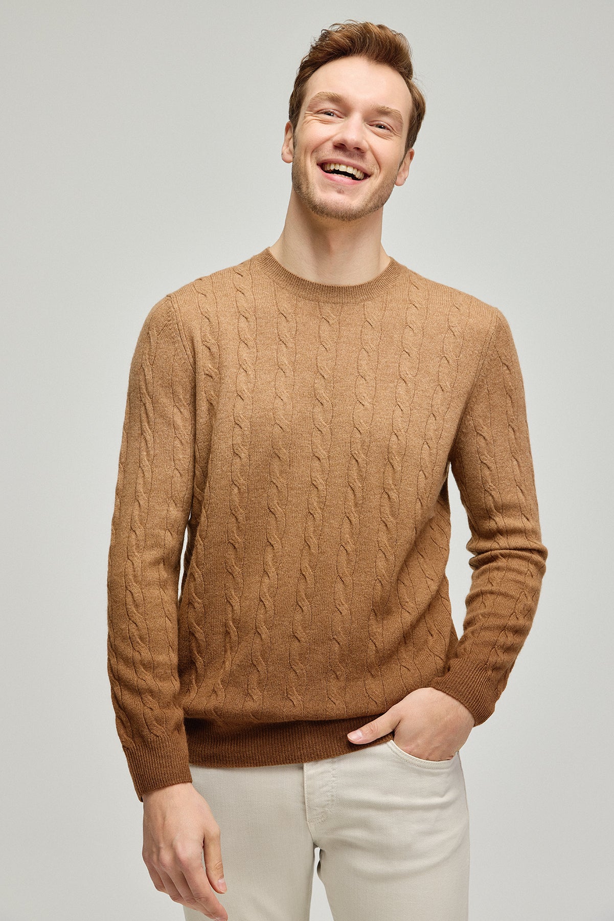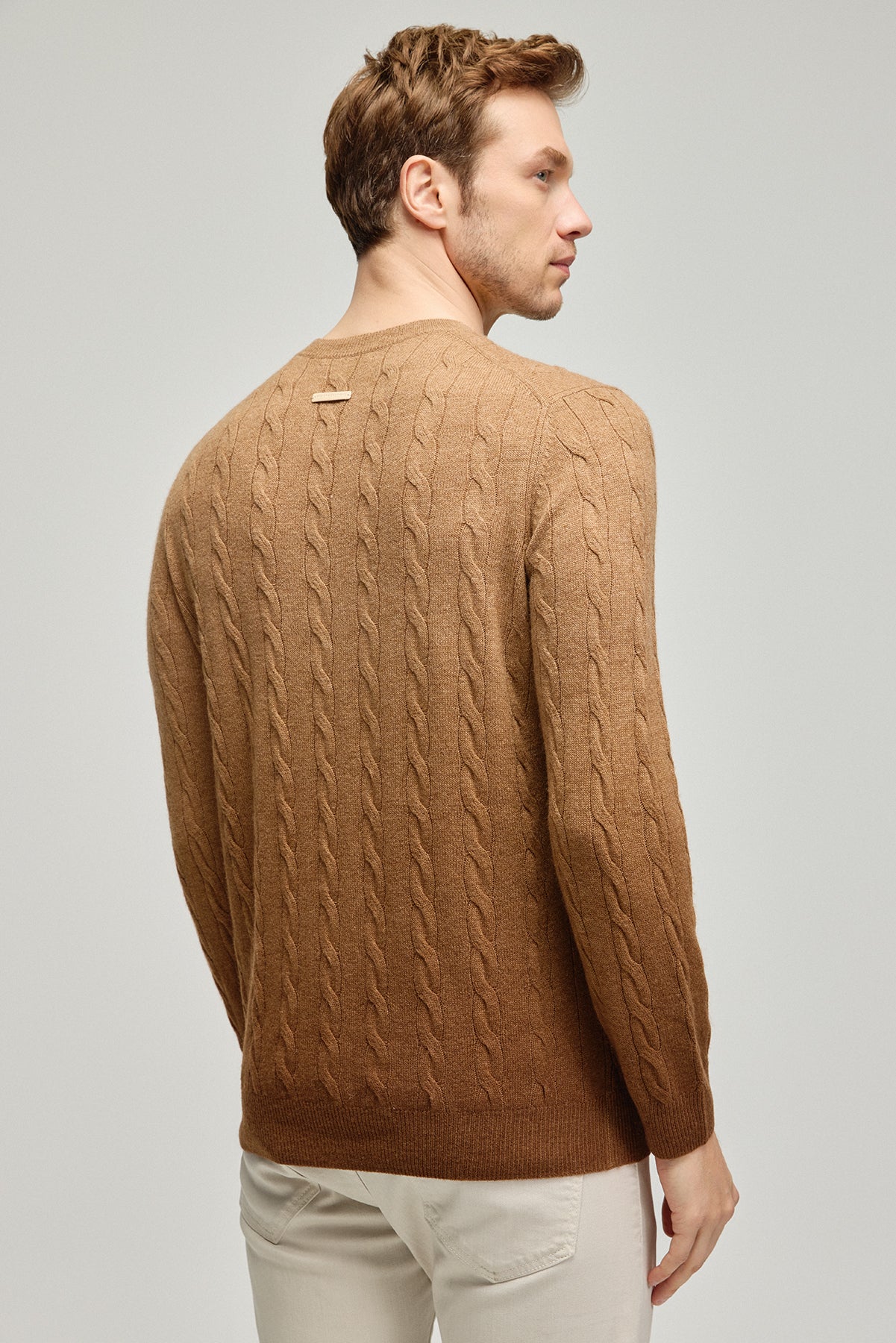 Camel Amerigo Kaşmir Yün Saç Örgülü Degrade Yuvarlak Yaka Uzun Kollu Erkek Kazak