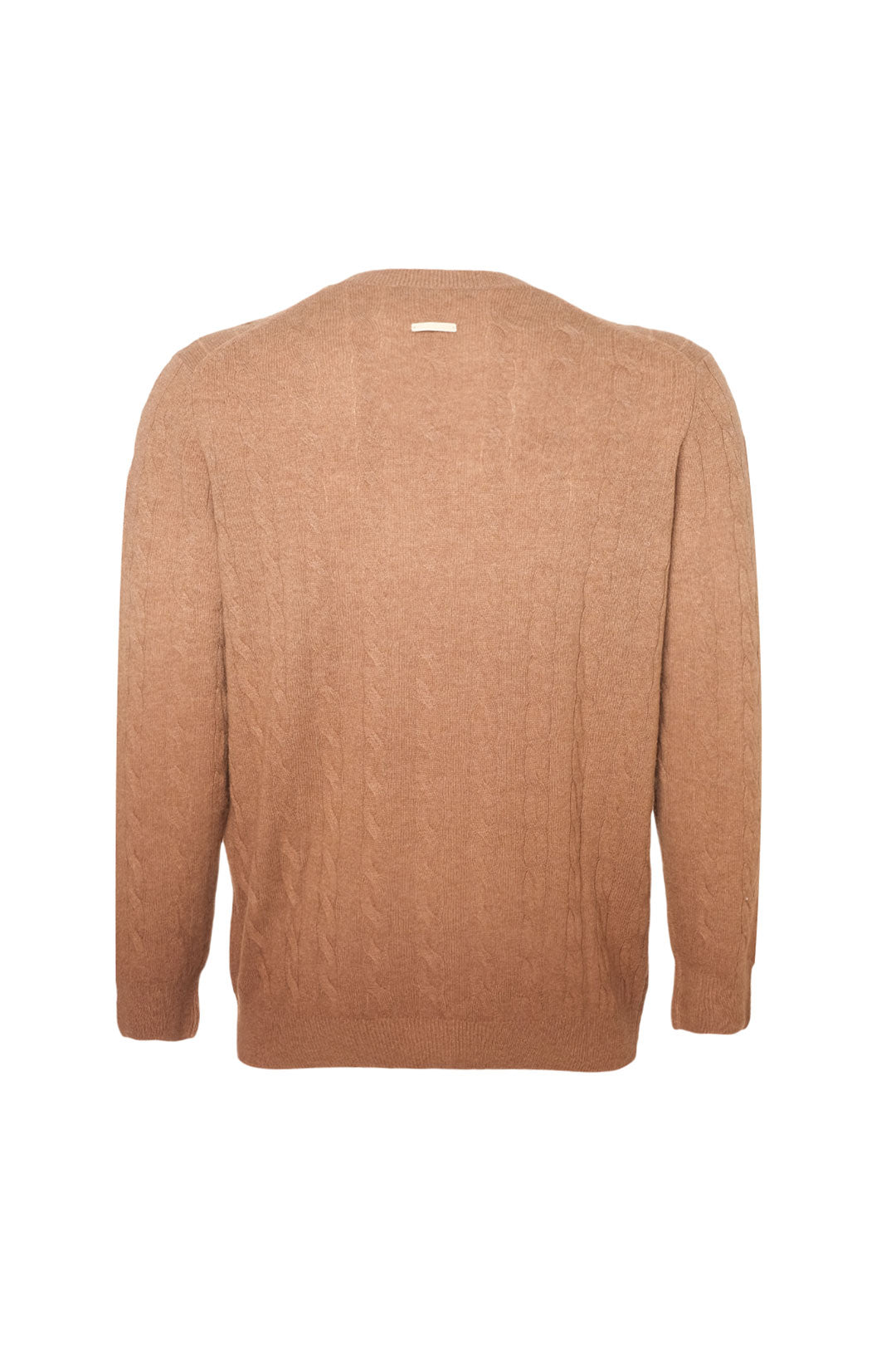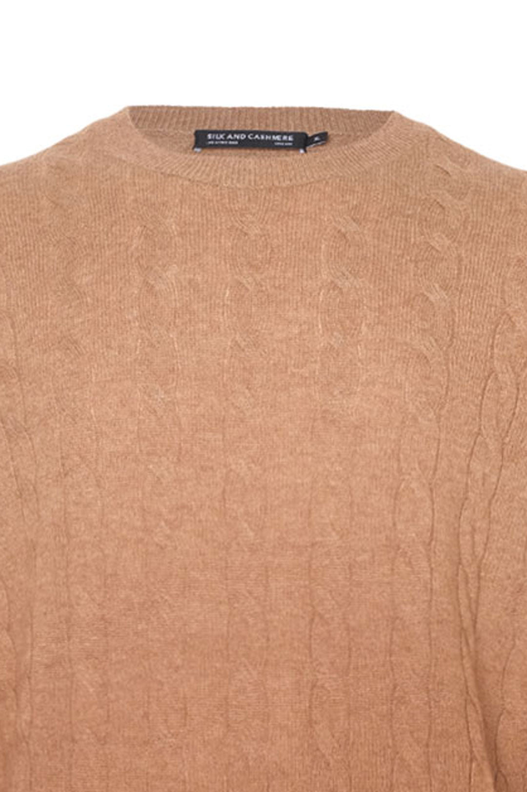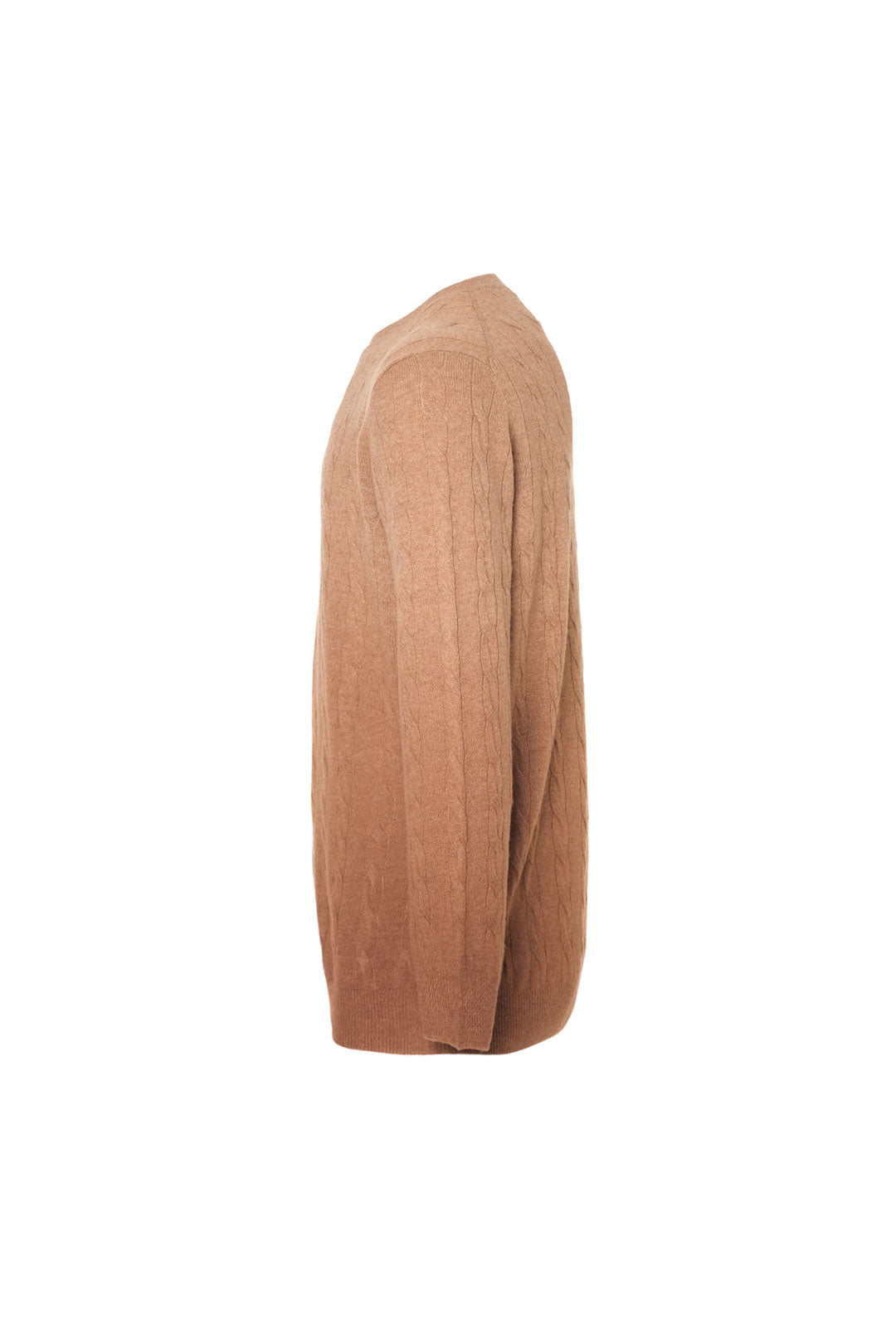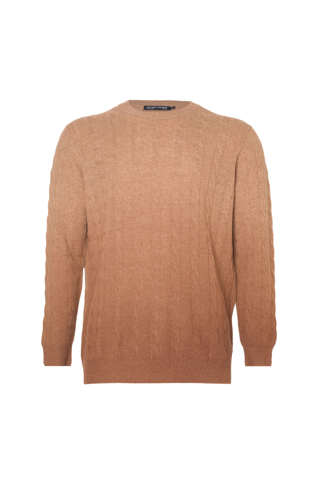 Camel Amerigo Kaşmir Yün Saç Örgülü Degrade Yuvarlak Yaka Uzun Kollu Erkek Kazak