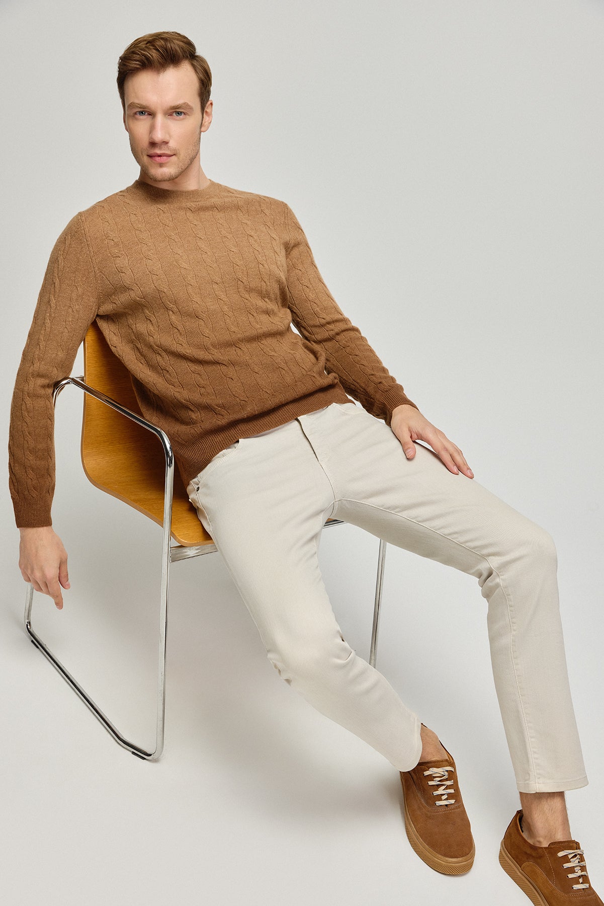 Camel Amerigo Kaşmir Yün Saç Örgülü Degrade Yuvarlak Yaka Uzun Kollu Erkek Kazak tam size göre ! Bu yuvarlak yakalı, uzun kollu erkek kazağı, kaşmir ve yün karışımından üretilmiştir. Bu sayede inanılmaz derecede yumuşak ve konforlu bir dokuya sahiptir. Benzersiz bir örgü desenine sahip olan bu kazak, kalabalığın arasından gözleri üstünüze çekmenizi sağlayacaktır.