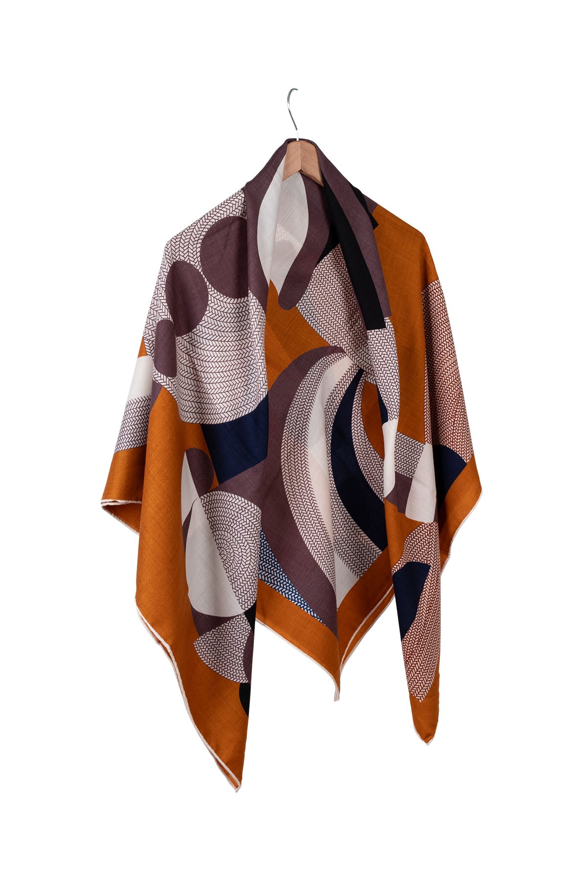 Camel Beyaz Linda Kaşmir Desenli Kare Eşarp 140x140 cm