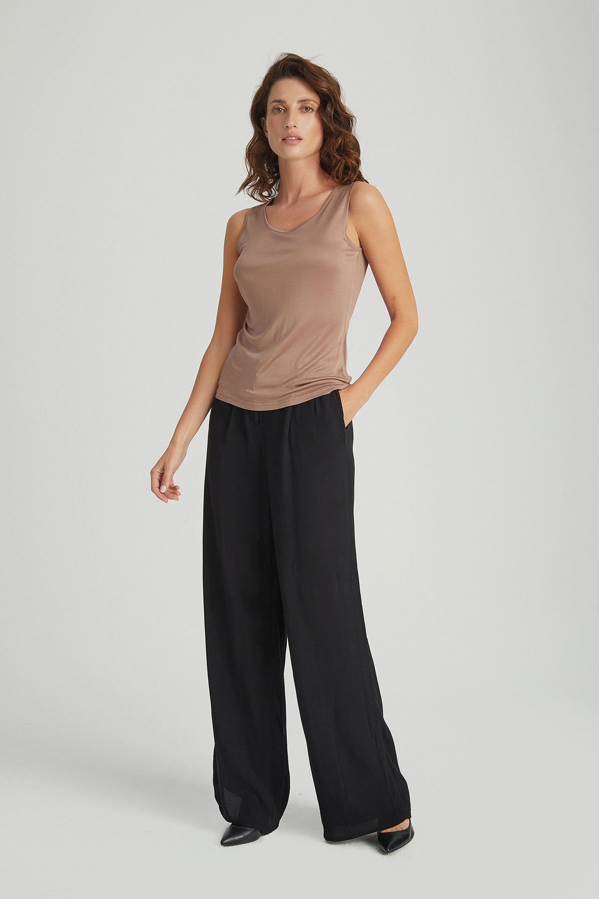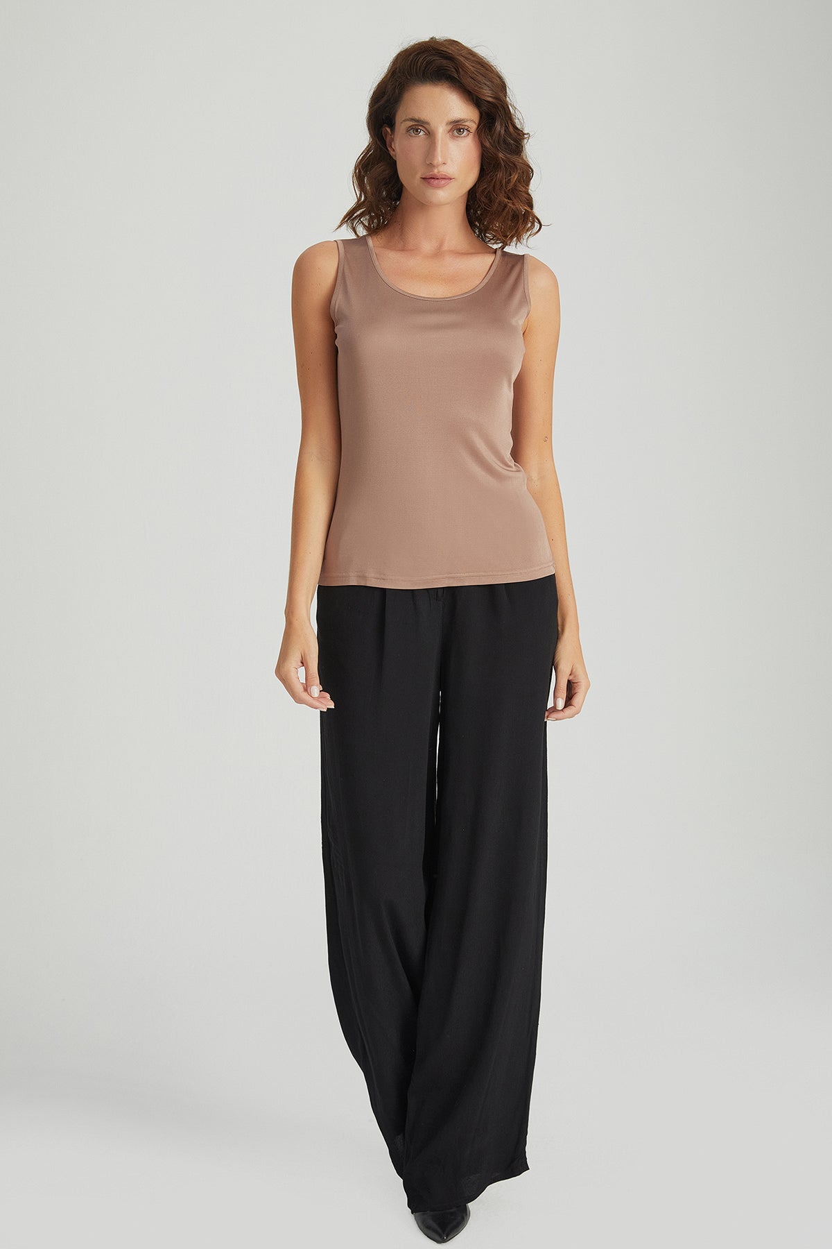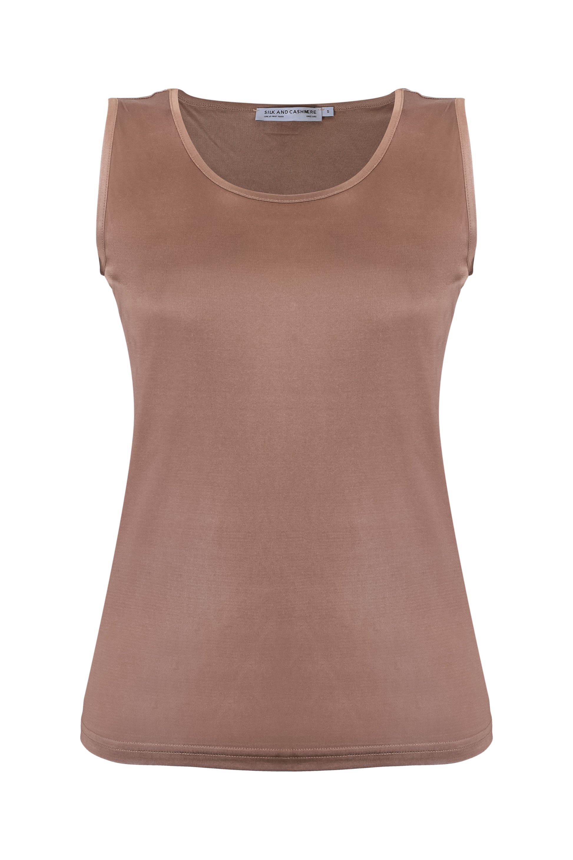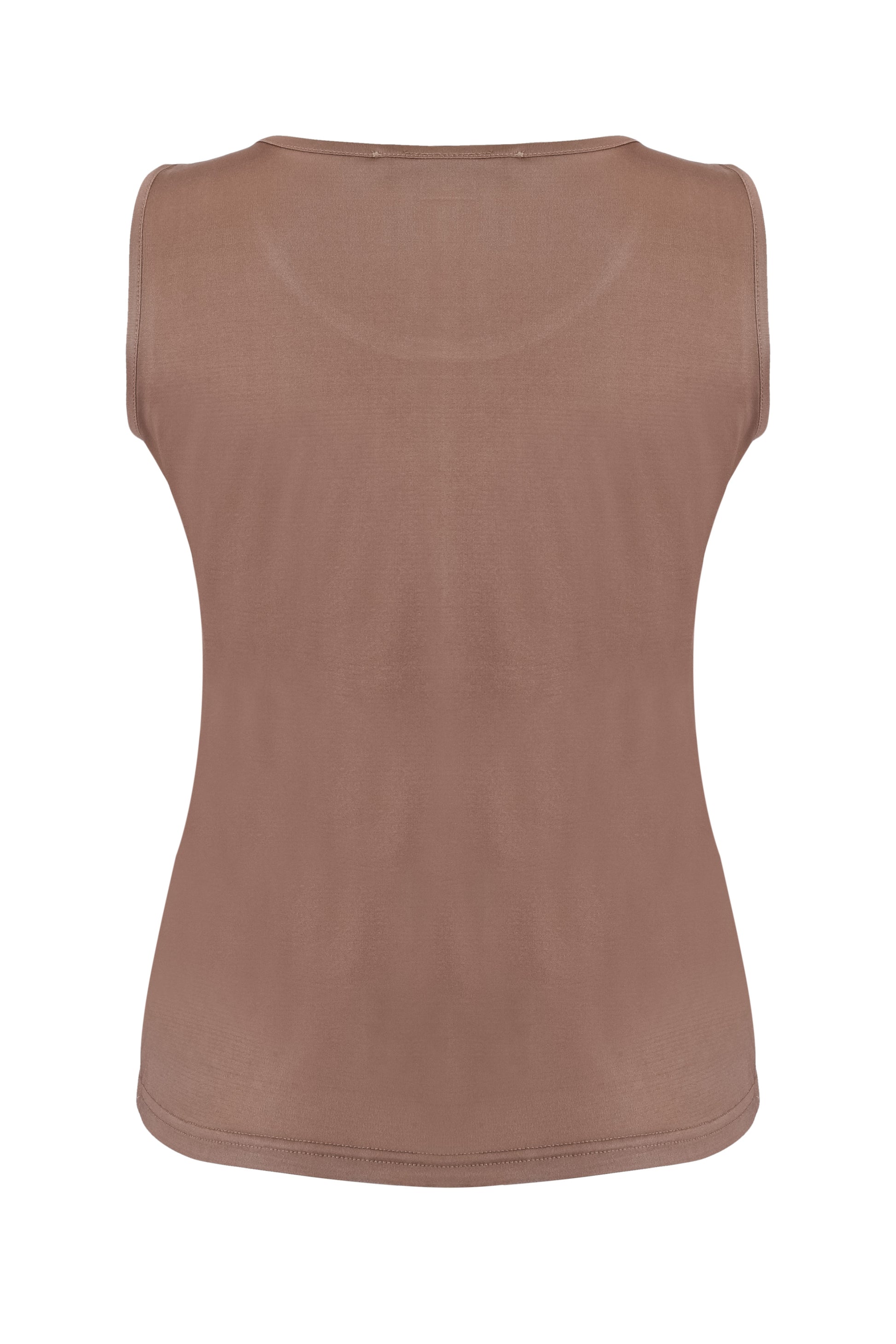 Camel Marina İpekli Yuvarlak Yaka Kolsuz T-Shirt
