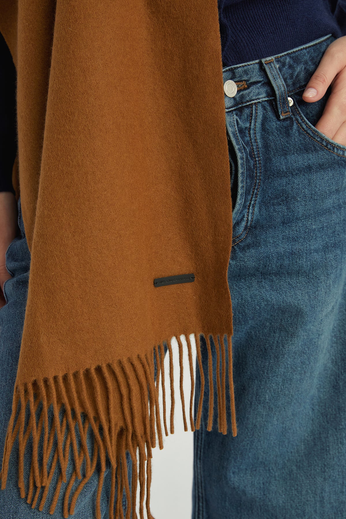 Camel Rose Saf Kaşmir Şal 45cm*160cm+10cm*2cm
