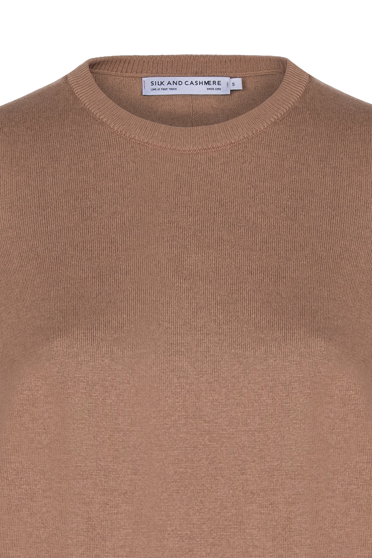 Camel Zoe İpek Kaşmir Yuvarlak Yaka Kısa Kollu Triko