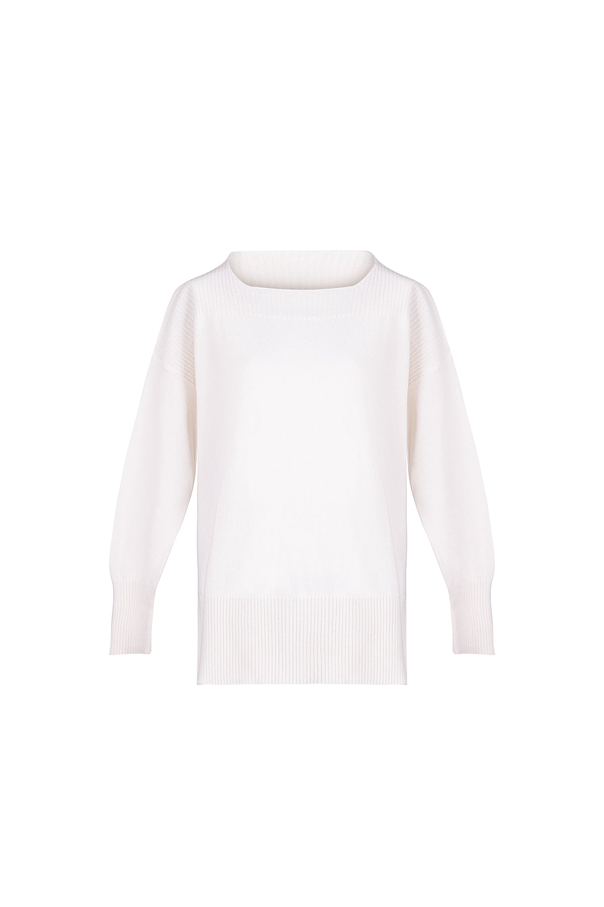 Ekru Isabella Saf Kaşmir Kayık Yaka Kazak