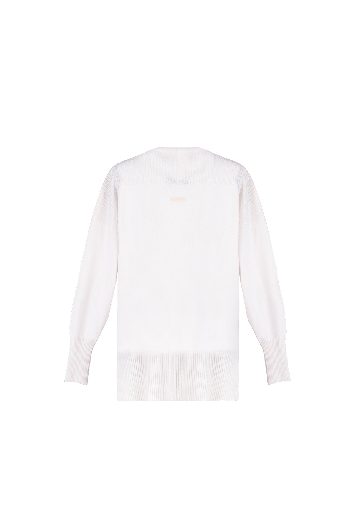 Isabella kazağın ekru tonu, saf kaşmirin doğal sıcaklığıyla buluşarak safiyetin ve sakinliğin ifadesine dönüşüyor. Konforlu yapısı ve rafine tasarım detaylarıyla sade olduğu kadar etkileyici bir duruş sunuyor.
