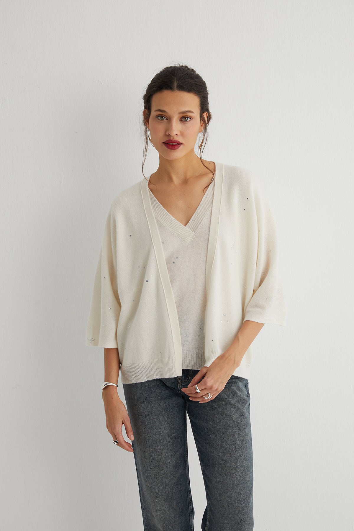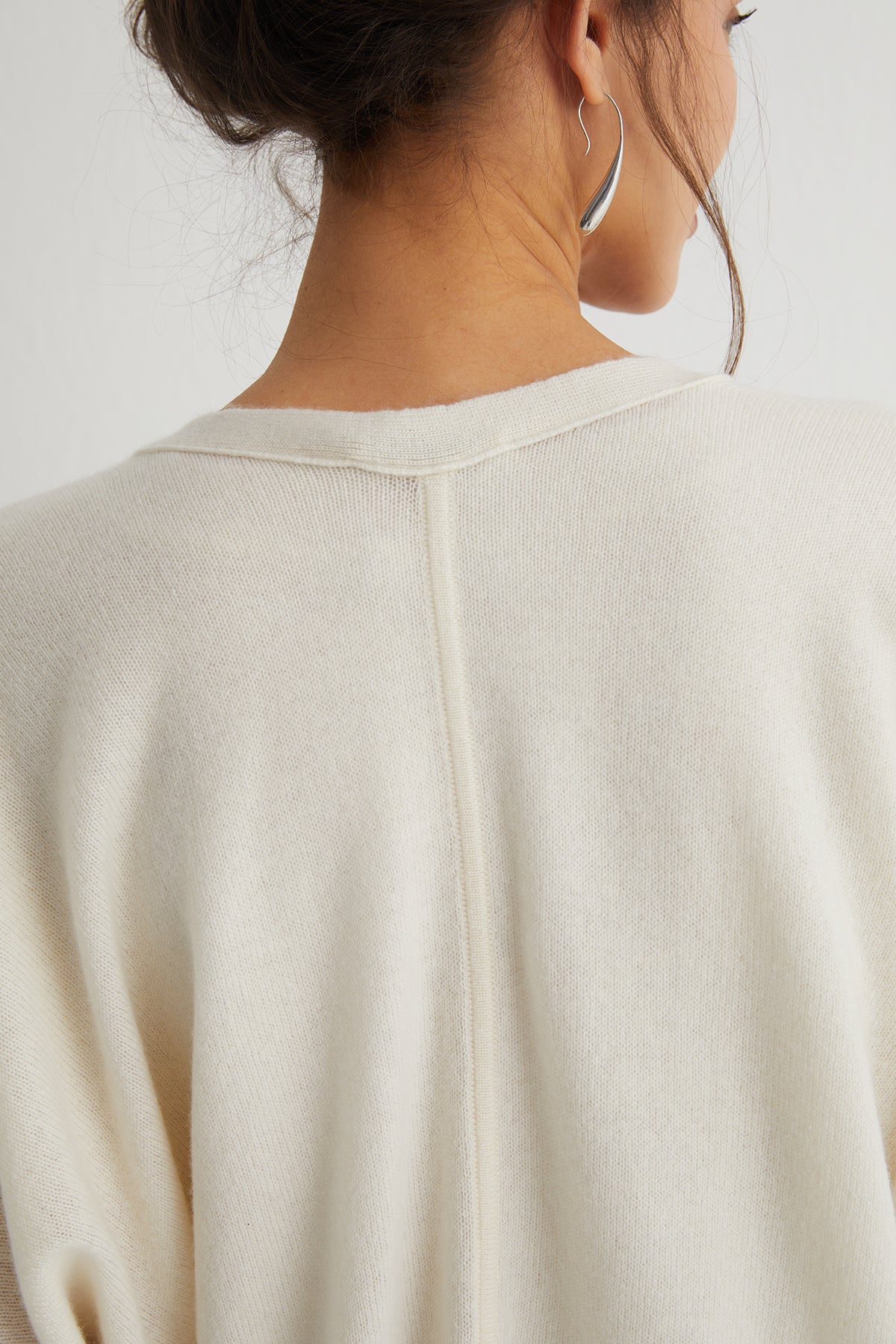 Ekru Kostir Saf Kaşmir Derin V Yaka Triko Hırka