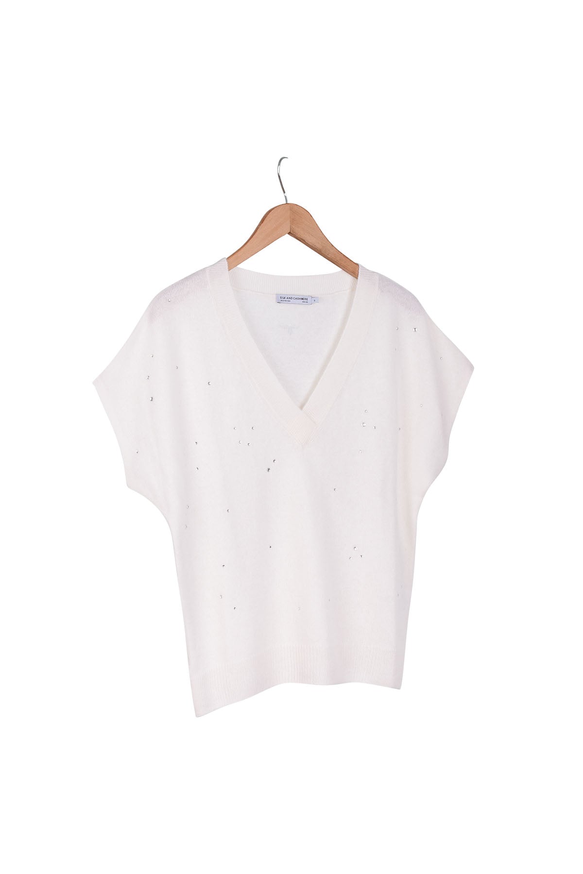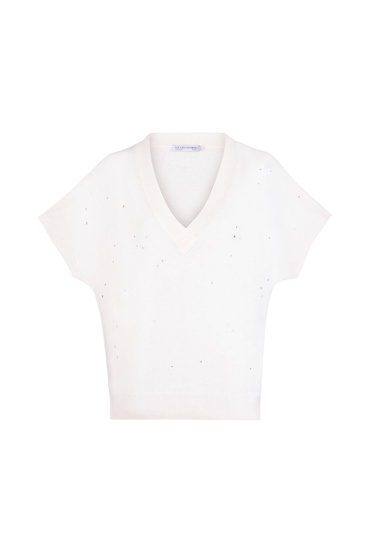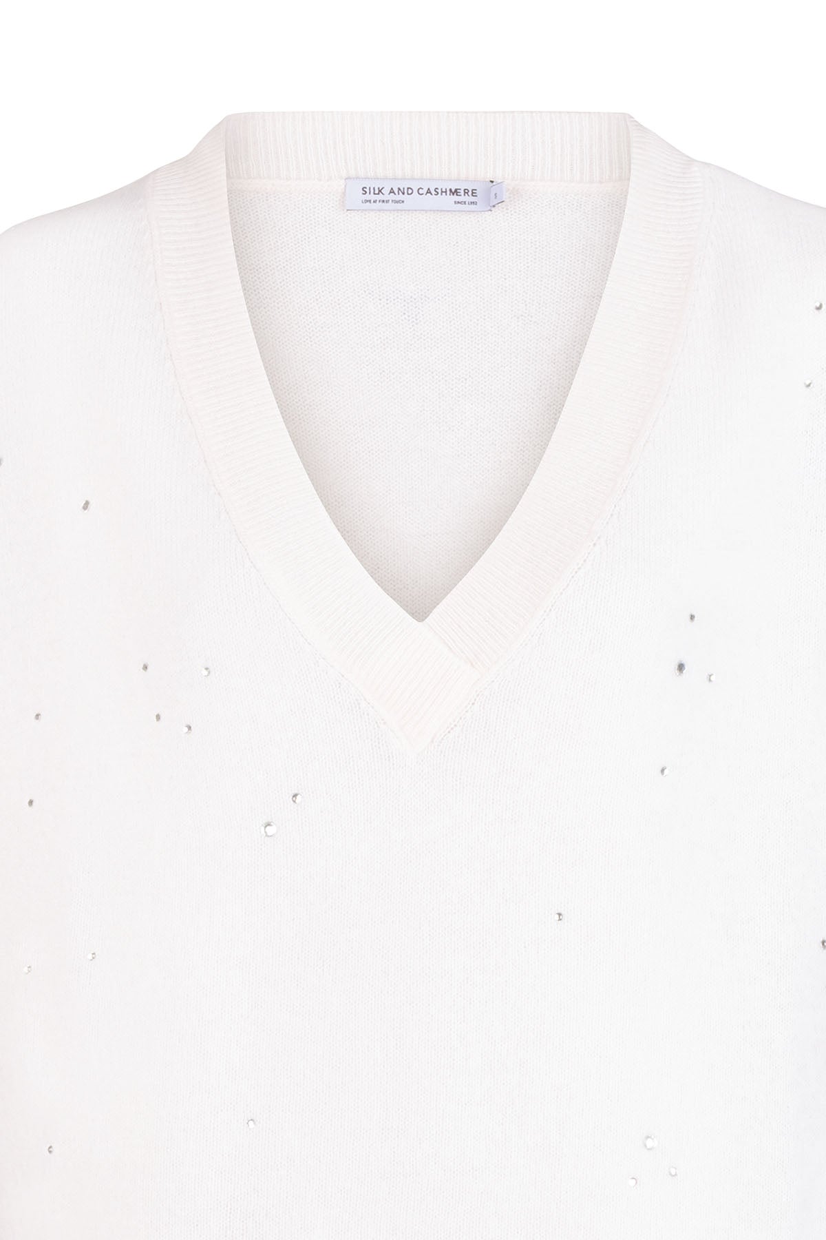 Saf kaşmirin doğallığını, ışığı zarifçe yansıtan kristal taşlarla buluşturan bu özel triko, gardırobunuza sade ama etkileyici bir dokunuş katmak için tasarlandı. V yaka formu ve yumuşacık dokusu sayesinde hem konfor hem de özenli bir duruş sunar.