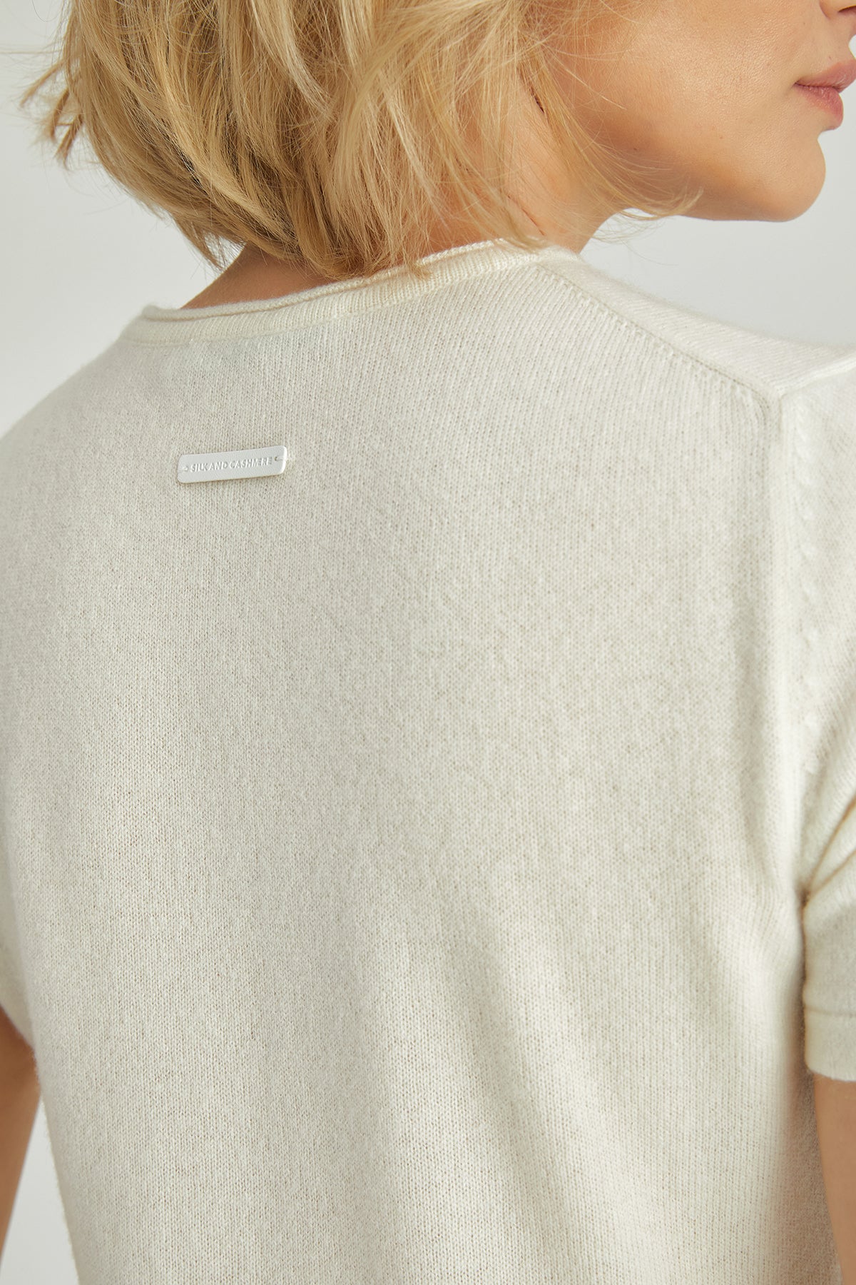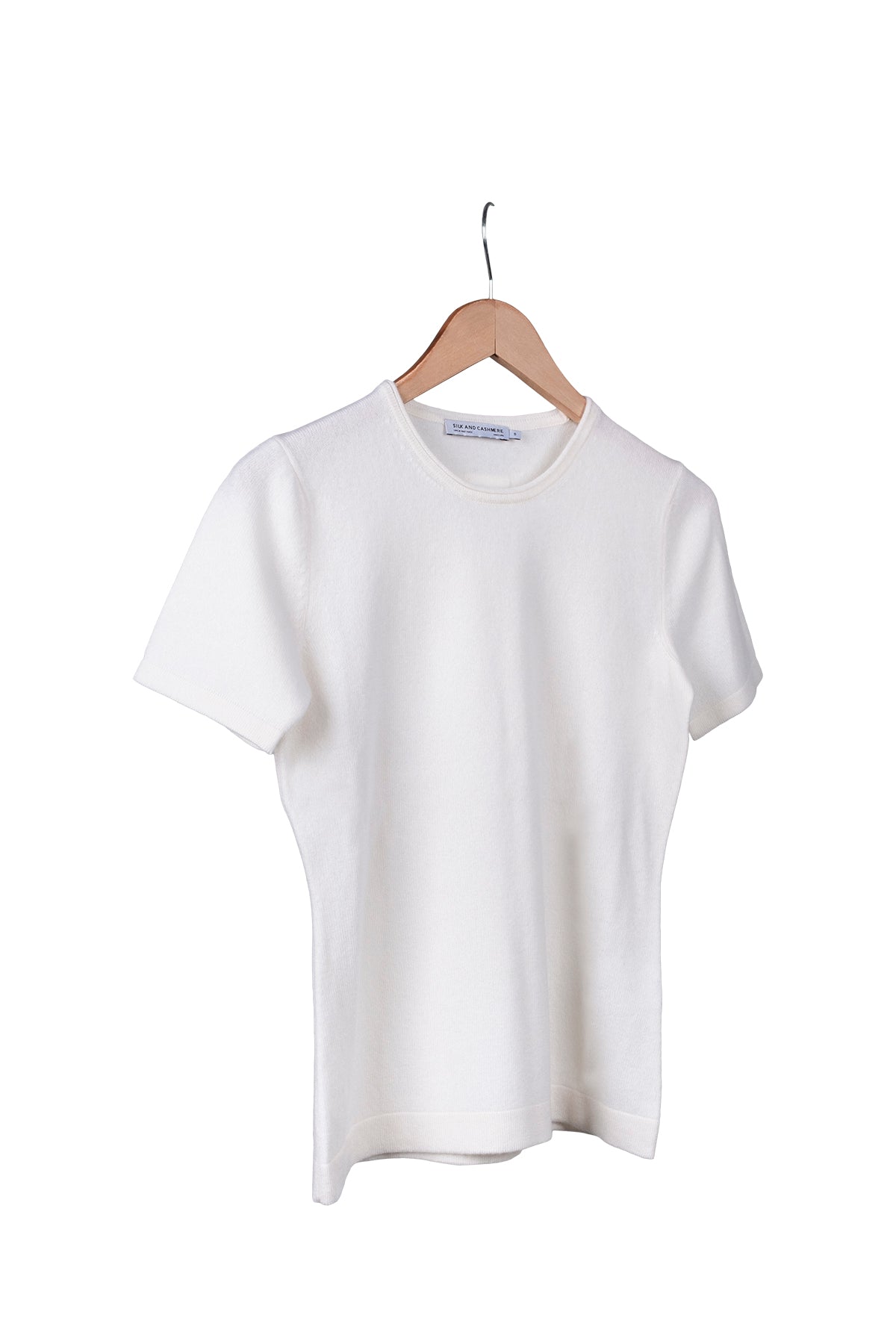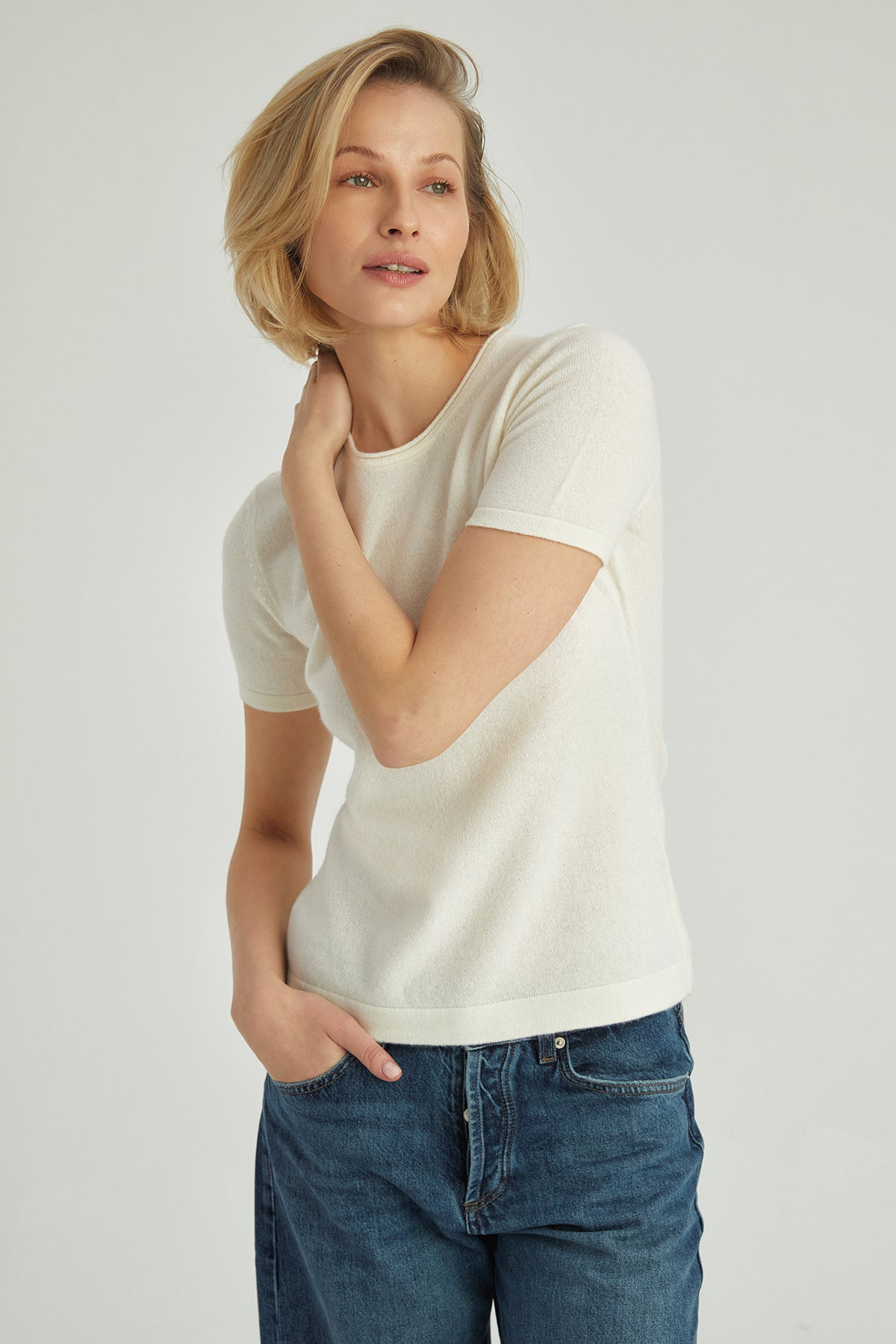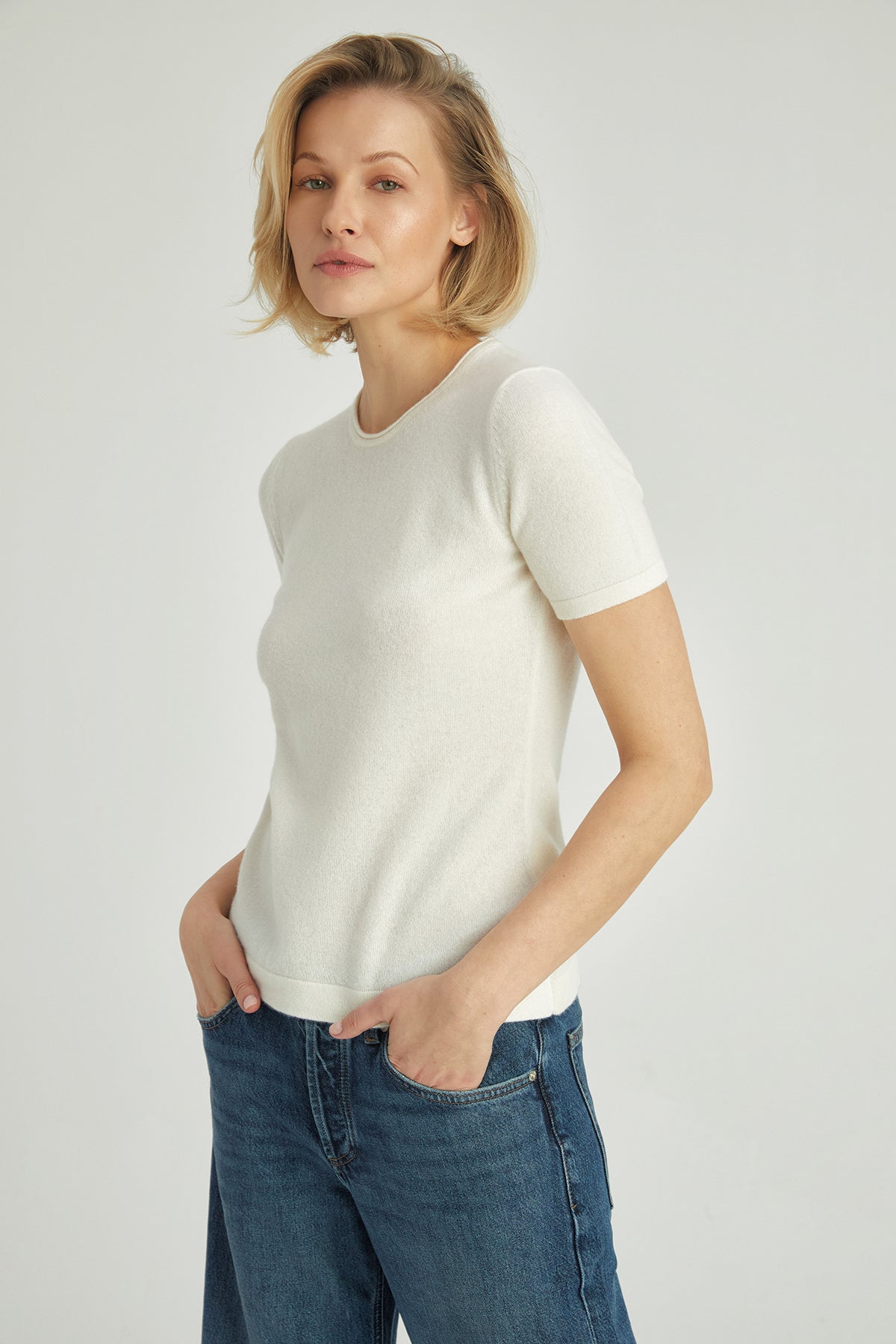 Ekru Lilly Saf Kaşmir Bisiklet Yaka Tişört