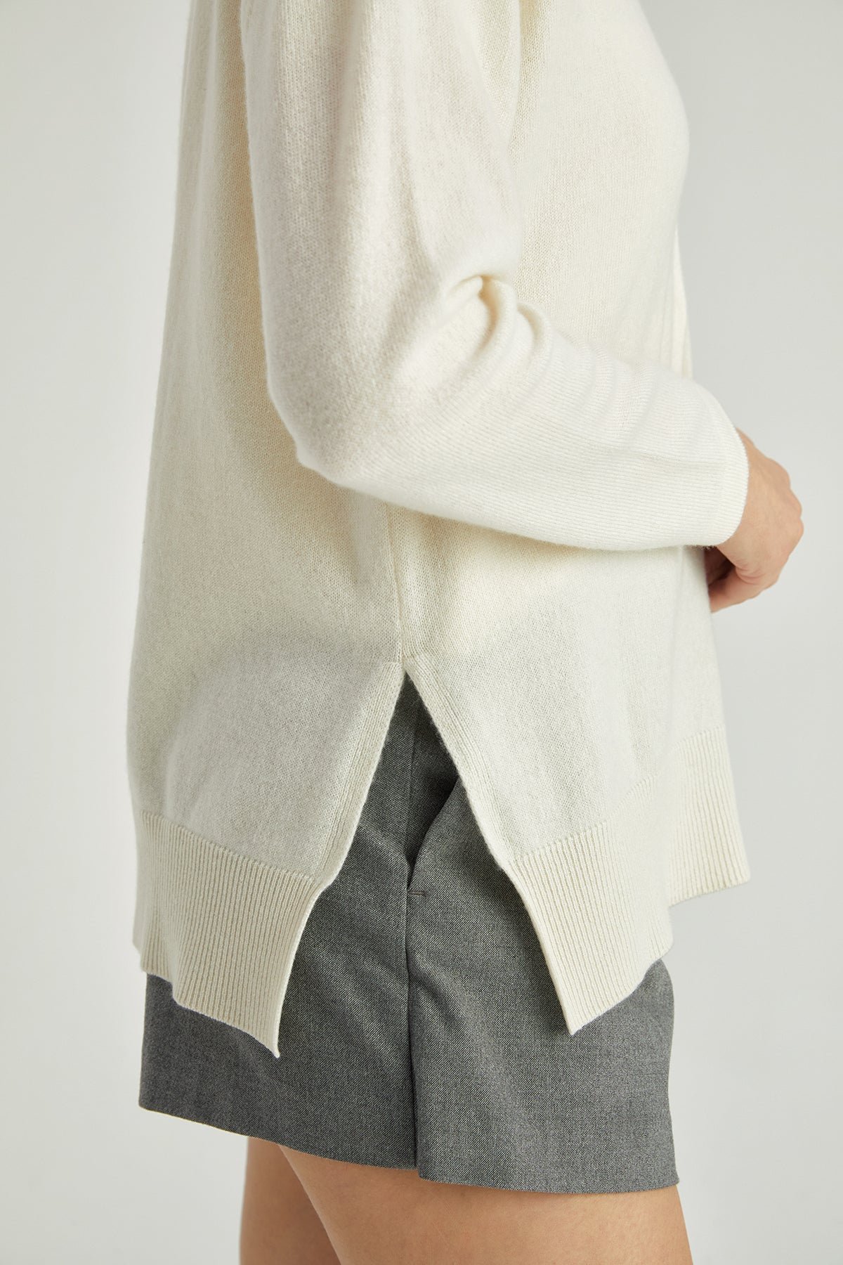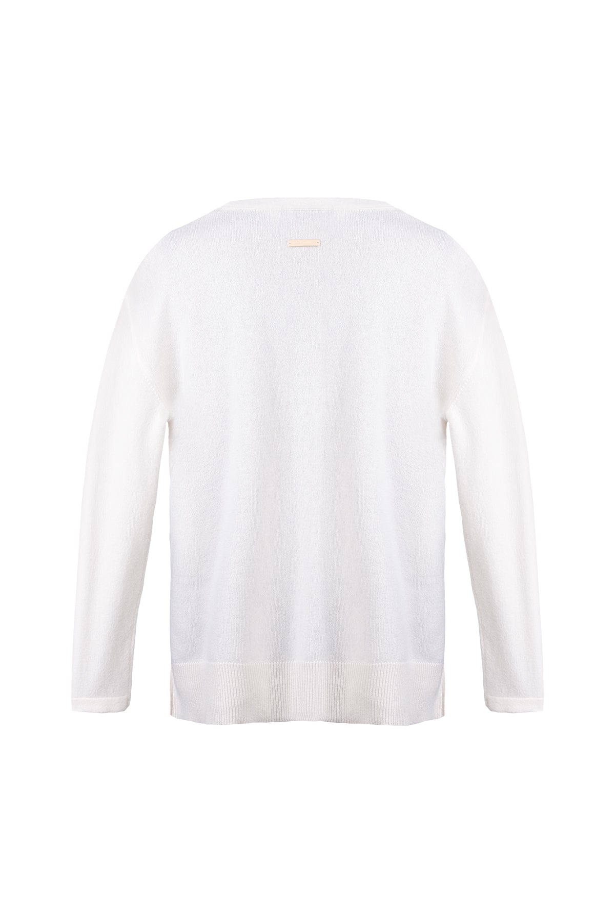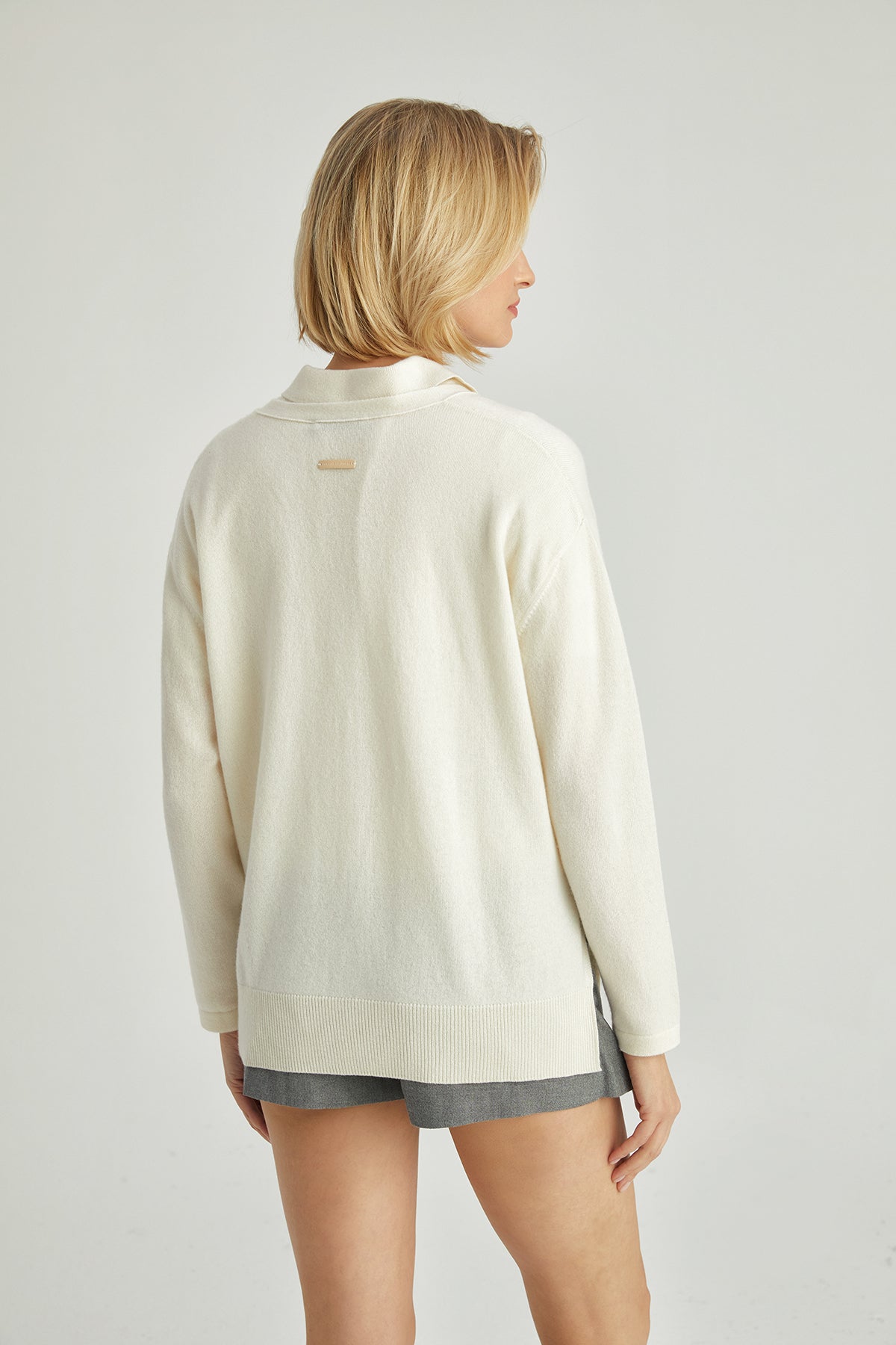 Ekru Lilly Saf Kaşmir V Yaka Hırka